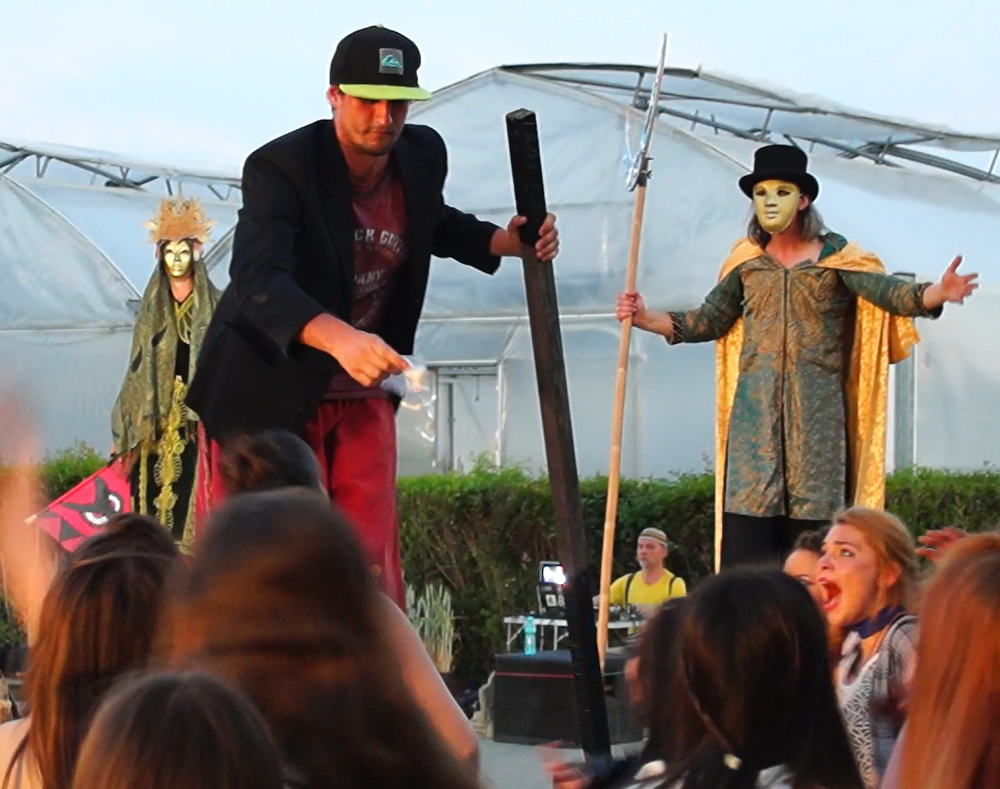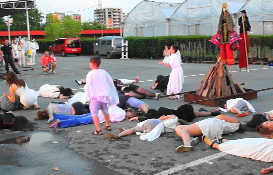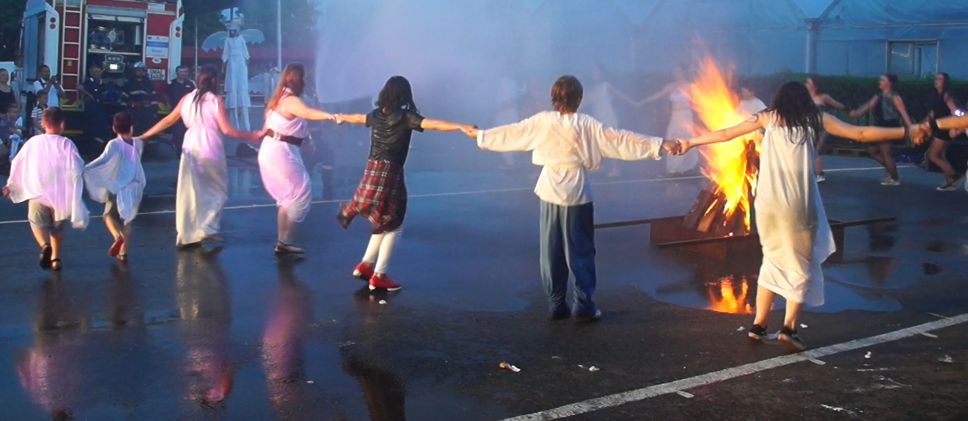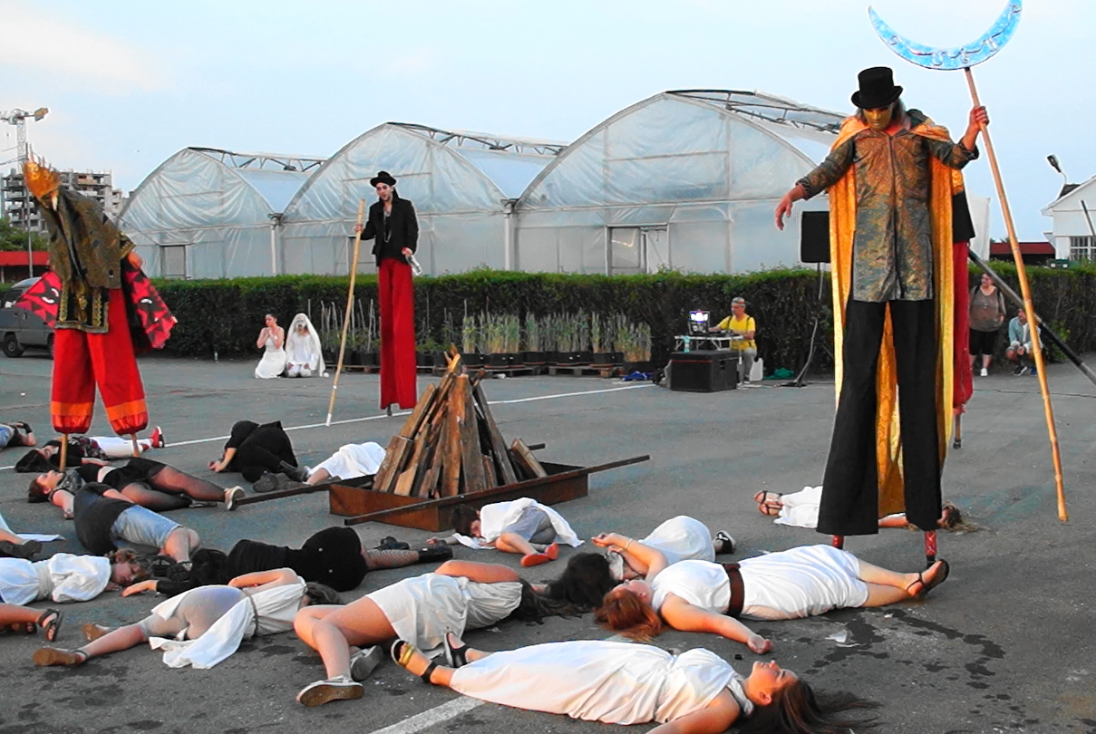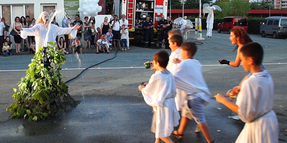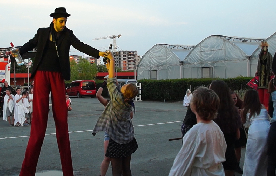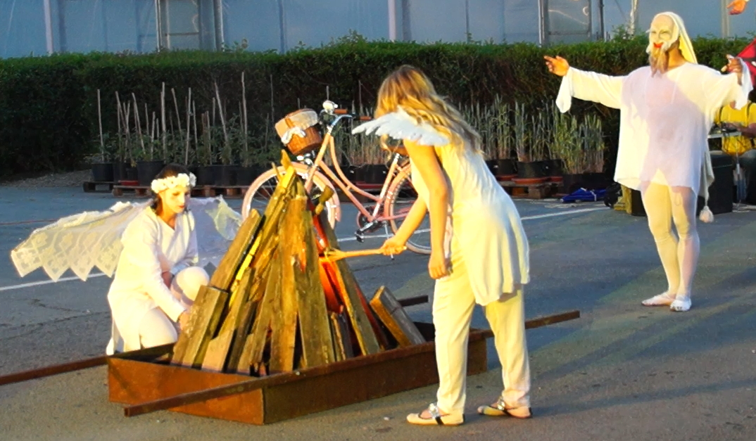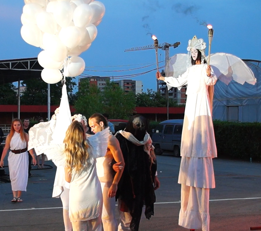 Un spectacol despre copilărie și tentațiile adolescenței, despre permanenta luptă dintre bine și rău. Un spectacol cu apă și foc regizat de Eva Labadi împreună cu Dio Zolltan, de la Teatrul Ort-Iki din Debrețin (Ungaria), teatru de unde au venit și cei opt artiști pe picioroange. Din Timișoara li s-au alăturat Compania Phantasia (condusă de Eva Labadi), dar și elevi de la liceele ”Jean-Louis Calderon” și ”Ion Vidu” (secția actorie) și studenți de la secția Actorie a Facultății de Muzică din Timișoara. Invitat: balerinul Sergiu Mihalic de la Opera Națională română din Timișoara. Regia de sunet a fost asigurată de Mircea Chiu (Radio Timișoara), iar luminile de Teatrul Național din Timișoara.