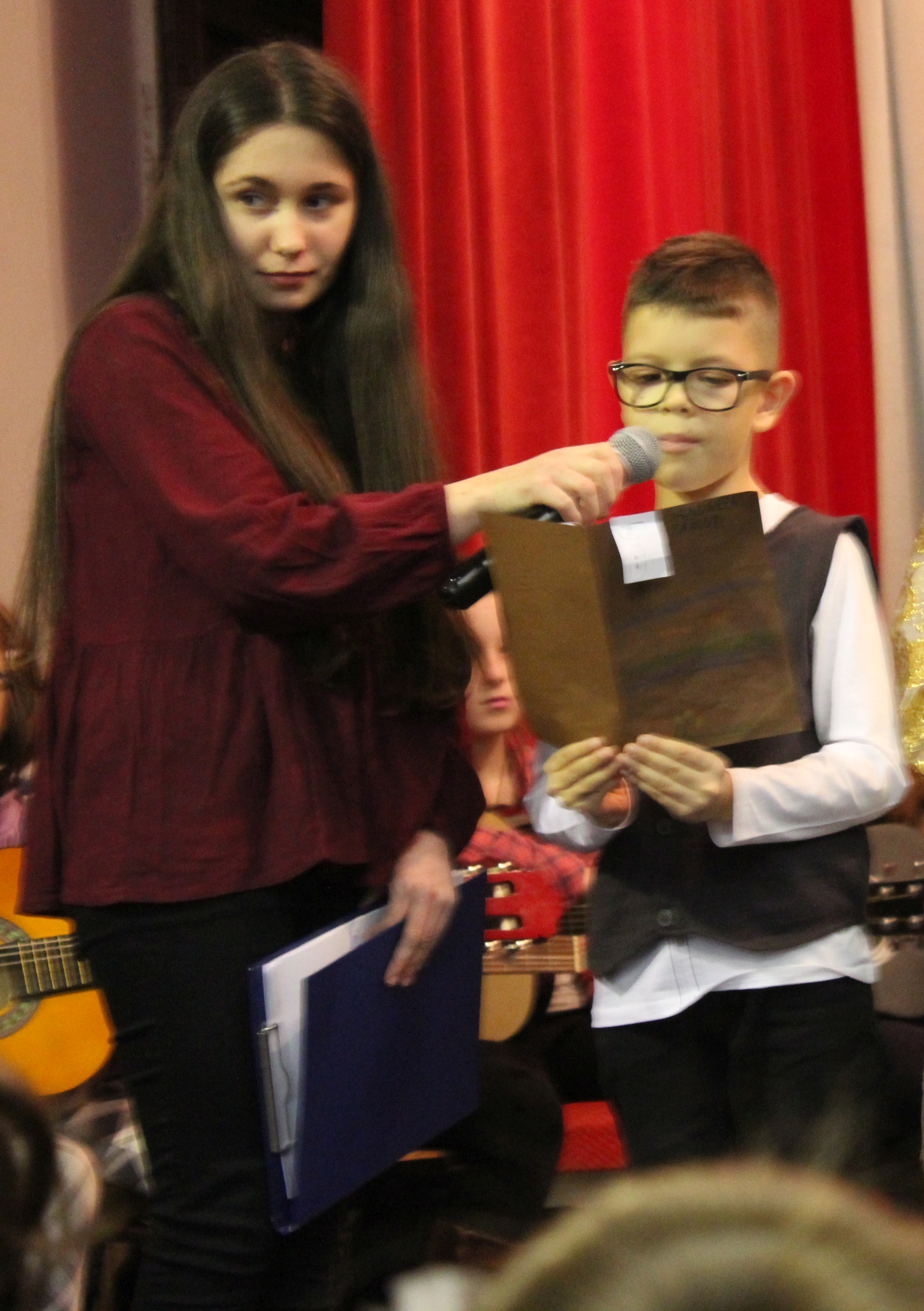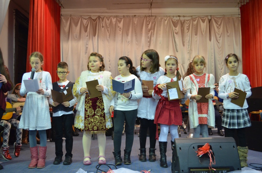 Ziua de 8 decembrie a sosit. Sala de spectacol s-a umplut de copii, bunici și părinți. Emoțiile se citeau pe fața tuturor. Au fost recitate poezii compuse de copii, colindele au răsunat acompaniate de chitară, două trupe au cântat cântece de Crăciun, la pian și la chitară au interpretat copii frumoși și talentați, totul sub supravegherea atentă a spiridușilor, prinților și prințeselor. În tot acest timp Moș Crăciun a privit spectacolul la una dintre ferestre, dar cine să-l mai vadă, mai ales că la final, copiii s-au grăbit să ia dulciurile pregătite pentru ei. Un copilaș Razvan îi tot spunea mamei să se uite pe geam, că Moșul e acolo, dar acesta l-a dojenit zicându-i că nu vede nimic. Într-un final copilașul a adormit în brațele mamei, fericit că Moșul i-a zâmbit. Sperăm că acestă poveste a spectacolului se