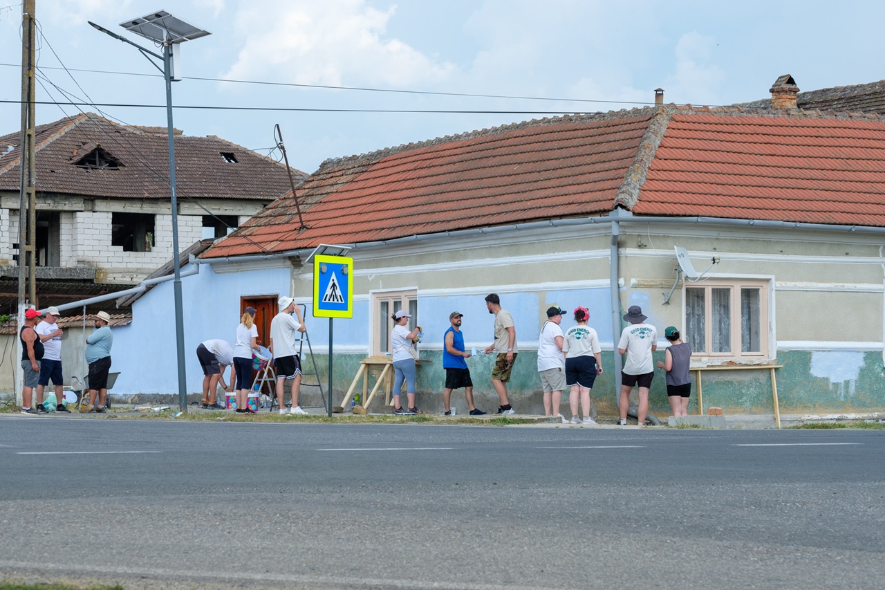 Evenimentul „Color the Village” a reunit peste 400 de voluntari din întreaga țară, care au contribuit la reabilitarea fațadelor, porților și elementelor decorative ale 30 de clădiri.