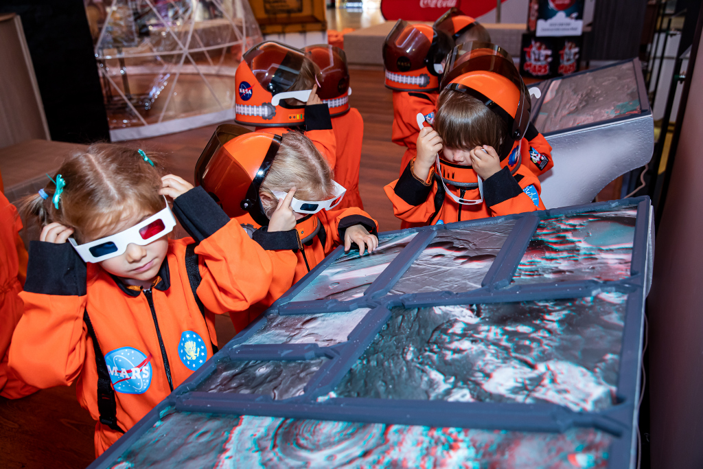 Prichindeii pot descoperi cum trăiesc cosmonauții în spațiu, într-un cilindru rotativ, care simulează o stație spațială și vor cunoaște planetele prin intermediul robotului Curiosity și a realității augmentate.