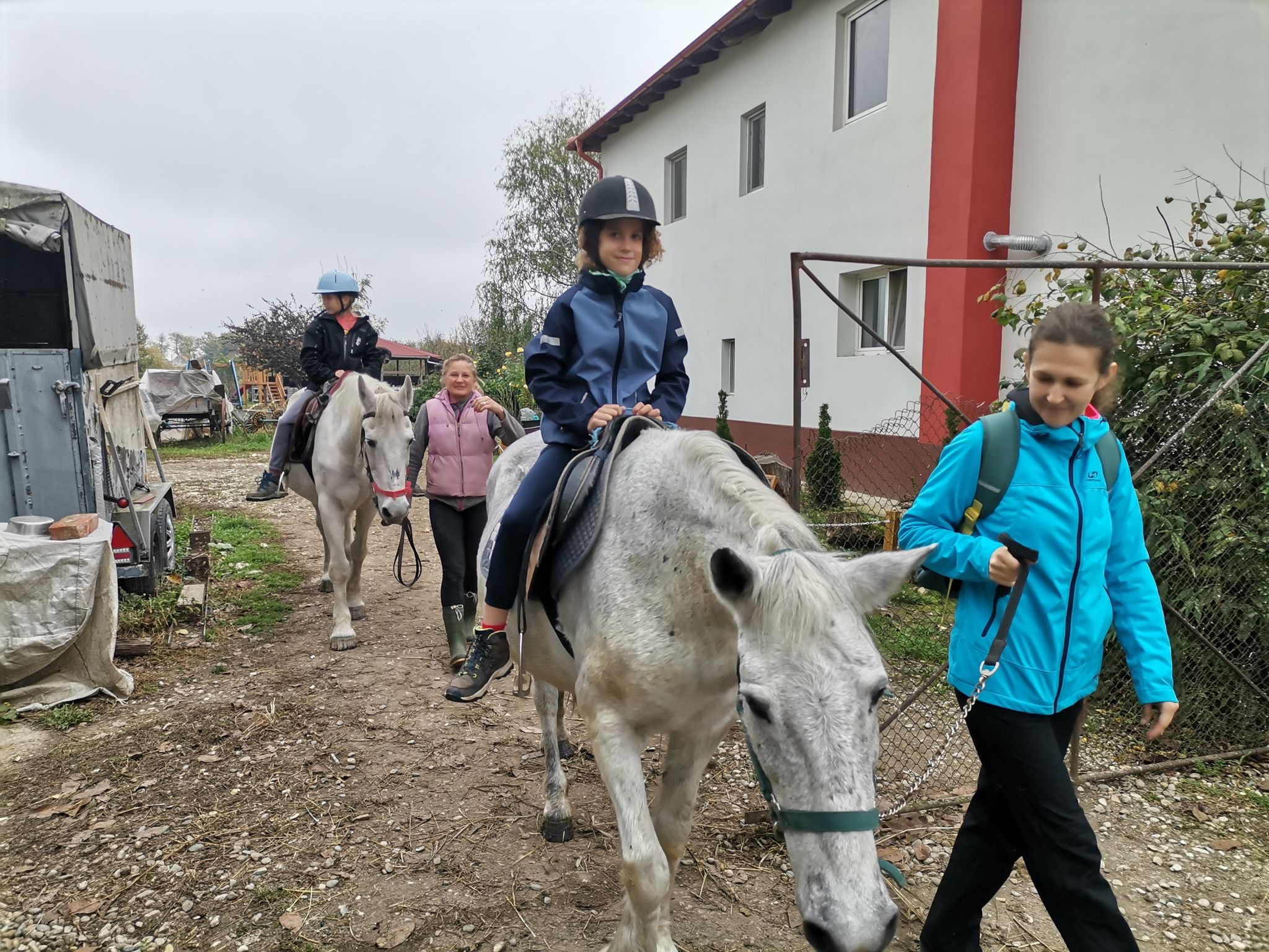“Eu am lucrat în Germania șapte ani, ideea a venit de la întreprinzătorii nemți pe la care am fost prin curte, pentru că și acolo am avut tangență cu caii. Caii sunt hobby-ul meu de fapt. Inițial m-am gândit la oră de călărie. Din păcate suntem departe de oraș, este mai greu. Din orele de echitație, nu am fi reușit nici măcar să ne susținem cheltuielile. Și atunci am trecut la zona de agrement cu ponei. Traseele le facem afară, pe pășune. În majoritatea timpului copilul merge călare, părintele duce poneiul sau calul și trebuie să meargă pe lângă ei pe jos”, spune Geanina Zimerman.