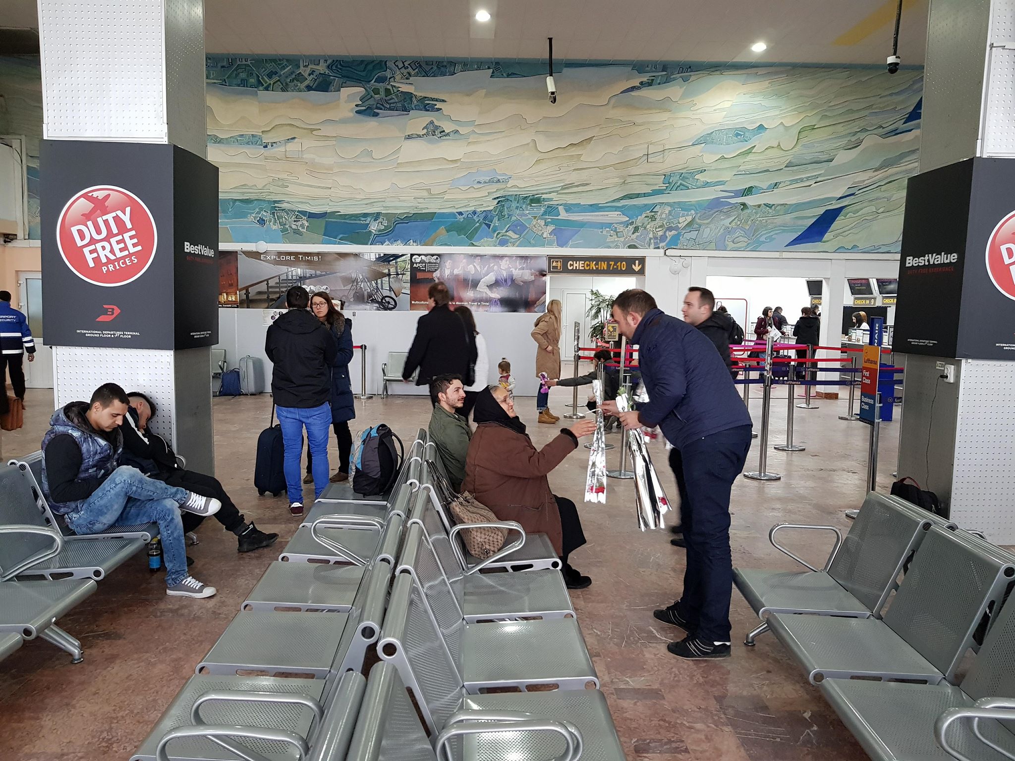 FOTO/ A ‘plouat’ cu flori pentru pasagerele de pe aeroportul din Timişoara