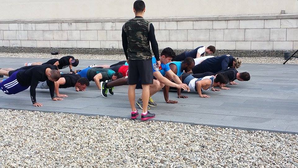 Pasionaţii de sport au devenit soldaţi. Mai mulţi timişoreni, fie ei oameni activi sau doar curioşi să vadă cum e să faci un antrenament ca la carte, au simulat exerciţii fizice, unele chiar şi inspirate din programul soldaţilor înrolaţi.