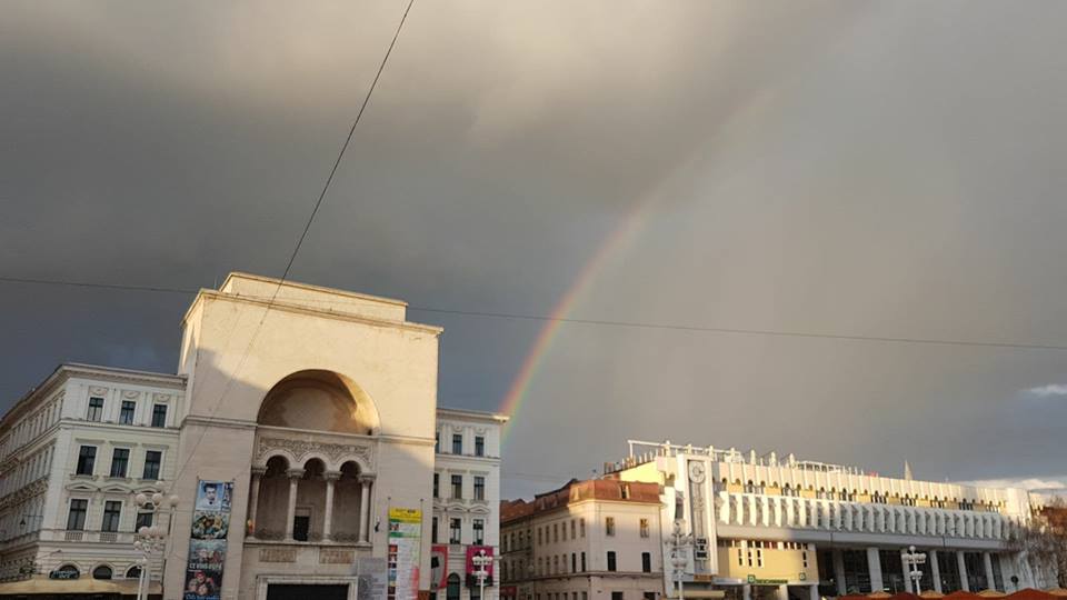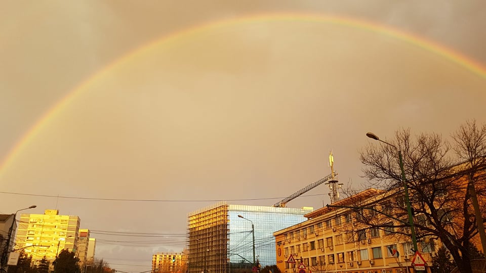 După-amiaza de marți a adus un spectaculos curcubeu dublu pe cerul Timișoarei. Atât cei care se aflau în trafic la volan cât și pietonii au putut vedea că, pe cerul încărcat de nori, se profilează un curcubeu dupa care își face apariția și cel de-al doilea.