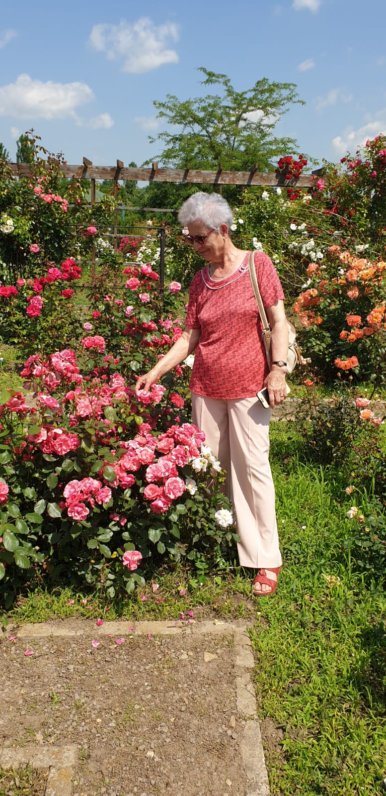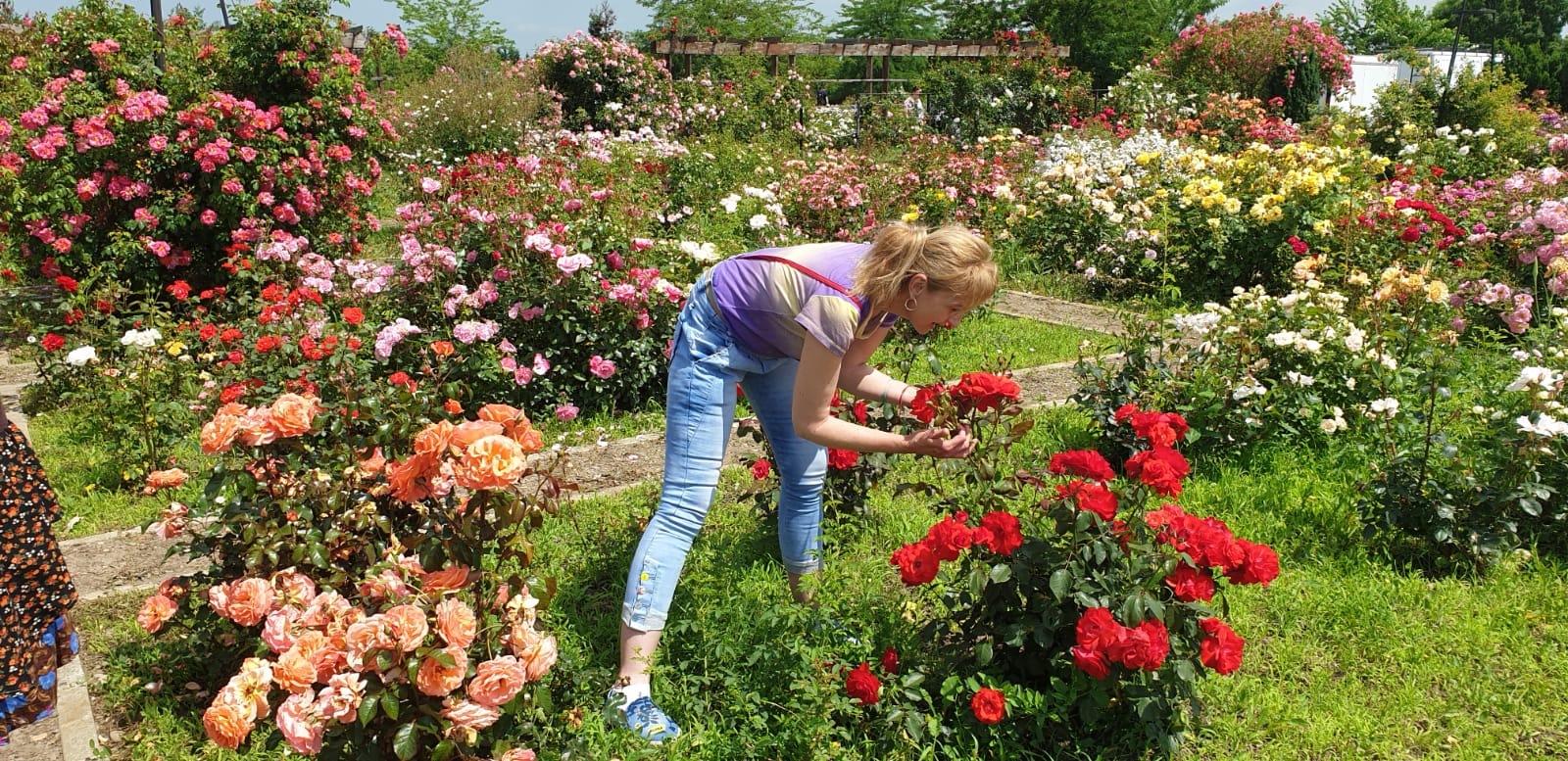Mihaela Buzatu, care se îngrijeşte de rozariu, mărturisește că iubeşte toţi trandafirii şi nu se poate decide care sunt cei mai frumoși.