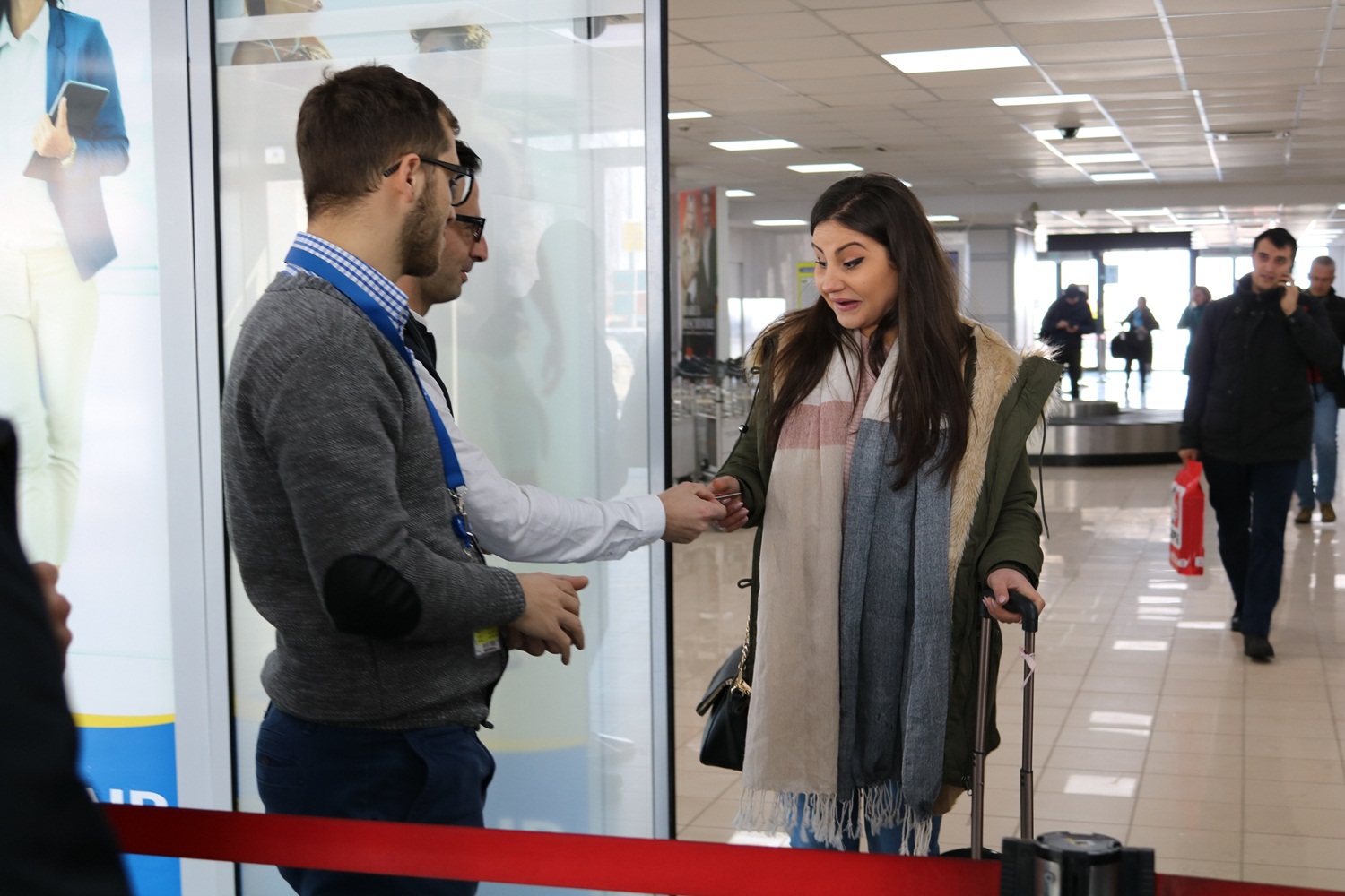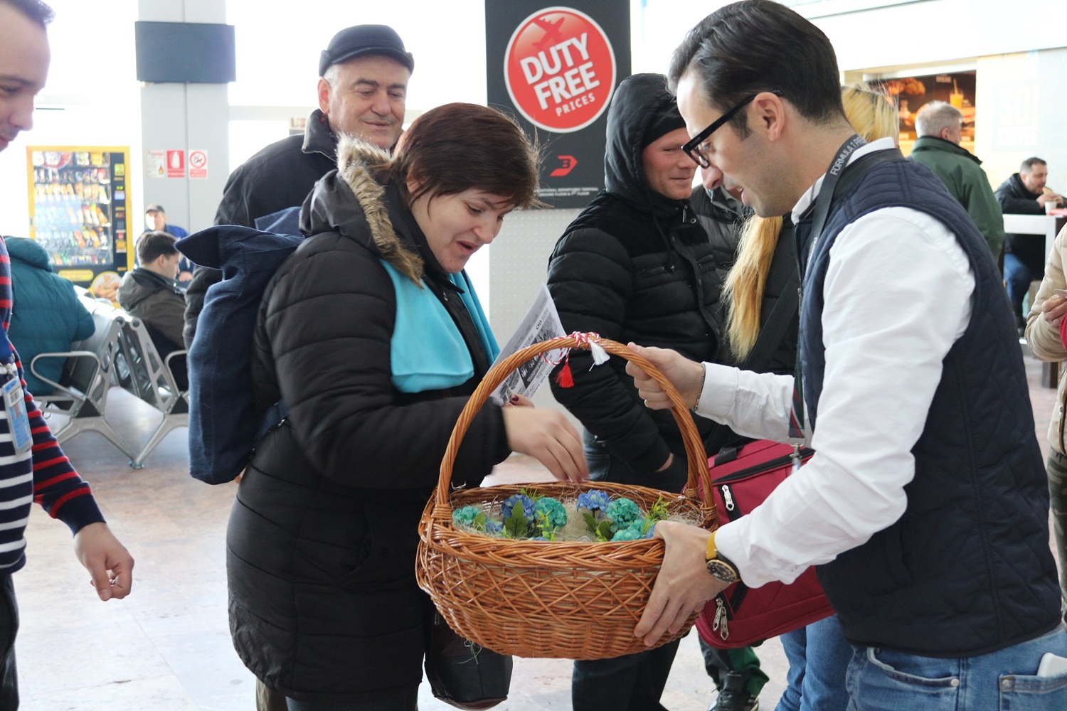 FOTO/ Mărțișoare pentru pasagerele de pe Aeroportul din Timișoara, în cea mai rece zi a iernii