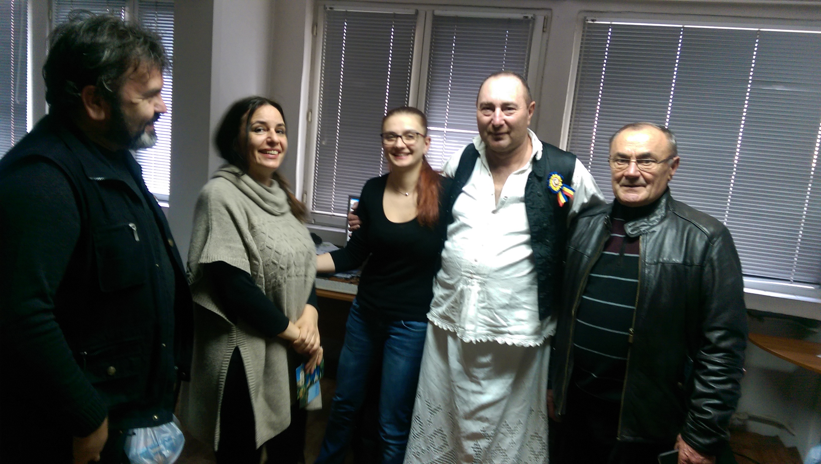 Ascultători fideli care mereu ne scriu, ne-au vizitat ieri la studio. Surpriza domnului Ioan Şiclovan a fost încă de la poarta studioului când l-am zărit în portul tradiţional de la Macea. A fost însoţit de domnul Gheorghe Vidican şi împreună au vizitat studioul nostru întâlnind o parte dintre redactorii, reporterii şi realizatorii preferaţi: Simona Pele, Adriana Mărăscu, Zoe Fuicu, Daniela Băcilă, Ioana Săpianu, Mihaela Ioncelescu, Radu Micu, Aurelian Teculescu, Gelu Stan, Mihai Anghel, Radu Ciprian Pop.