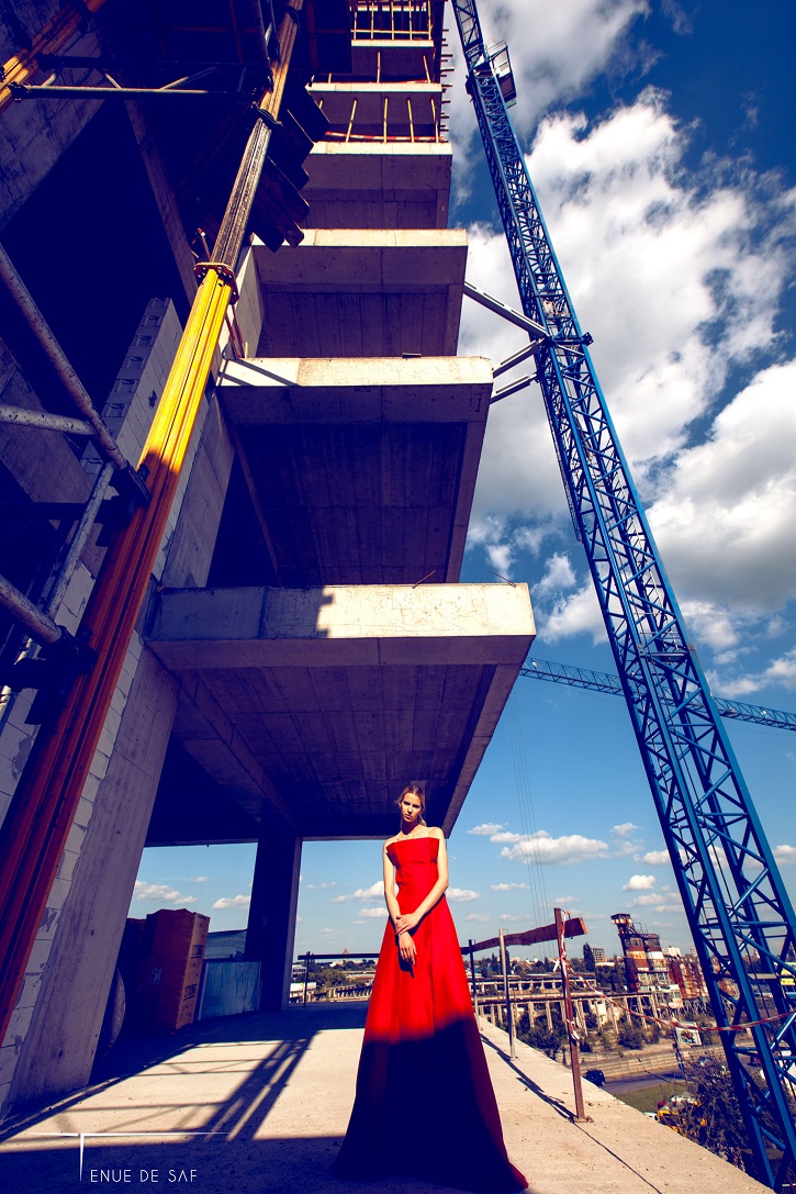 Astfel, mai multe fotomodele îmbrăcate în rochii vaporoase au urcat pe schelele de pe șantier într-o serie de ședințe foto pentru realizarea unor cataloage de modă.