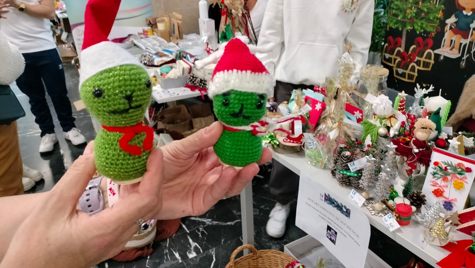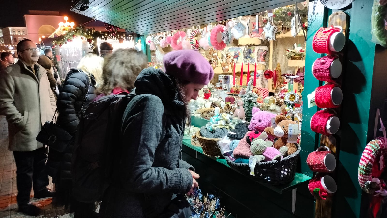 Cu croșetele mereu la îndemână, Mihaela a venit la Târgul de Crăciun din Timișoara. Din mâinile ei ies minunățit de plușuri și figurine, ideale chiar și pentru un cadou de Moș Nicolae.
