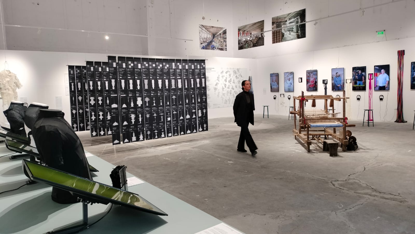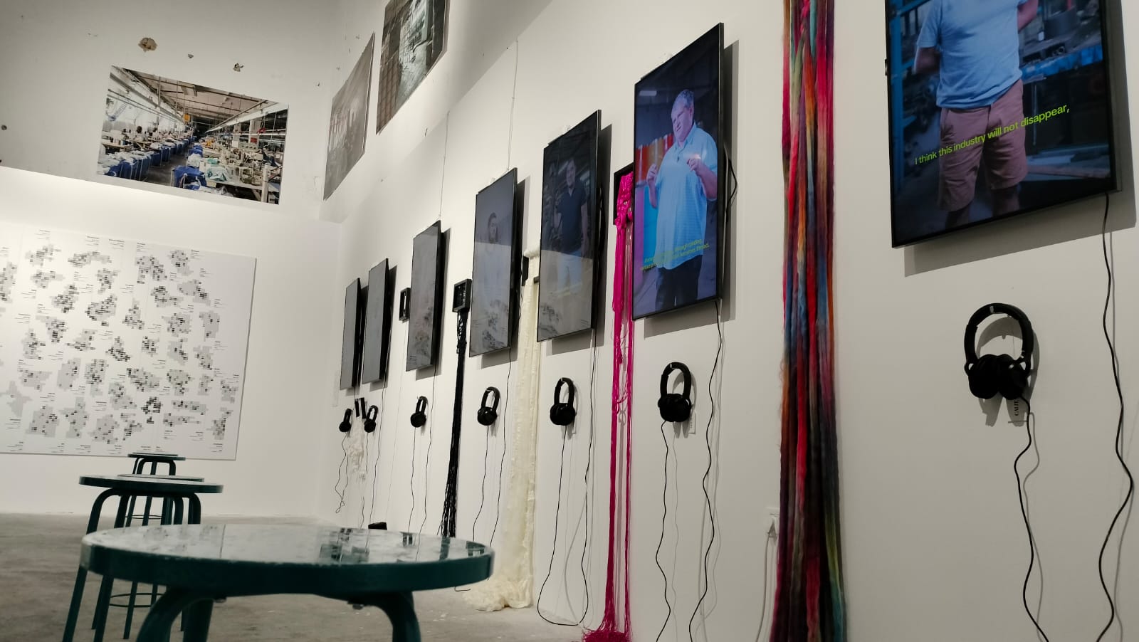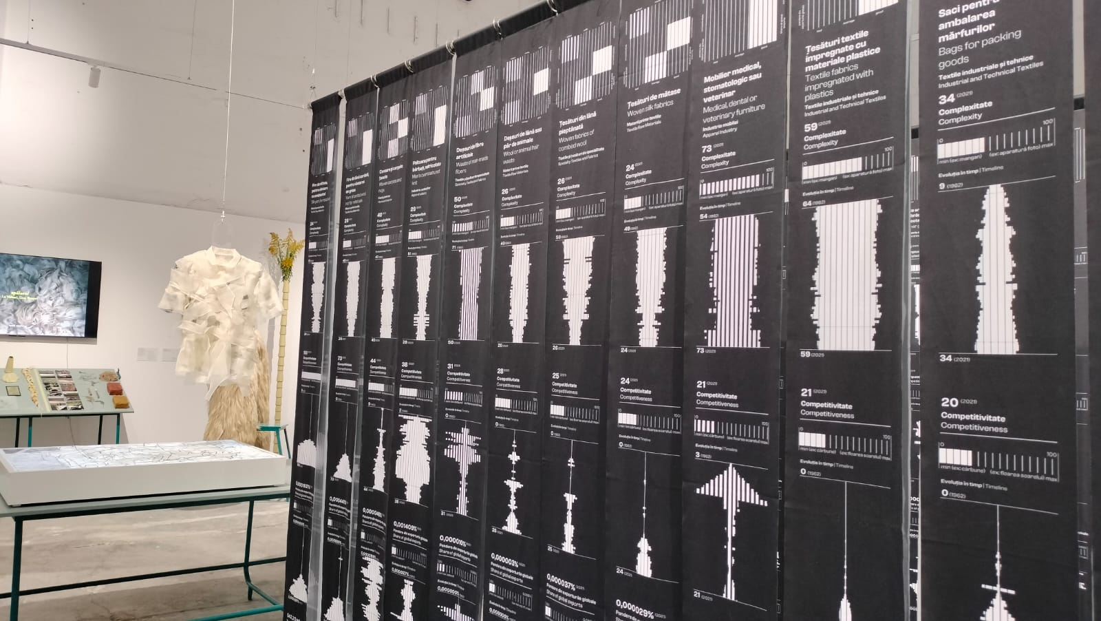 Sunt expuse bobine cu ață, îmbrăcăminte, metraje și materiale reinterpretate, deșeuri, imagini dar și mărturii audio și video ale angajaților din fabricile de textile.