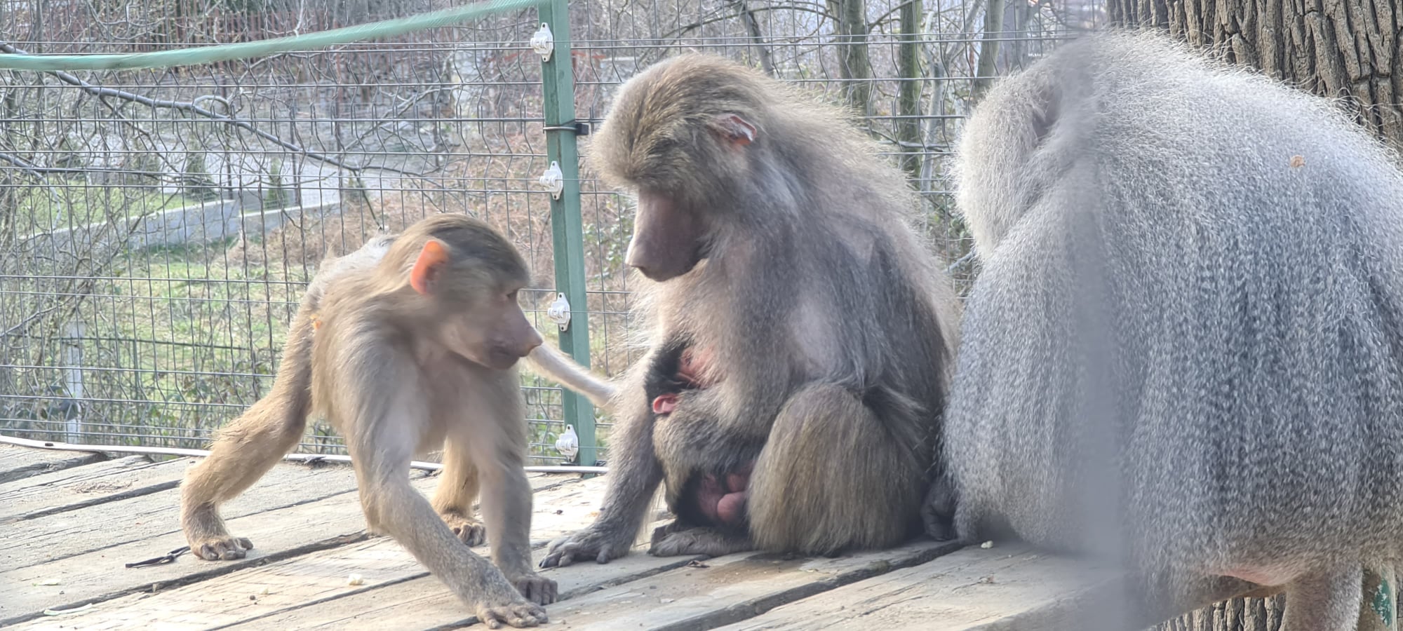 “Săptămâna aceasta, familia pavianilor cu mantie de la Zoo Hunedoara a crescut din nou. Ina Babuina are un frăţior, pe care mămica lui nu îl lasă deloc din braţe. Le-am făcut o vizită şi puiul nou-născut nu s-a desprins de la pieptul mamei sale. Ina Babuina, în schimb, este ca spirtul: sare, face tumbe, se joacă, îşi provoacă părinţii să-i acorde atenţie”, spun reprezentanţii grădinii zoologice.
