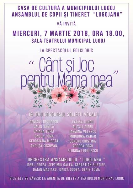Repetiţii intense la sediul Ansamblului folcloric „Lugojana” sub îndrumarea maestrului coregraf Puiu Munteanu. După succese remarcabile obţinute de tinerii lugojeni în Emiratele Arabe Unite şi după recunoaşterea activităţii prin Gala Premiilor Lugojene, ca fiind cea mai activă formaţie care reprezintă Lugojul peste hotare, Ansamblul de copii şi tineret pregăteşte spectacolul „Cânt şi joc pentru mama mea”.