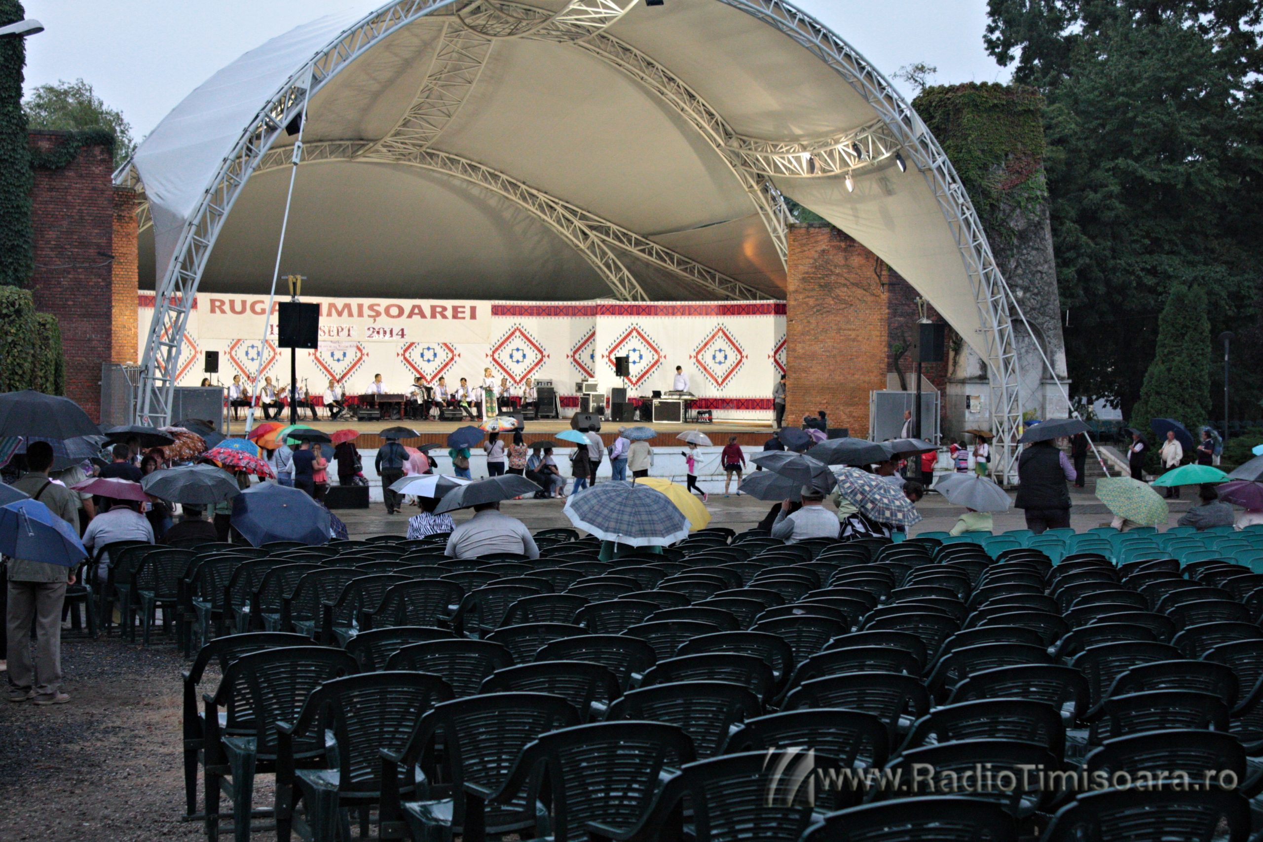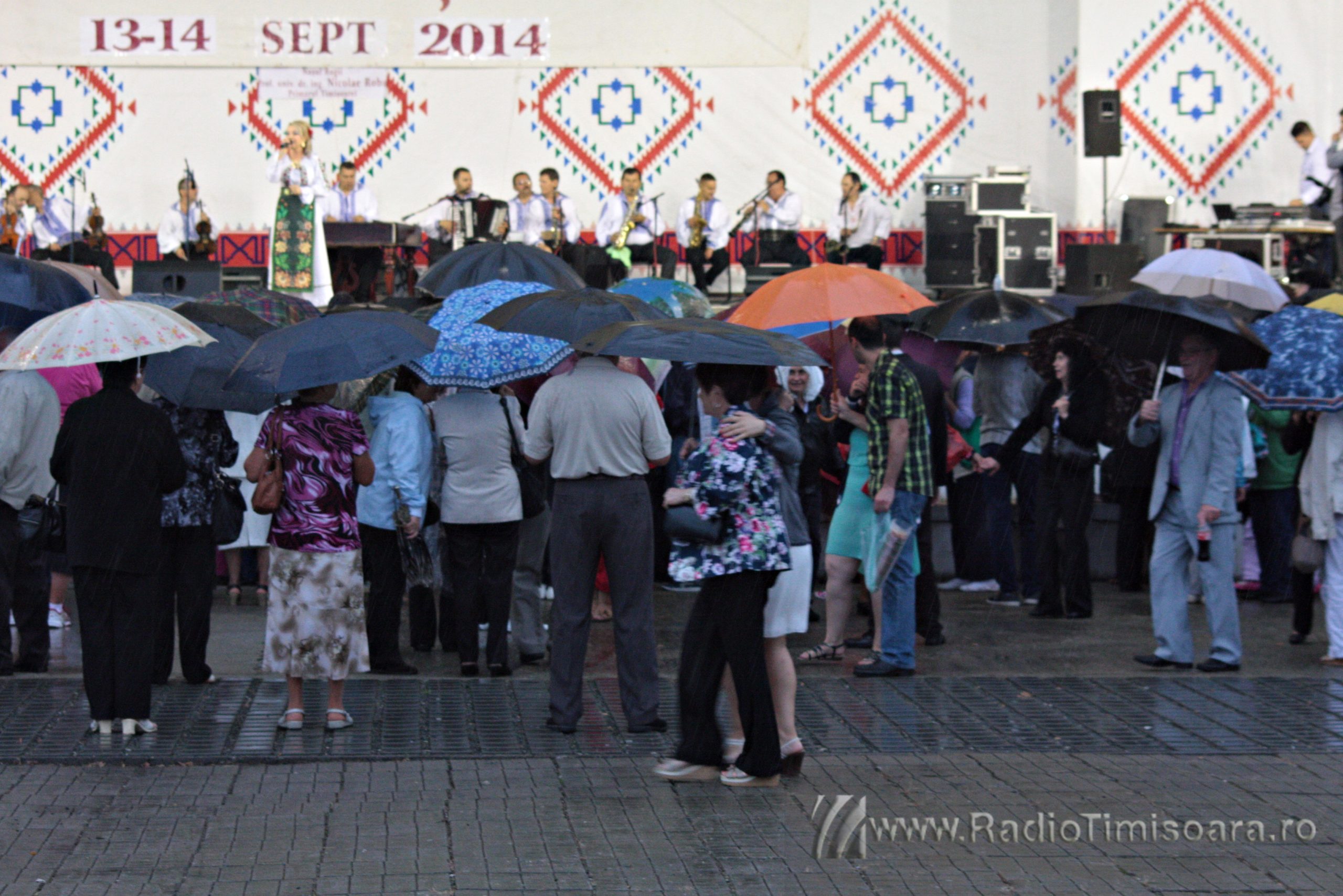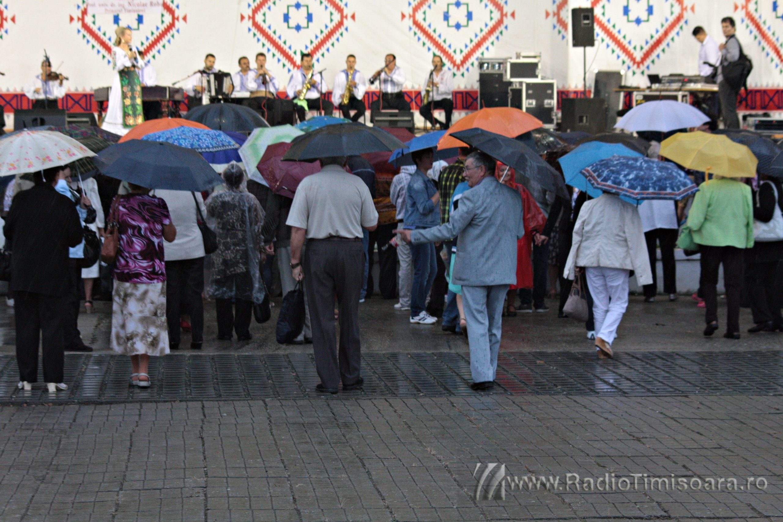 Chiar dacă meteorologii au emis cod galben de ploi pentru acest sfârșit de spătămână, iubitorii de muzică populară din Timișoara au cântat și dansat în ploaie, sâmbătă, la Ruga Timișoarei. Sute de timișoreni au mers, de la ora 17.00 în Parcul Rozelor, pentru programul folcloric susținut de Ansamblul Timișul. Pe scenă au urcat soliștii vocali Tiberiu Ceia, Maria Coman, Adriana Curtu, Ancuţa Fleşariu, Camelia Florea, Denis Hiliţeanu, Petrică Moise, Mihaela Petrovici, Adrian Stanca, Felicia Stoian, Daniela Ștefan, Doriana Talpeş, Ramona Viţa şi Nicoleta Voica. Pe măsură ce ploaia, anunțată de meteorologi, s-a întețit, mulți dintre timișoreni s-au adăpostit, însă muzica a continuat.