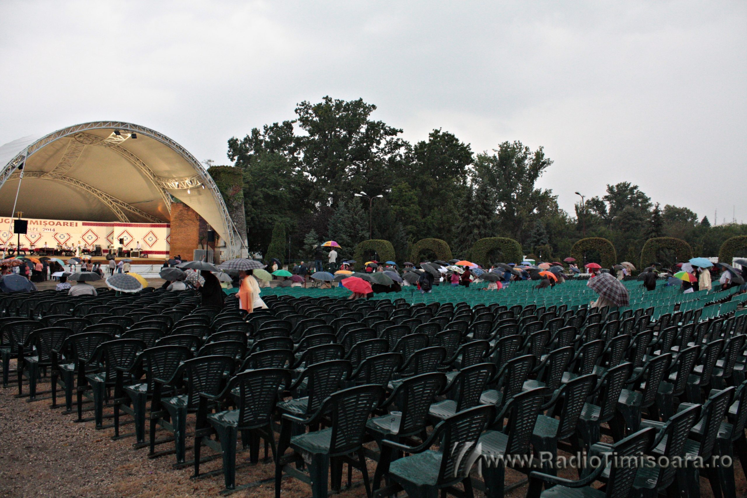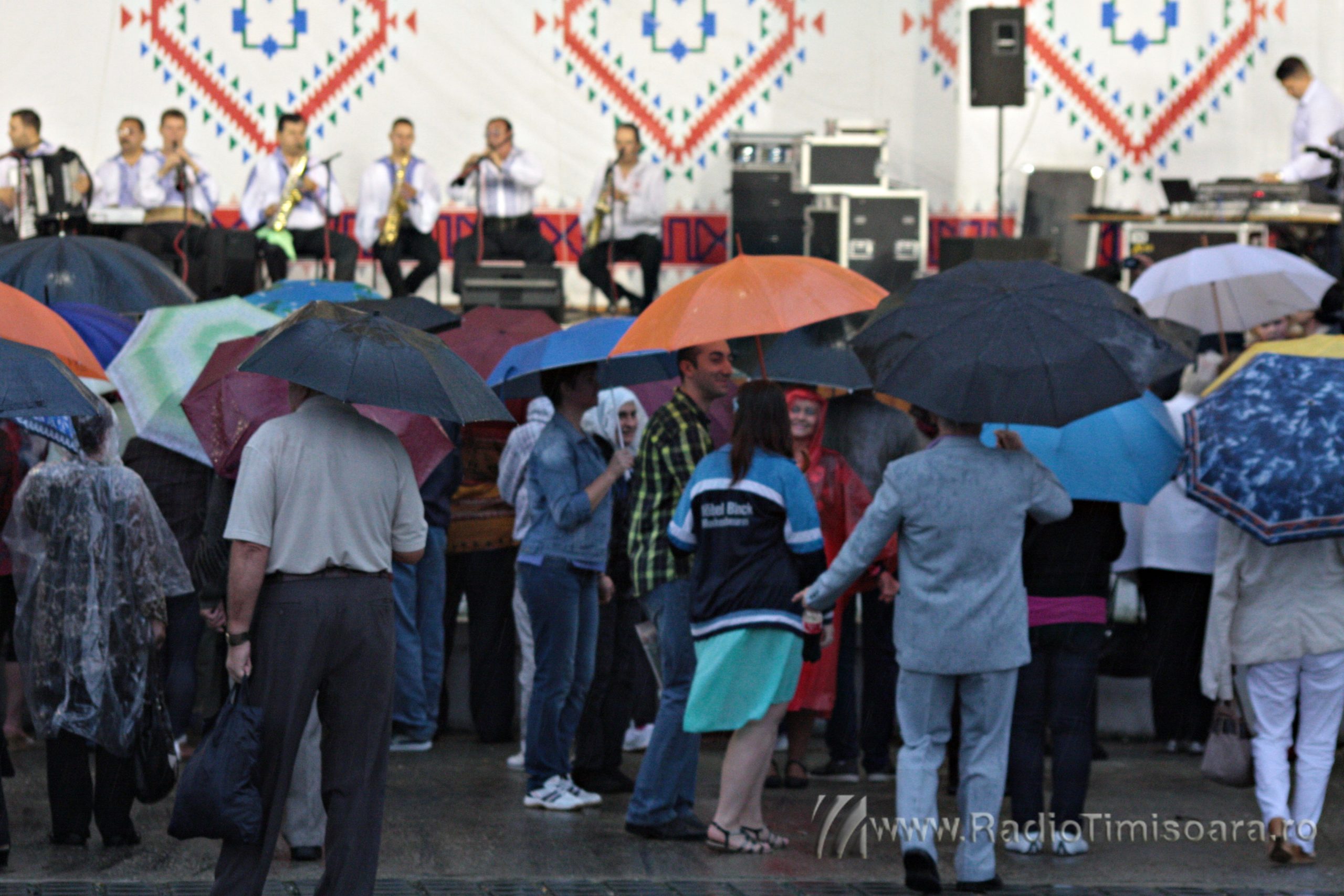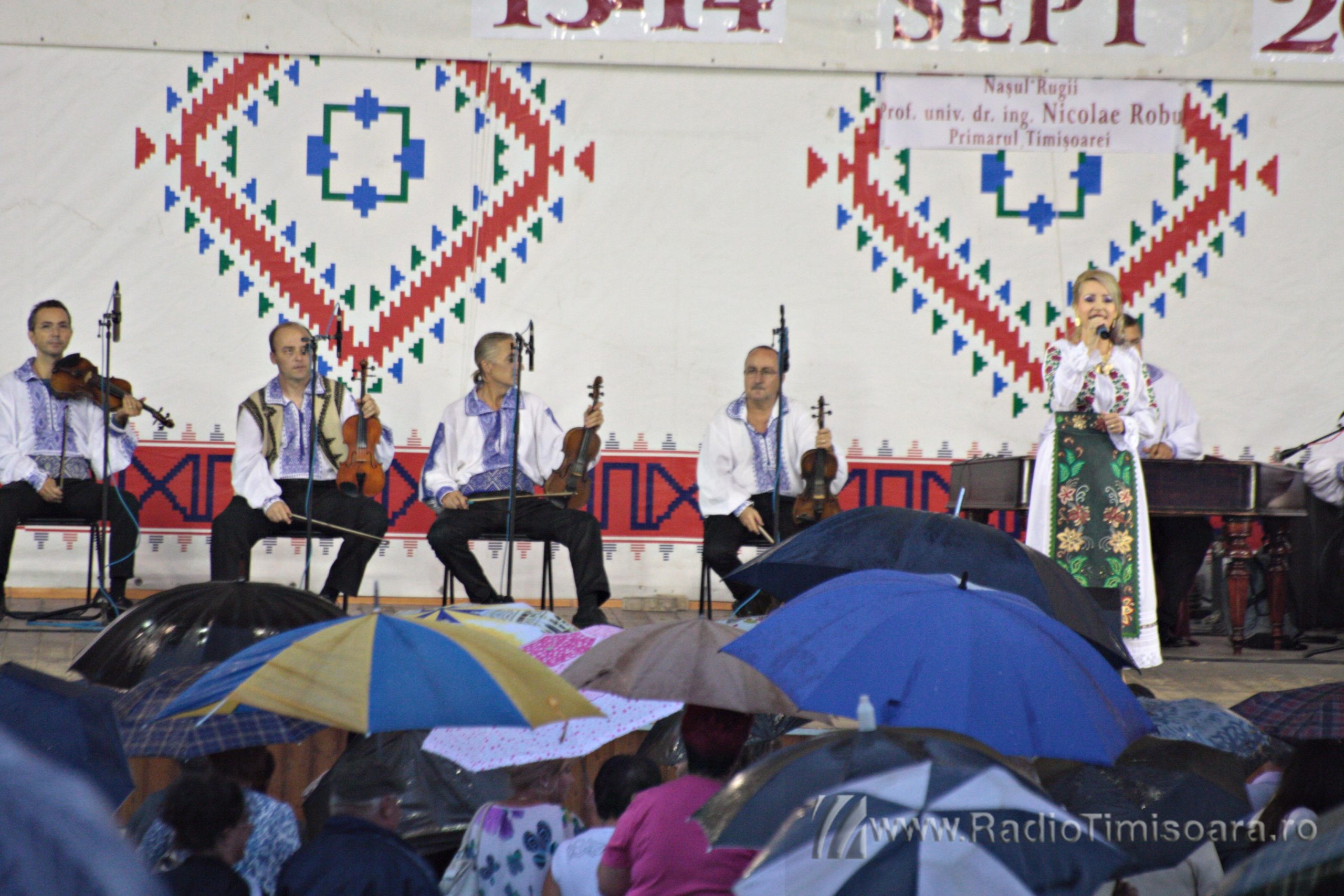Chiar dacă meteorologii au emis cod galben de ploi pentru acest sfârșit de spătămână, iubitorii de muzică populară din Timișoara au cântat și dansat în ploaie, sâmbătă, la Ruga Timișoarei. Sute de timișoreni au mers, de la ora 17.00 în Parcul Rozelor, pentru programul folcloric susținut de Ansamblul Timișul. Pe scenă au urcat soliștii vocali Tiberiu Ceia, Maria Coman, Adriana Curtu, Ancuţa Fleşariu, Camelia Florea, Denis Hiliţeanu, Petrică Moise, Mihaela Petrovici, Adrian Stanca, Felicia Stoian, Daniela Ștefan, Doriana Talpeş, Ramona Viţa şi Nicoleta Voica. Pe măsură ce ploaia, anunțată de meteorologi, s-a întețit, mulți dintre timișoreni s-au adăpostit, însă muzica a continuat.