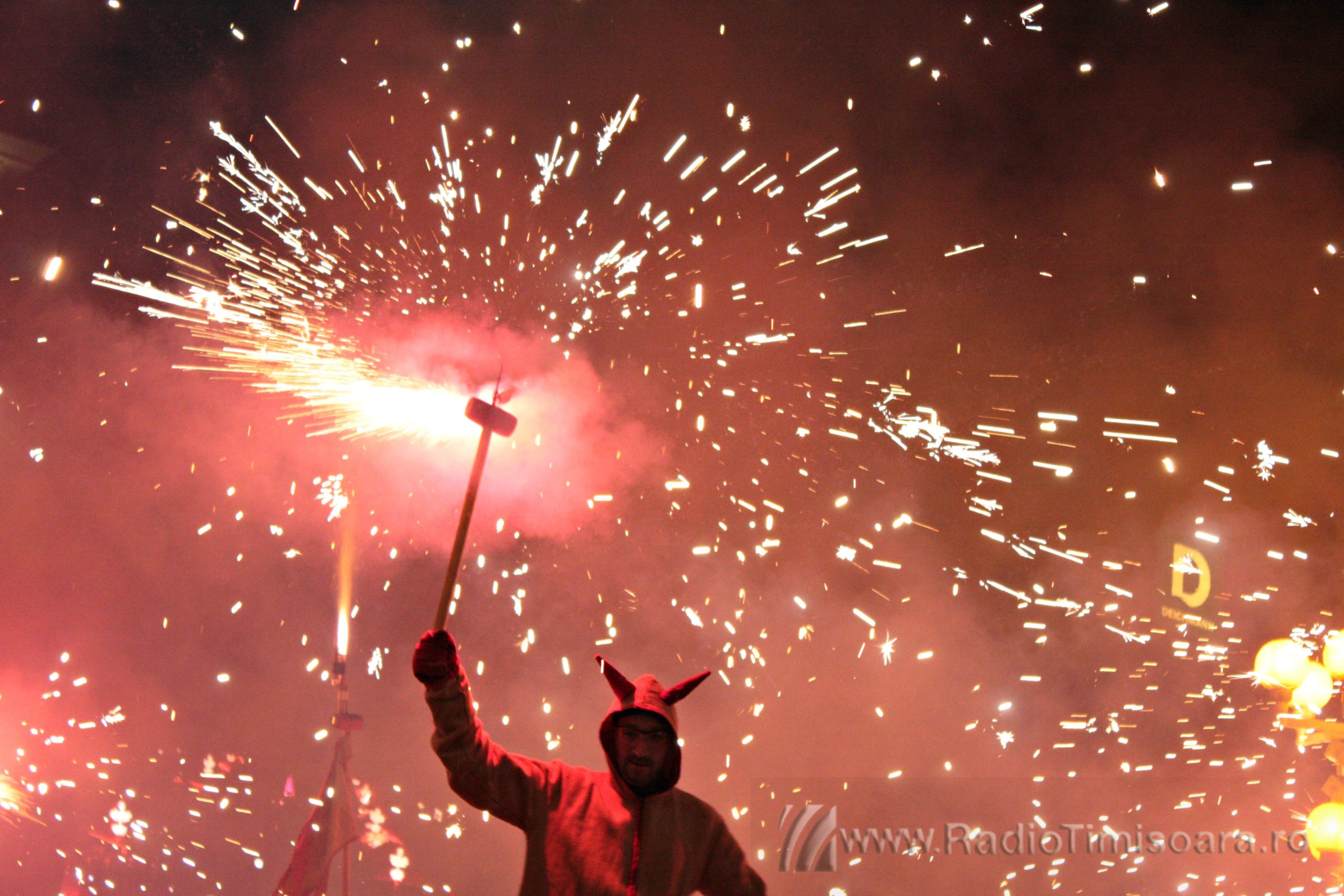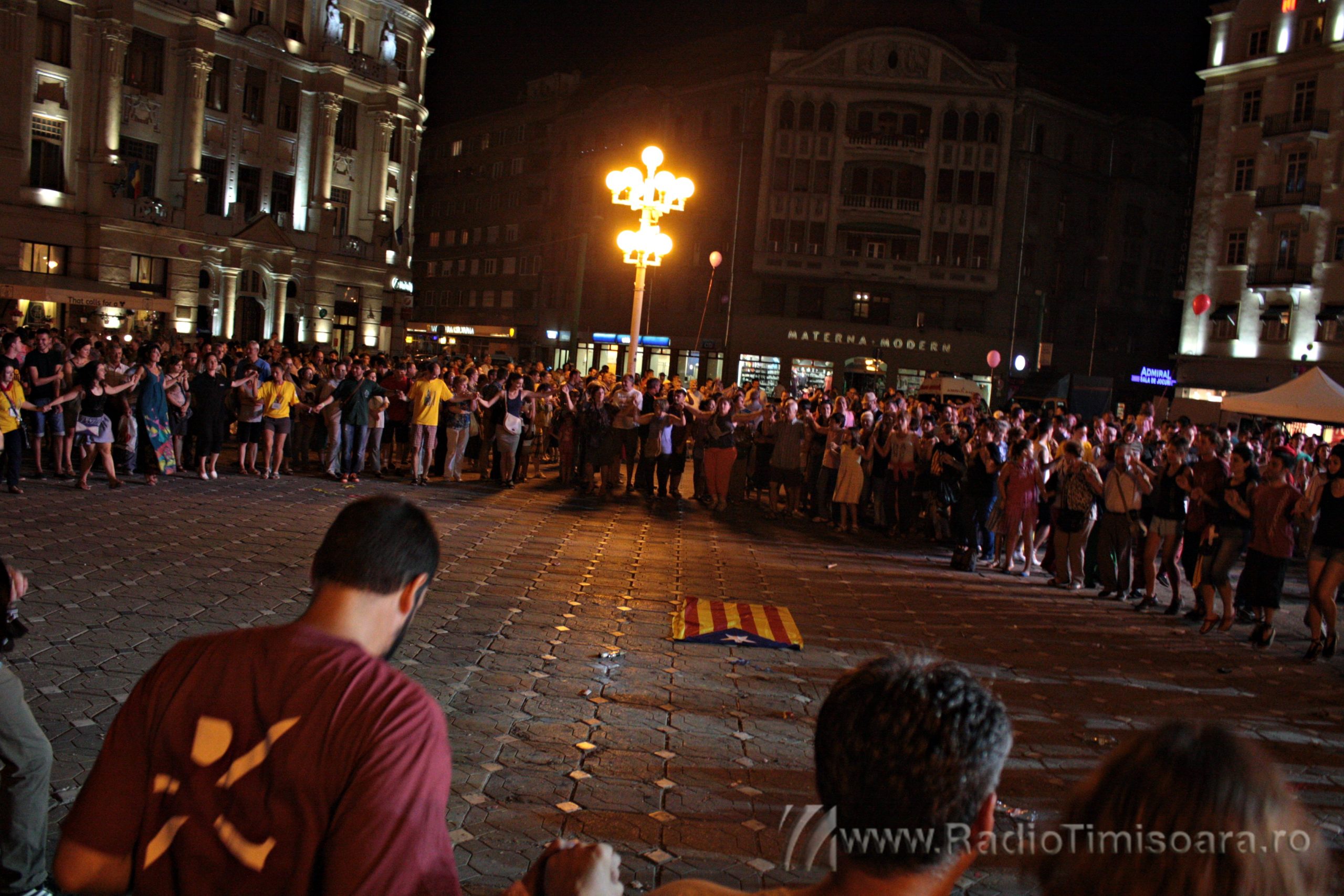 Mii de timișoreni au participat duminică seara la Festivalul de folclor catalan. Cei aproape 500 de artiști au cucerit Piața Victoriei, devenită o imensă scenă pentru momente spectaculoase de muzică, jocuri cu foc, turnuri umane și hore catalane. “Follia Dels Elements” sau “Nebunia elementelor” s-a dezlănțuit odată cu lăsarea serii. Vegheați de ‘Super Luna’, aflată mai aproape de Pământ pentru a intra parcă în nebunia Sardanei, mii de oameni au redevenit copii, urmărind cu sufletul la gură demonstrațiile cu foc. De câteva minute a fost nevoie pentru ca timișorenii să deprindă pașii horei catalane, rotindu-se apoi în ceea ce se numește sardana llarga.