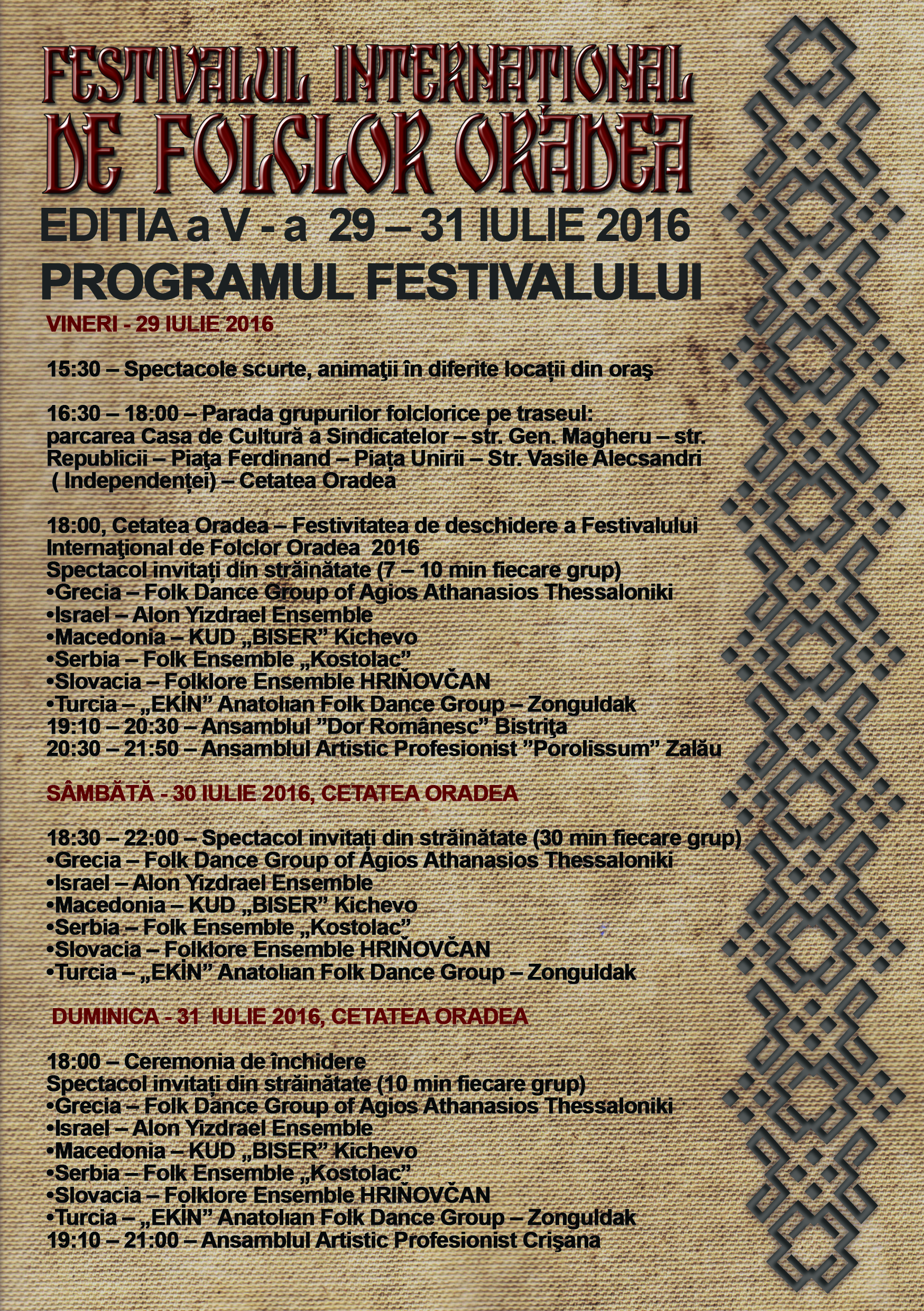 Festival Internaţional de Folclor la Oradea / PROGRAM