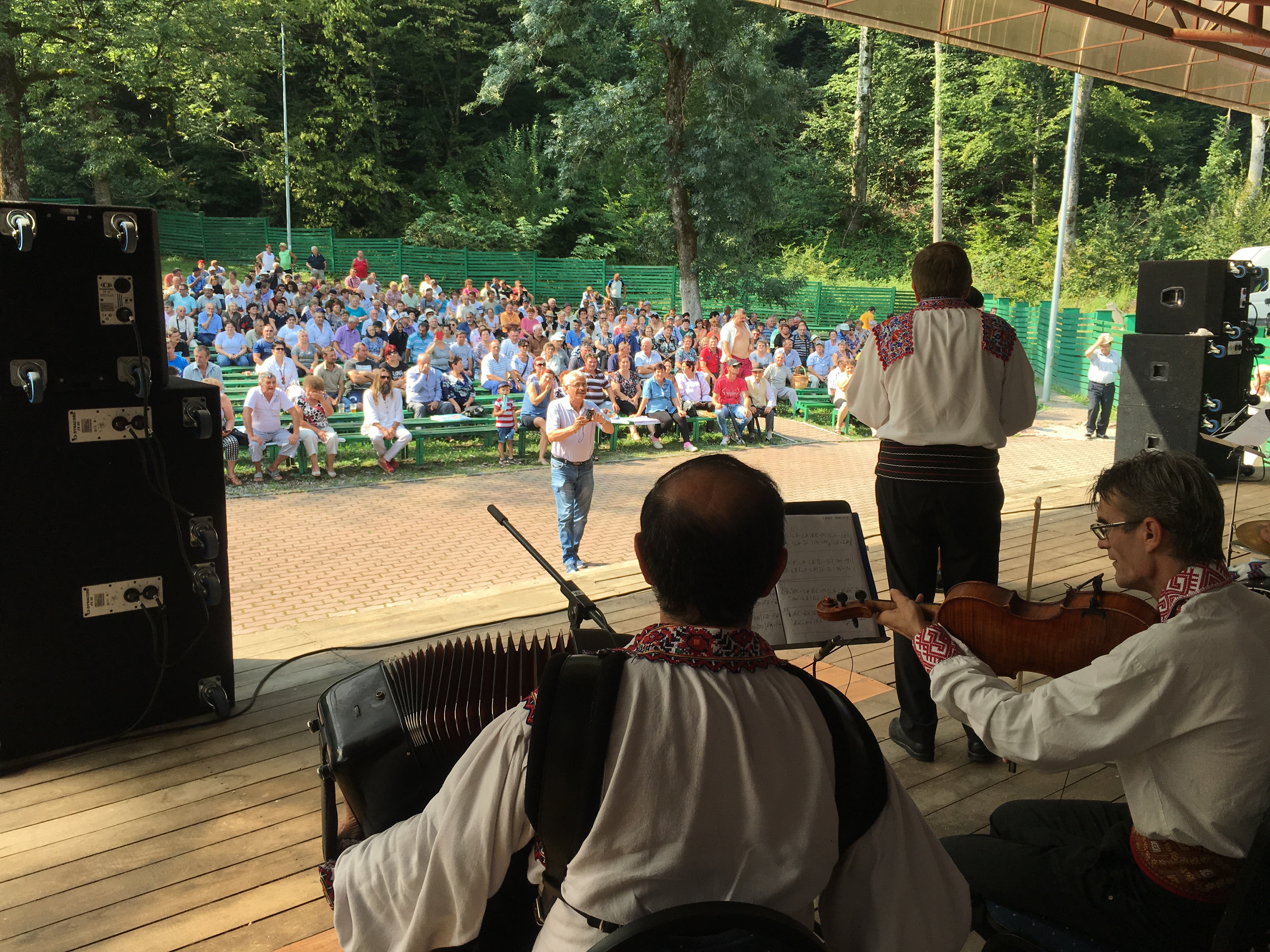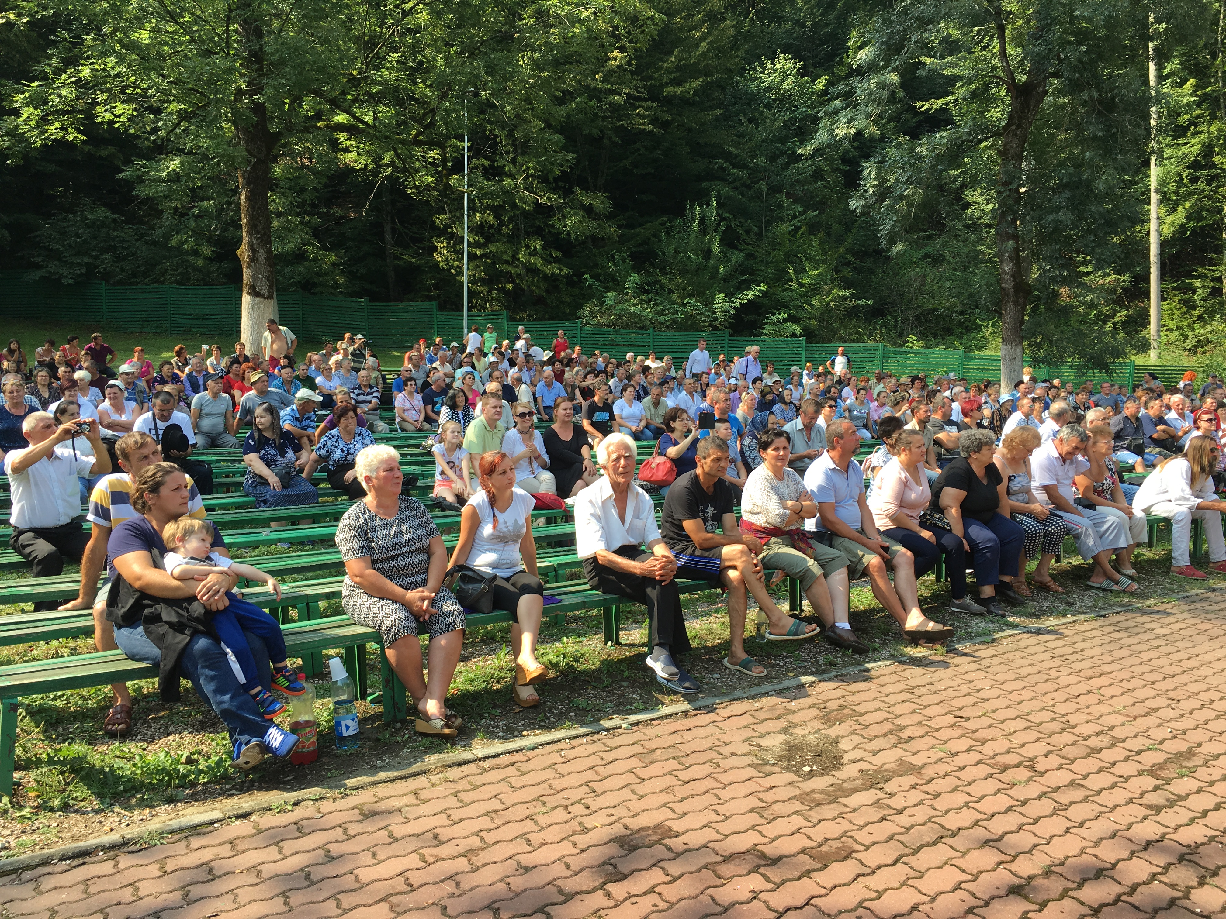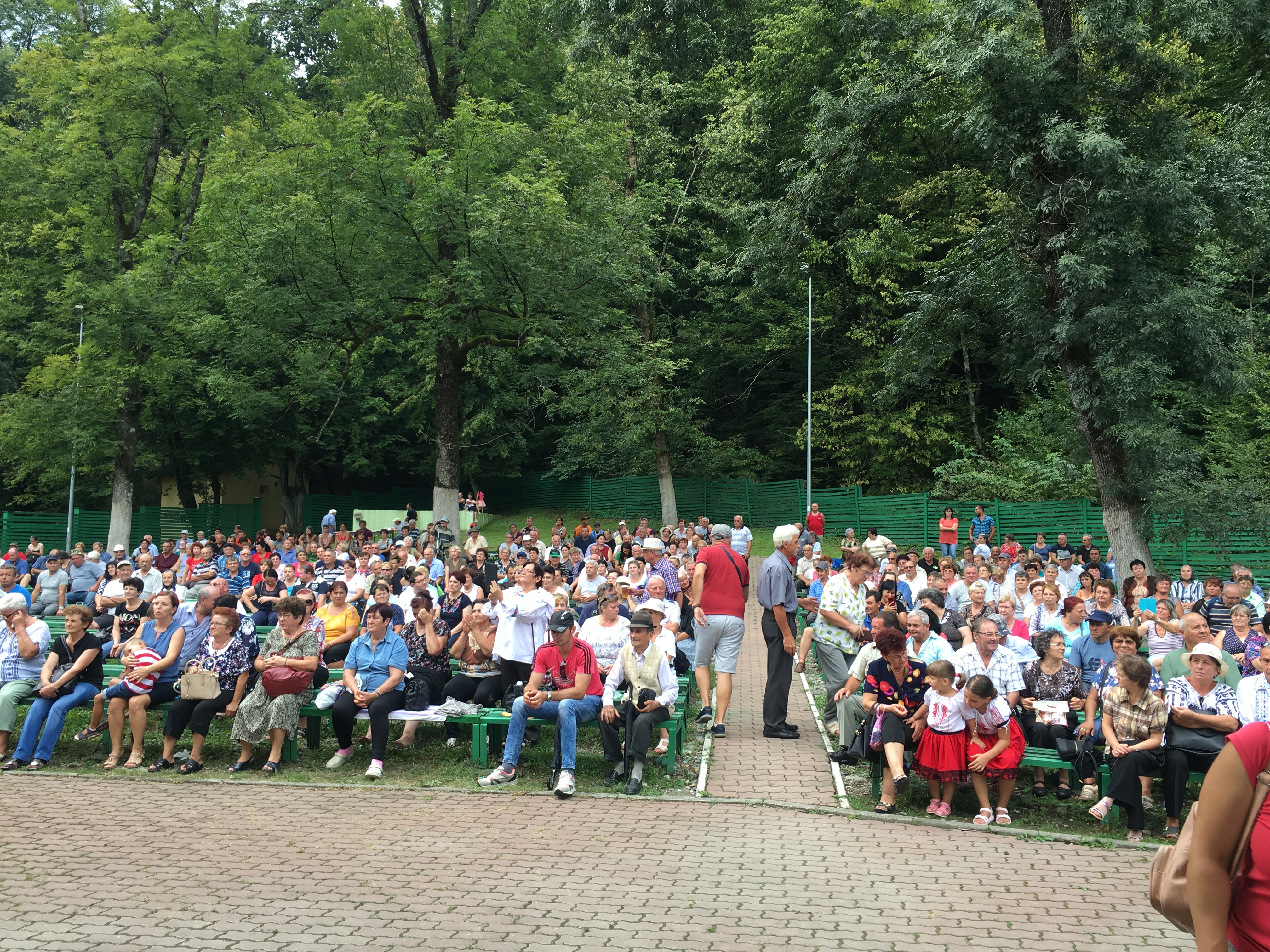 Moneasa parcă nu mai e aceeași fără arborii falnici de pe aleea ce duce spre Teatru de Vară și cei din Parcul Stațiunii distruși de furtuna din septembrie. Am poposit duminică la dublul eveniment tradițional cu o strângere de inimă, stropi de ploaie amenințau festivalul care se desfășoară în aer liber, dar care au lăsat loc razelor de soare ce au adunat imediat publicul în fața scenei.