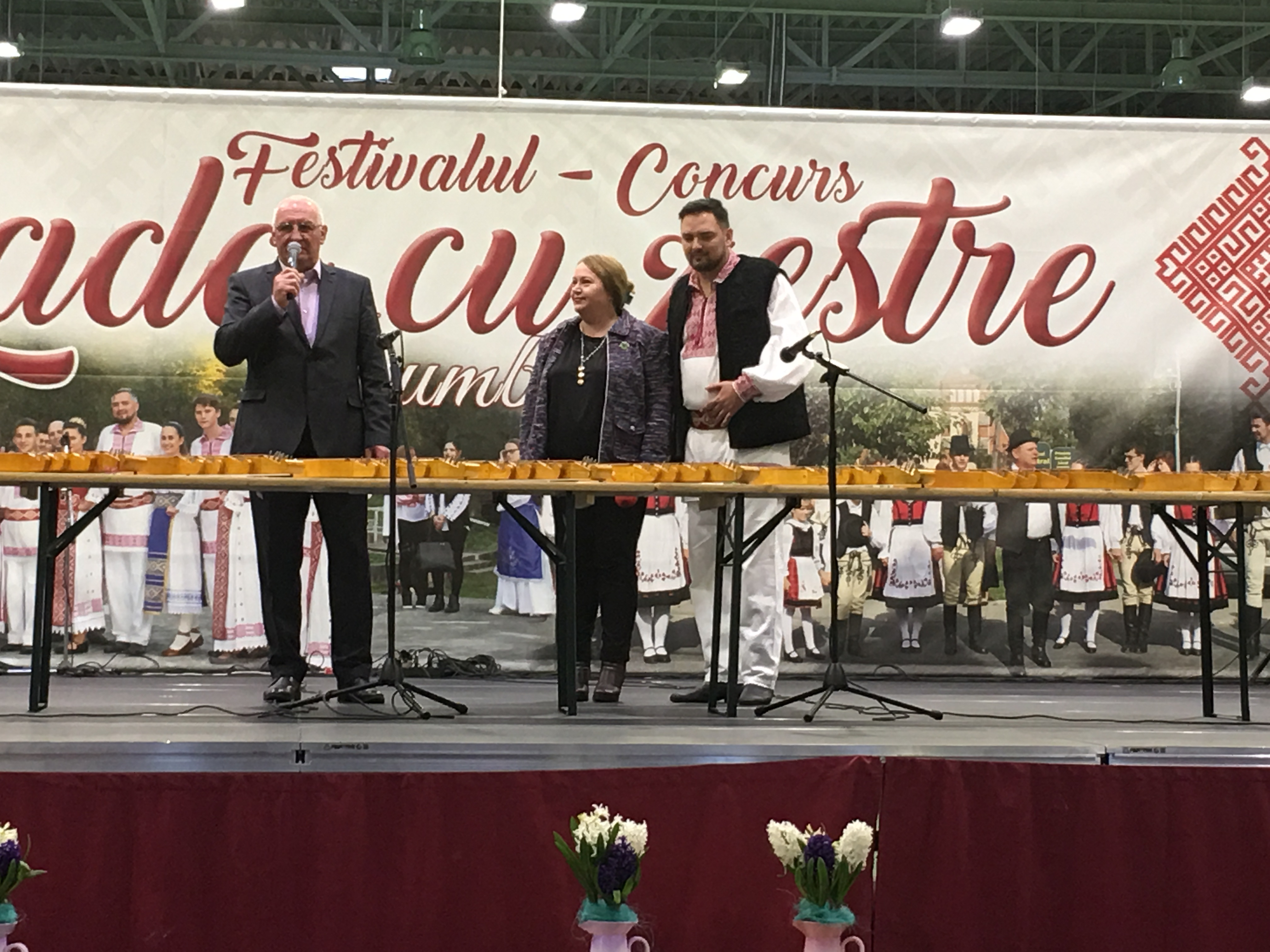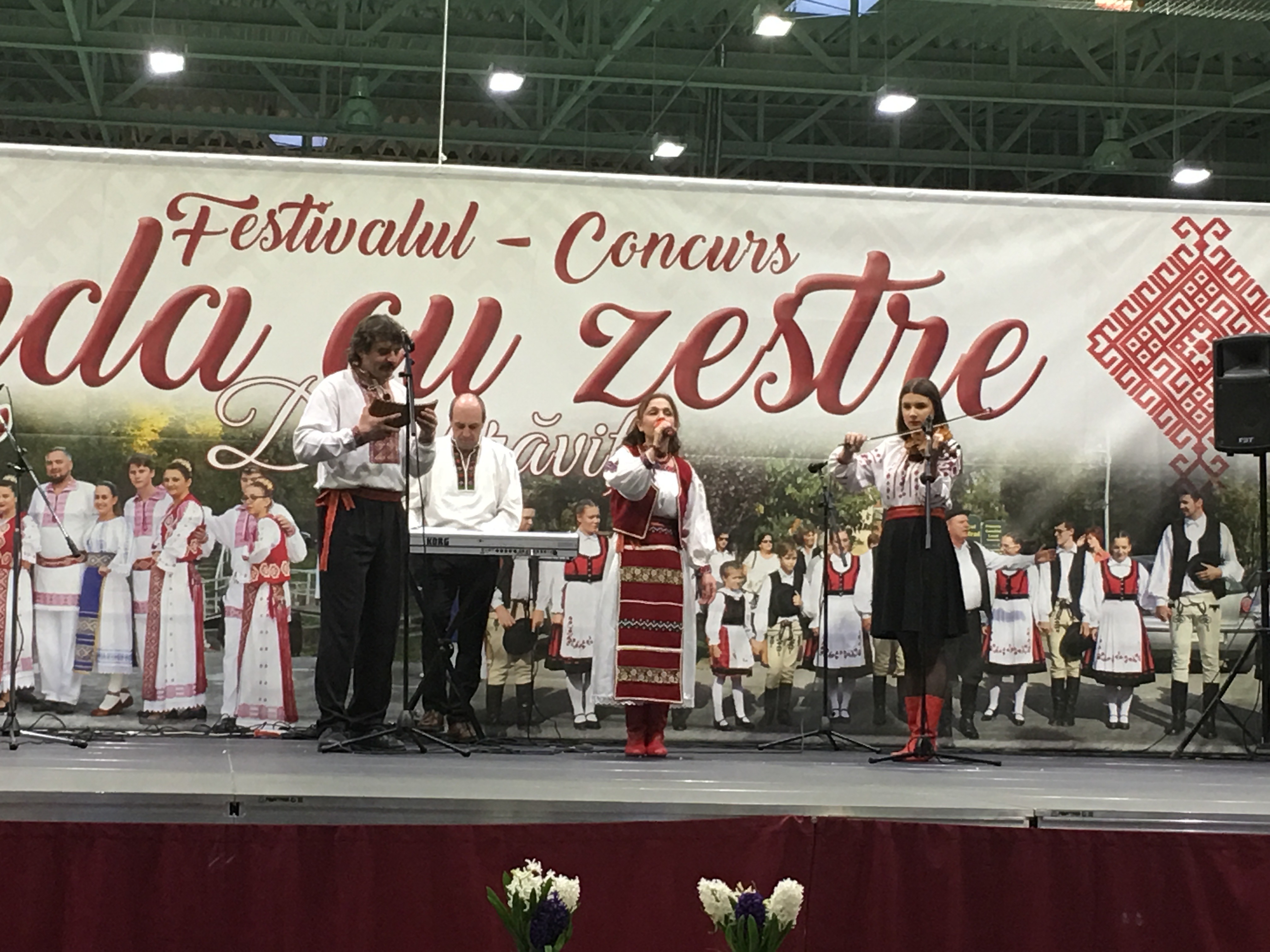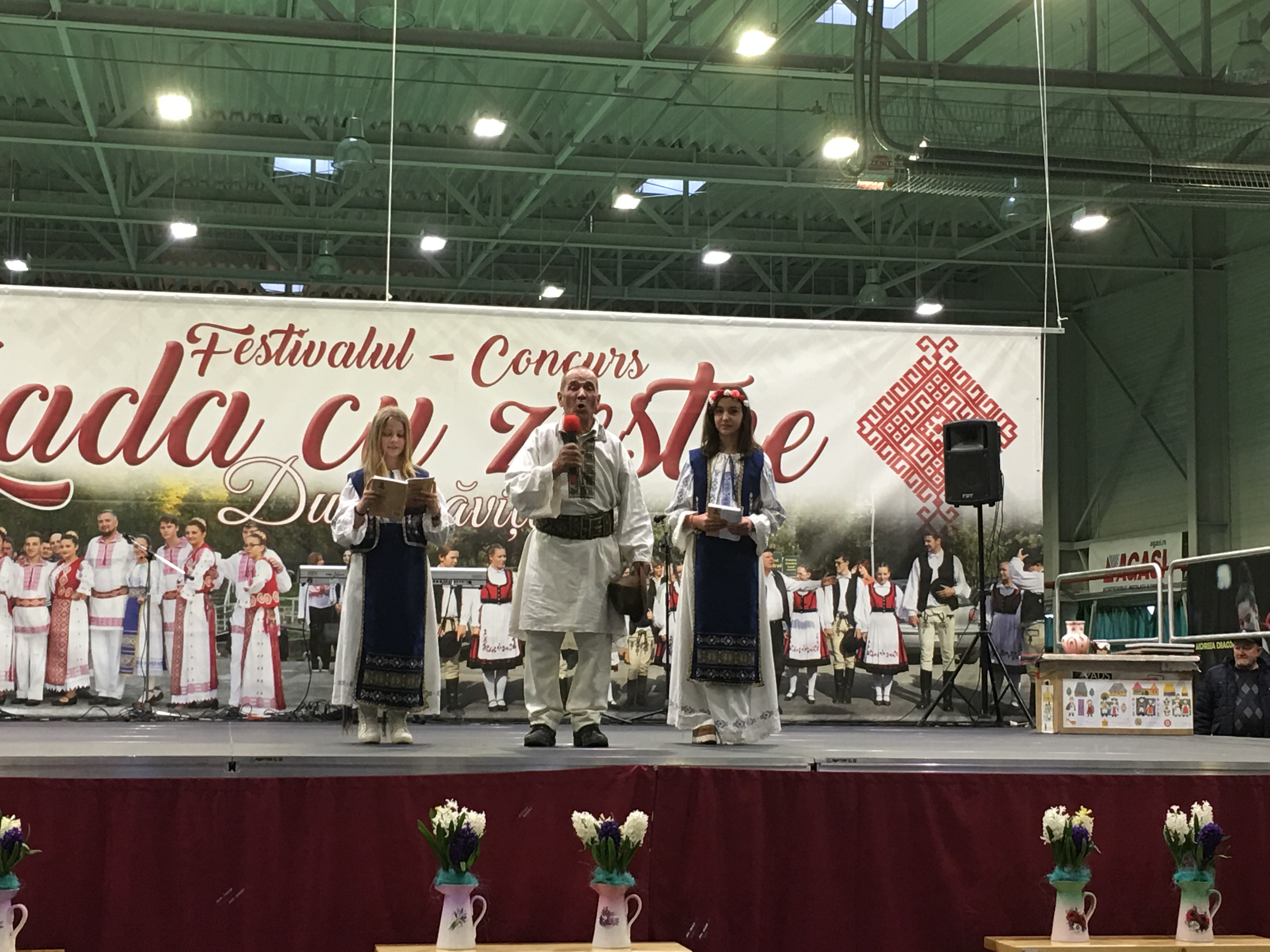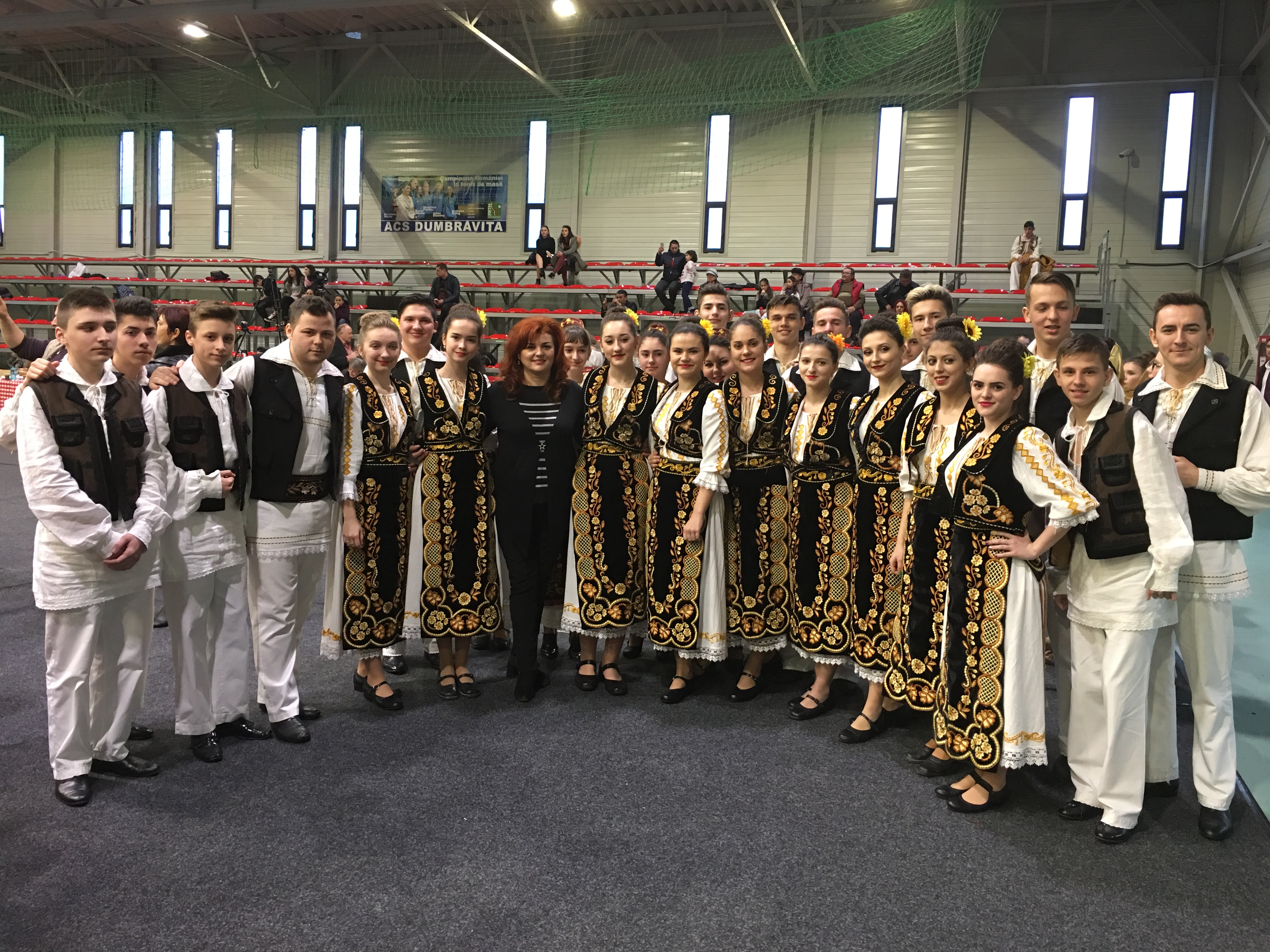 Sala Polivalentă din Dumbrăviţă s-a transformat sâmbătă într-o „arenă” a artei tradiţionale. Podeaua a fost mochetată pentru a estompa ecoul, scena amenajată şi decorată în contextul cerut de manifestarea organizată de Centrul de Cultură şi Artă Timiş. Fără implicarea autorităţilor locale greu s-ar putea desfăşura un Festival de o asemenea anvergură.