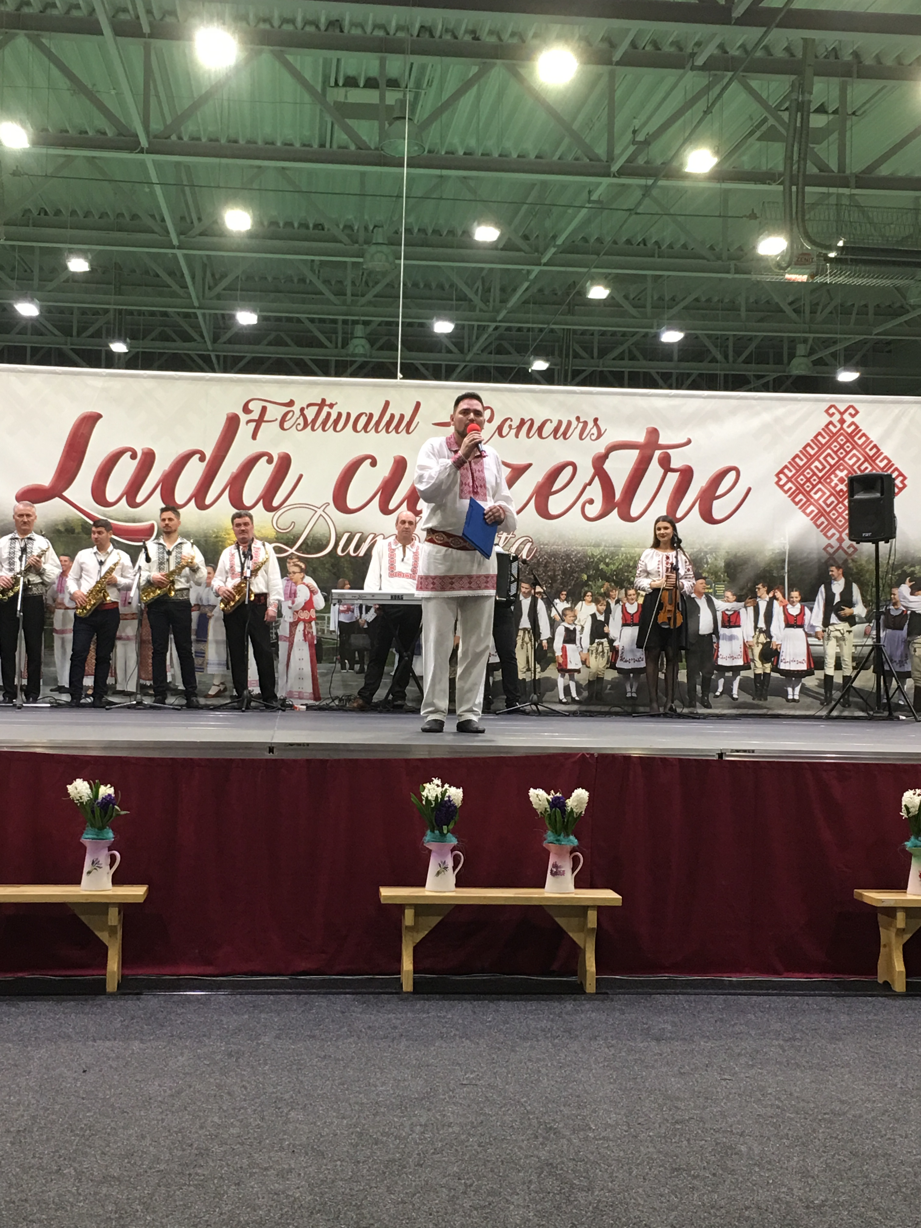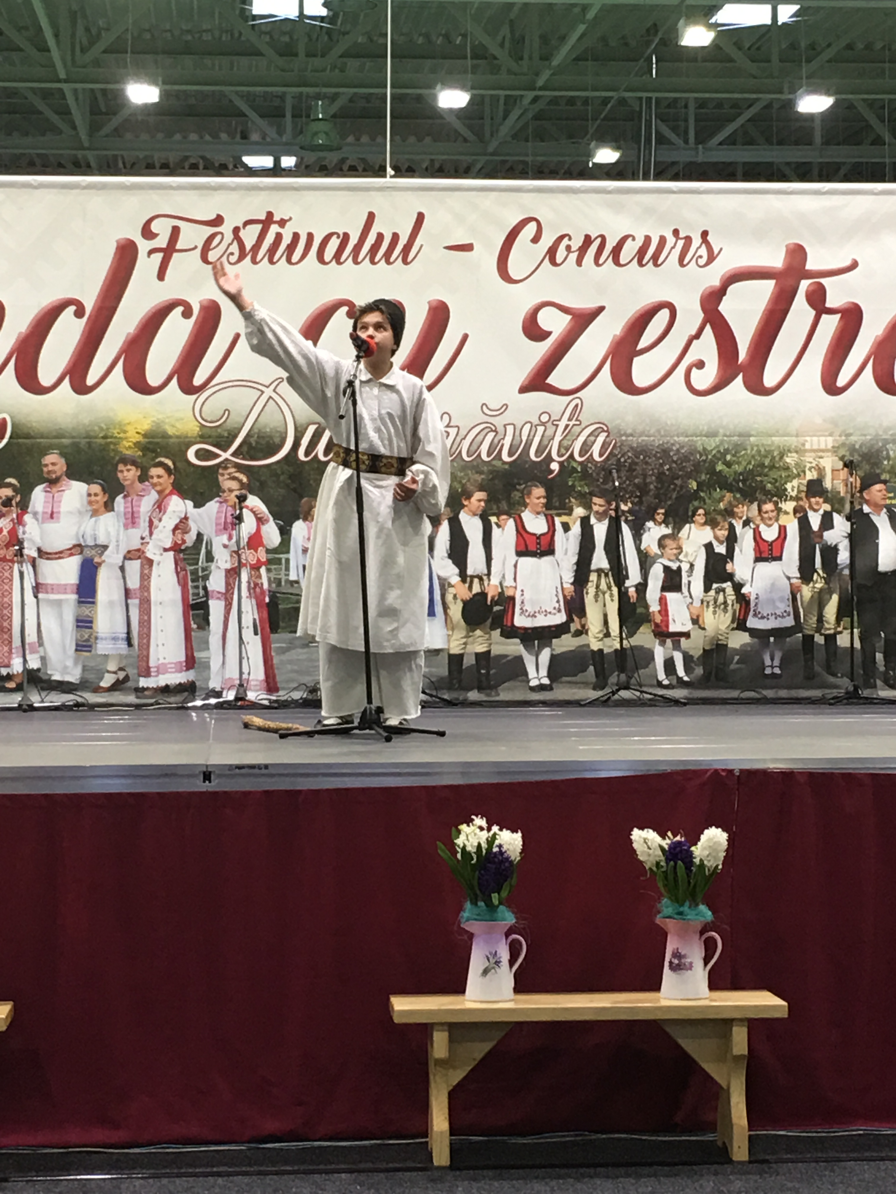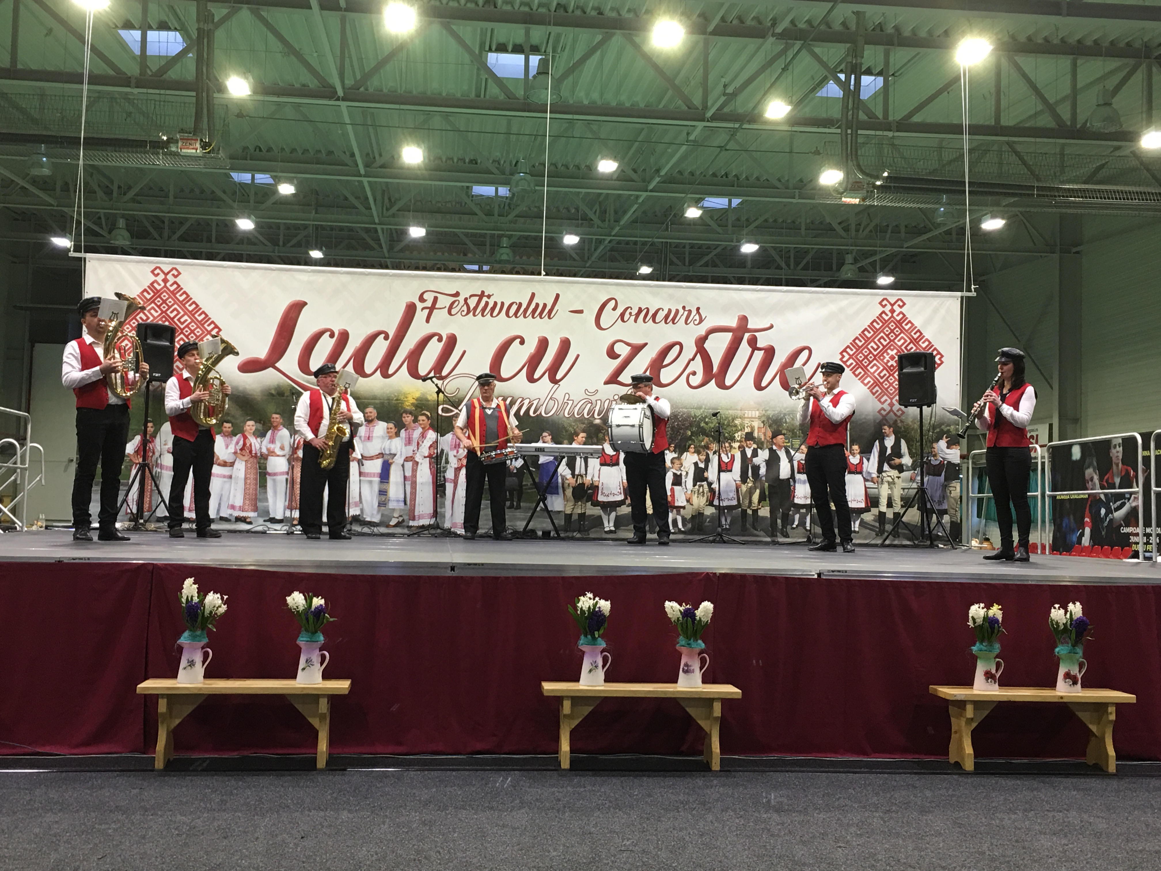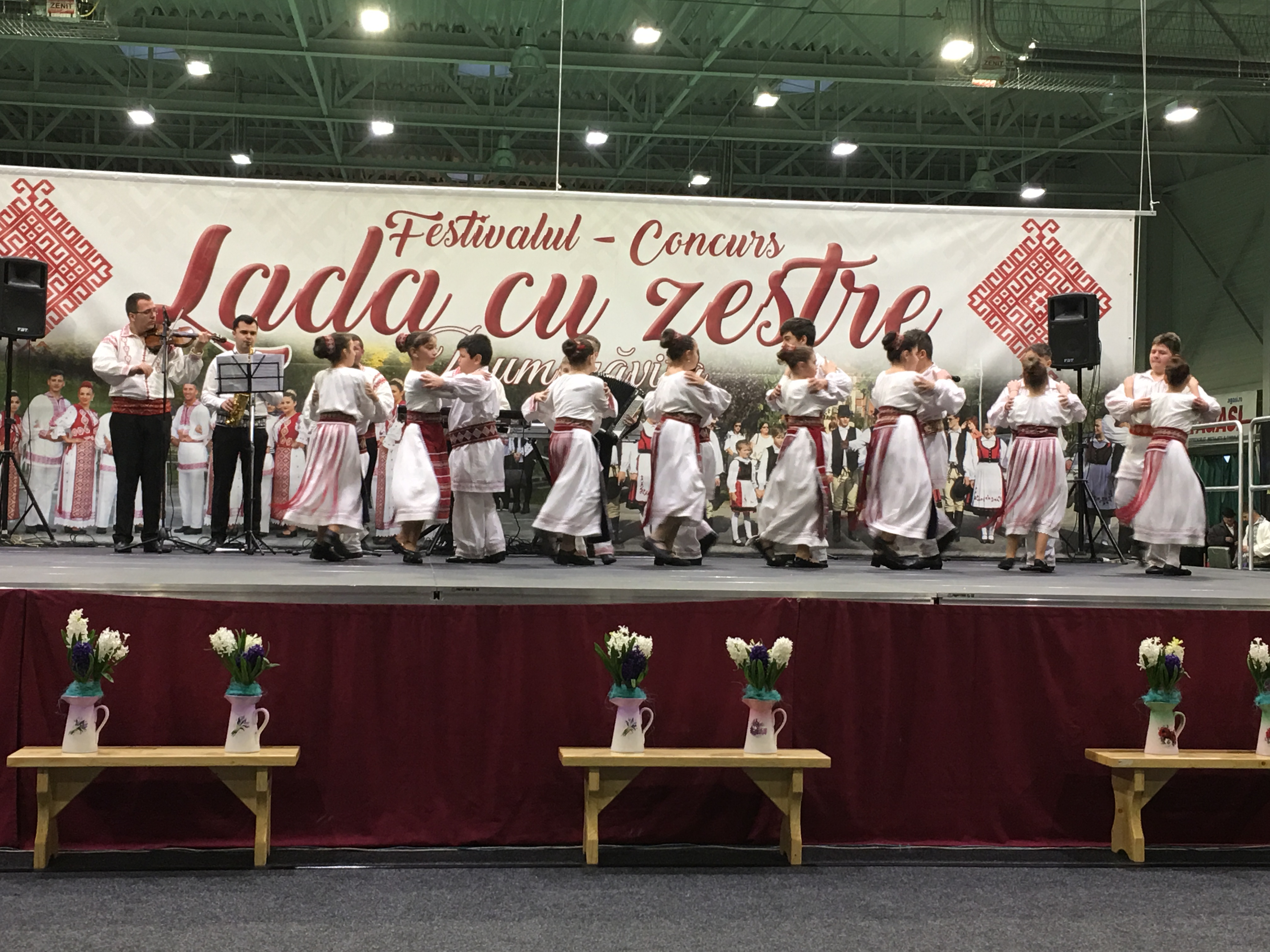 Sala Polivalentă din Dumbrăviţă s-a transformat sâmbătă într-o „arenă” a artei tradiţionale. Podeaua a fost mochetată pentru a estompa ecoul, scena amenajată şi decorată în contextul cerut de manifestarea organizată de Centrul de Cultură şi Artă Timiş. Fără implicarea autorităţilor locale greu s-ar putea desfăşura un Festival de o asemenea anvergură.