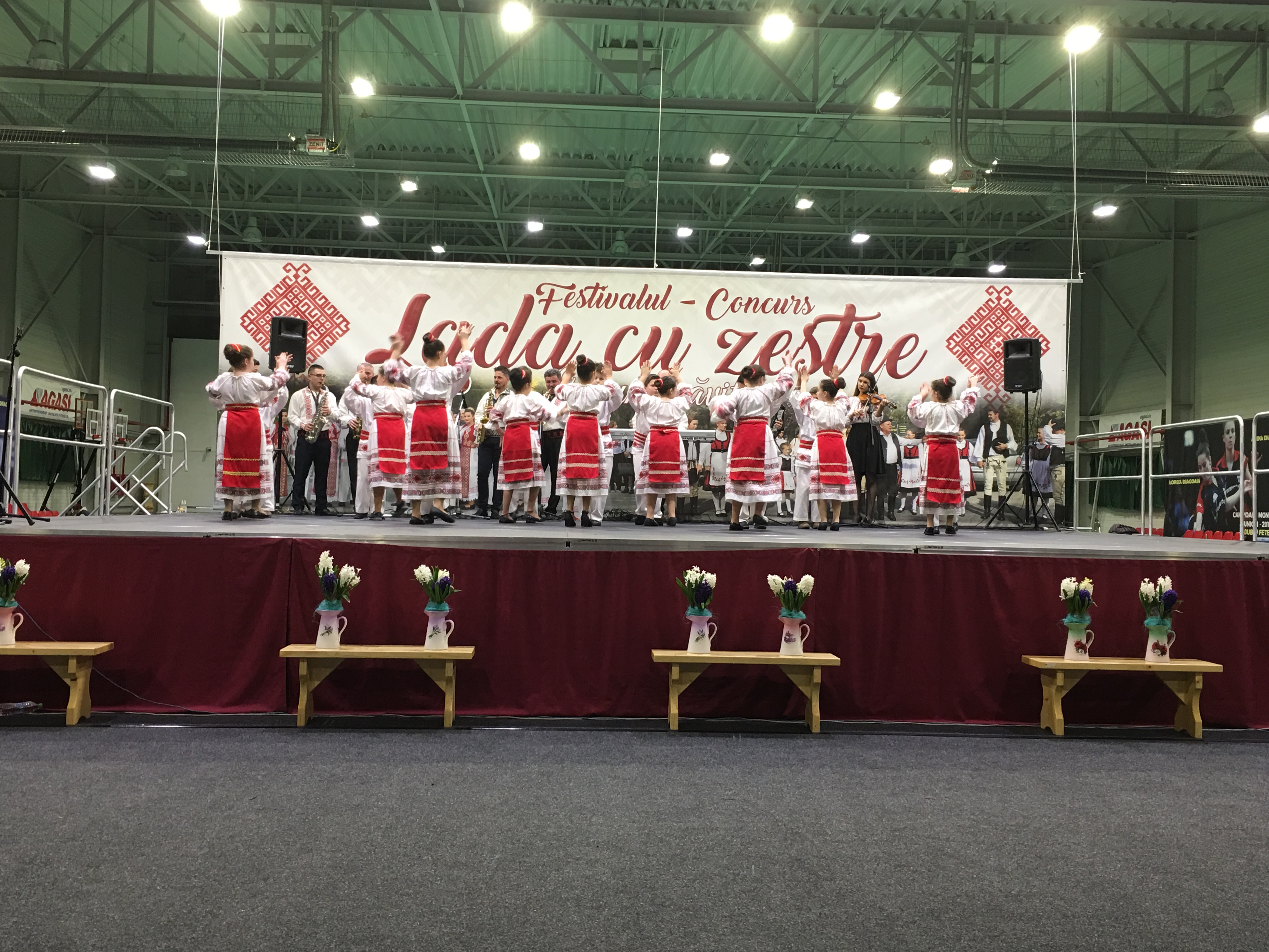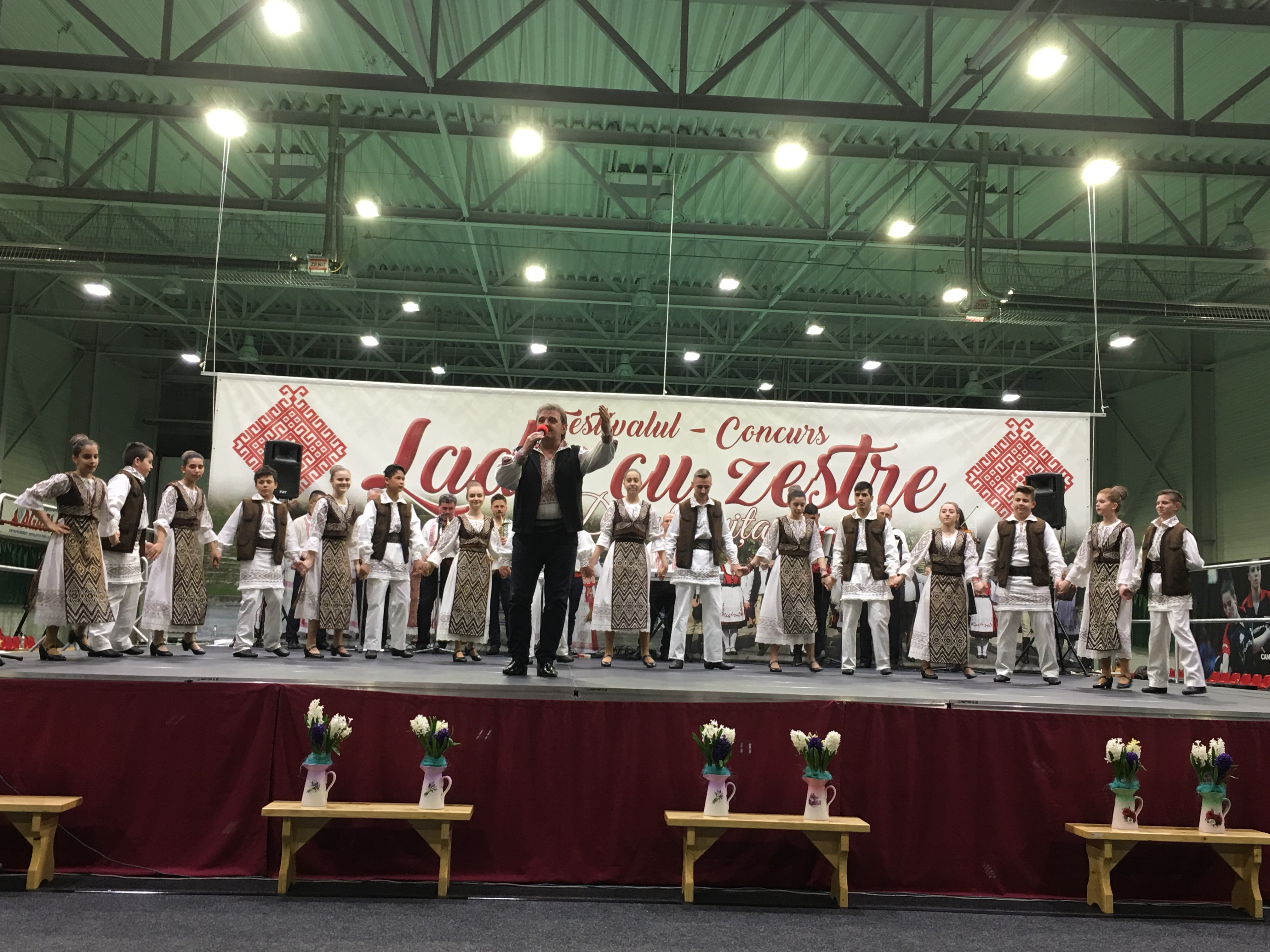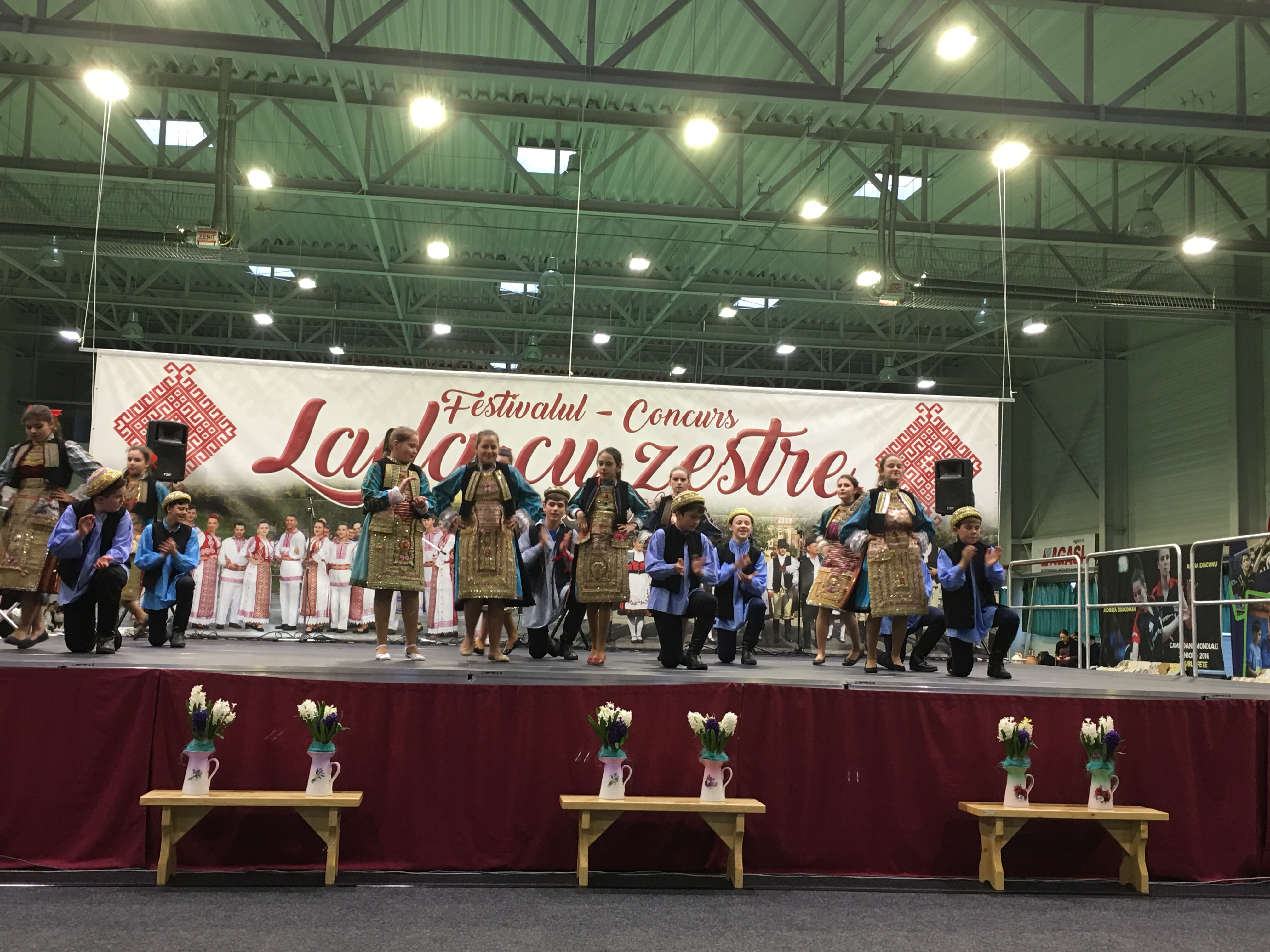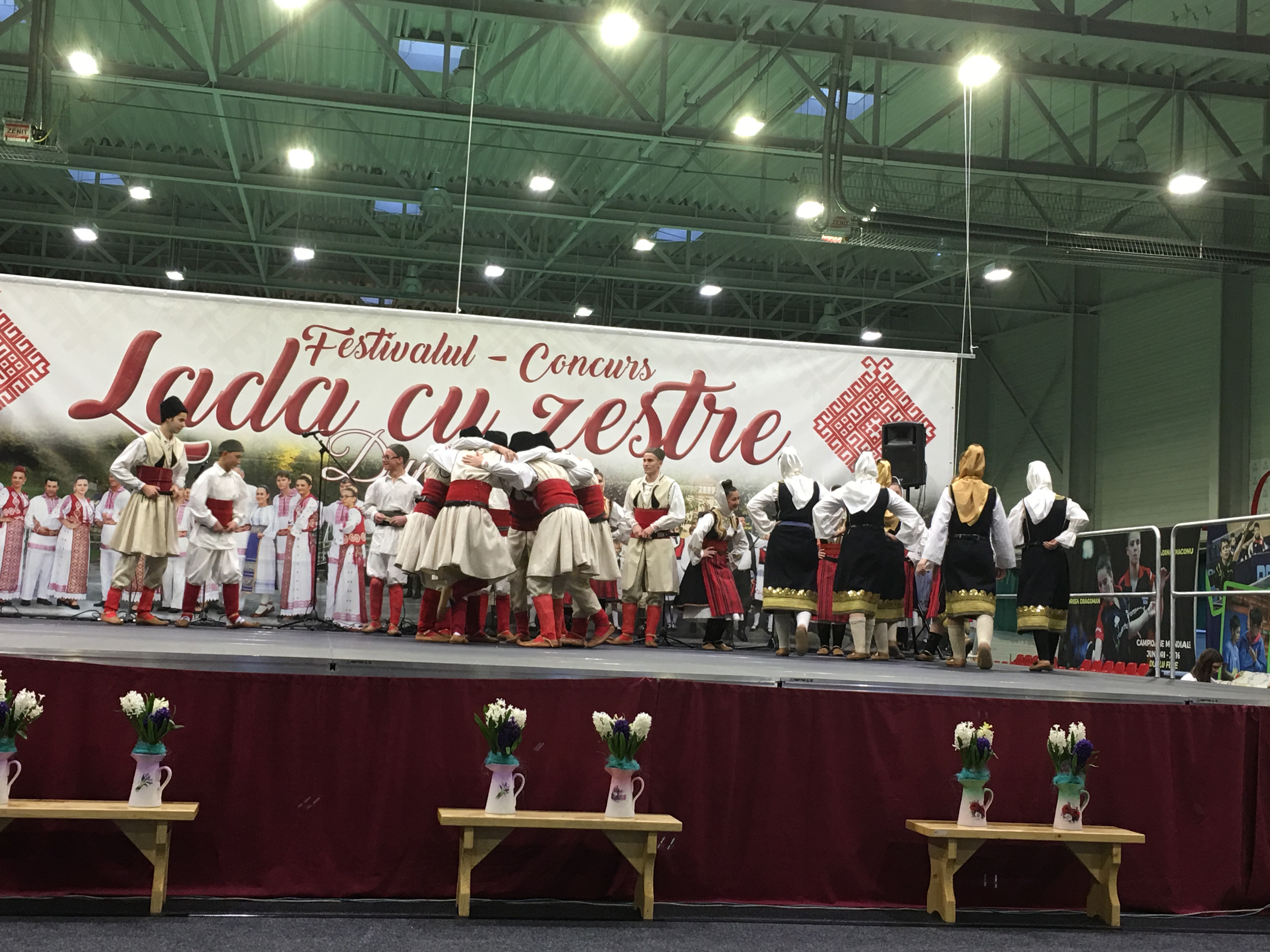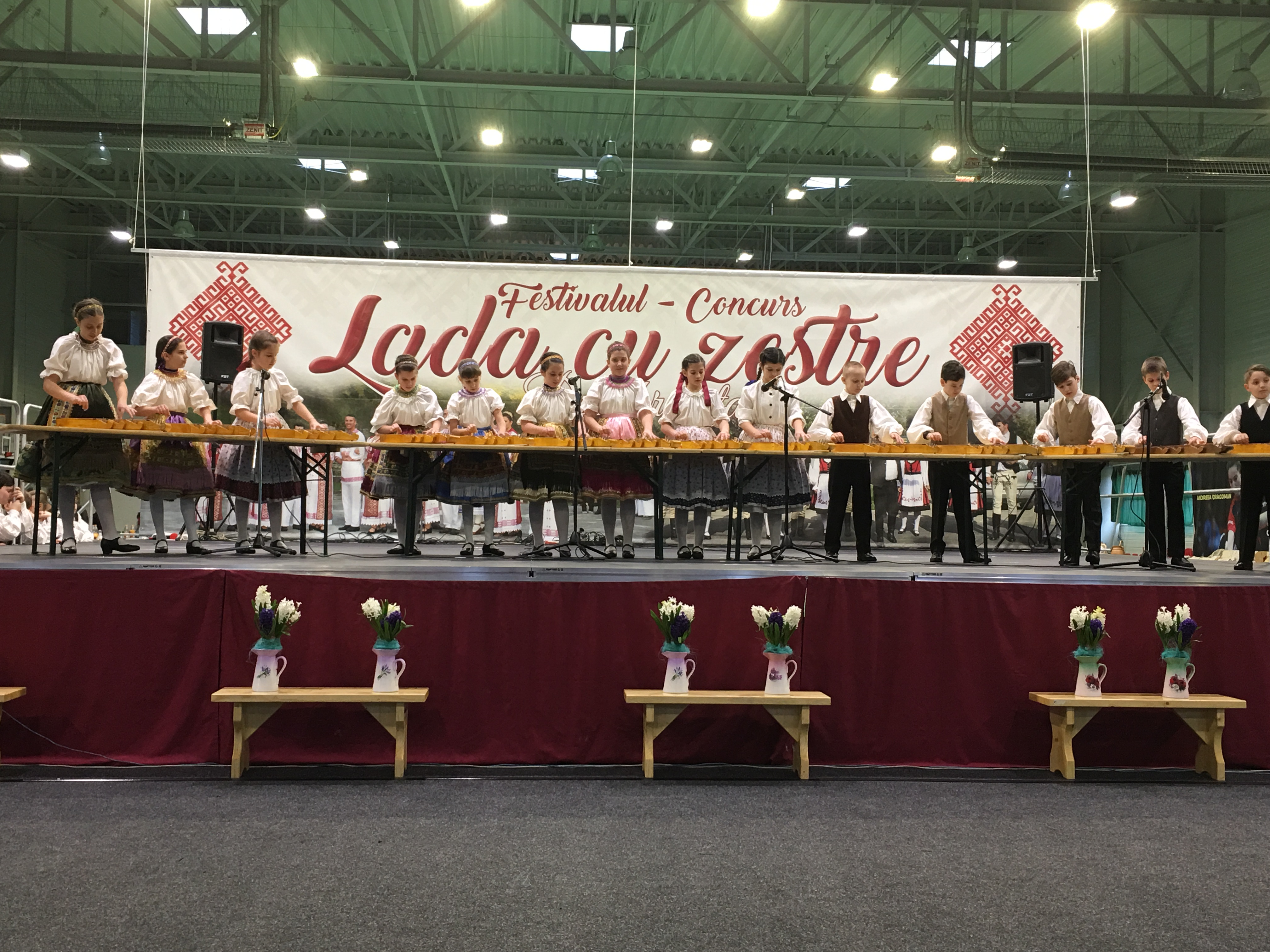 Sala Polivalentă din Dumbrăviţă s-a transformat sâmbătă într-o „arenă” a artei tradiţionale. Podeaua a fost mochetată pentru a estompa ecoul, scena amenajată şi decorată în contextul cerut de manifestarea organizată de Centrul de Cultură şi Artă Timiş. Fără implicarea autorităţilor locale greu s-ar putea desfăşura un Festival de o asemenea anvergură.