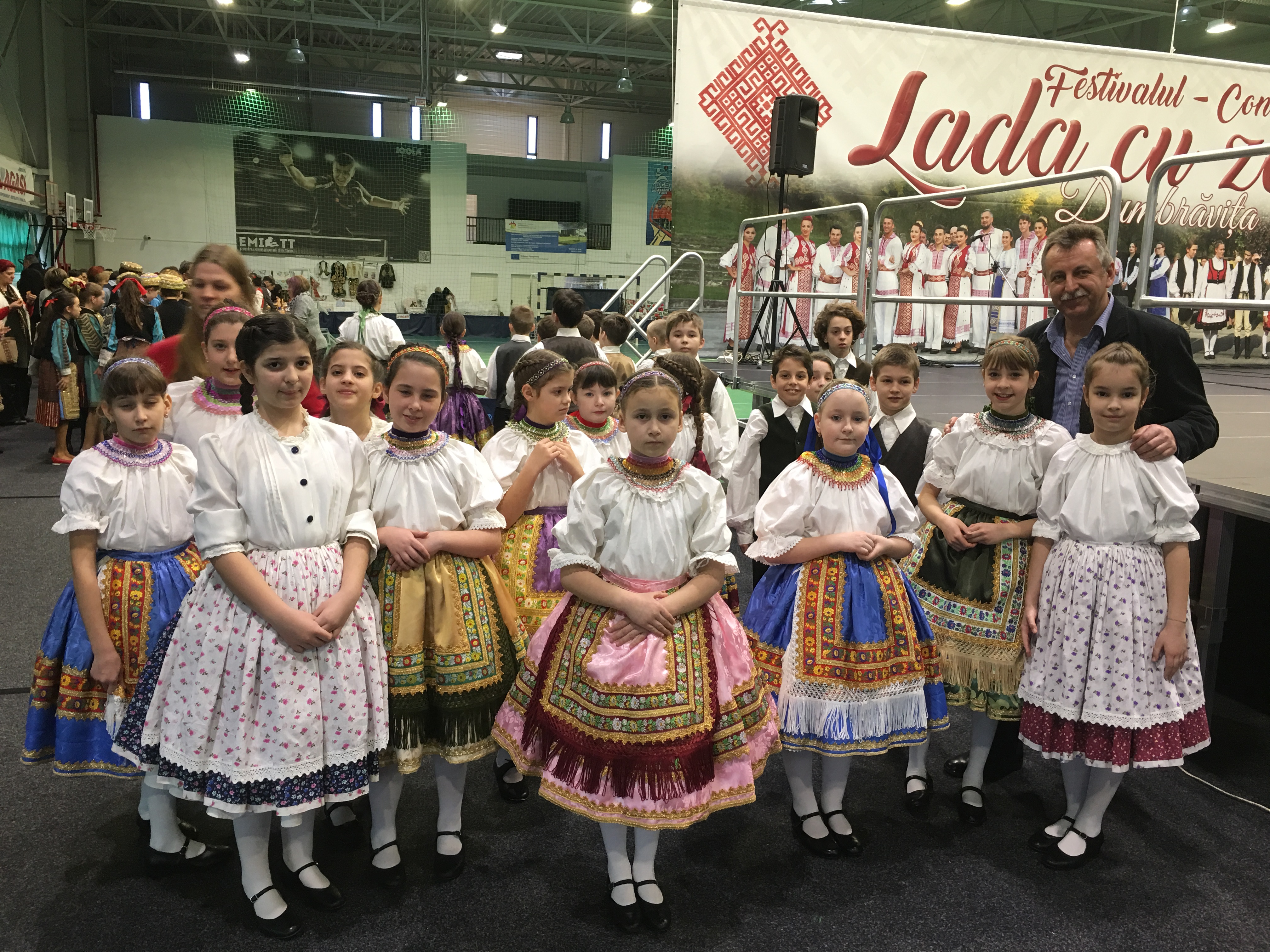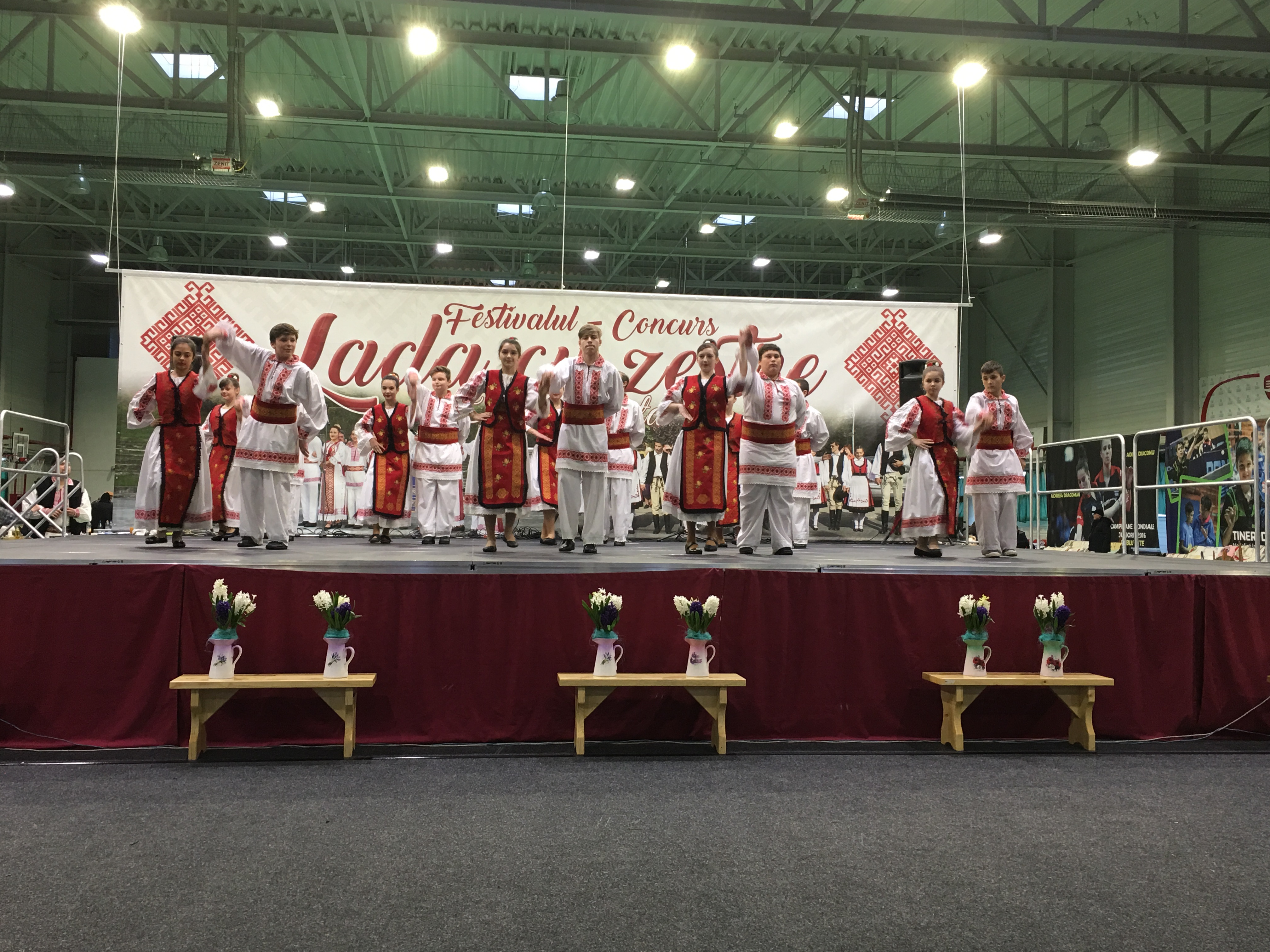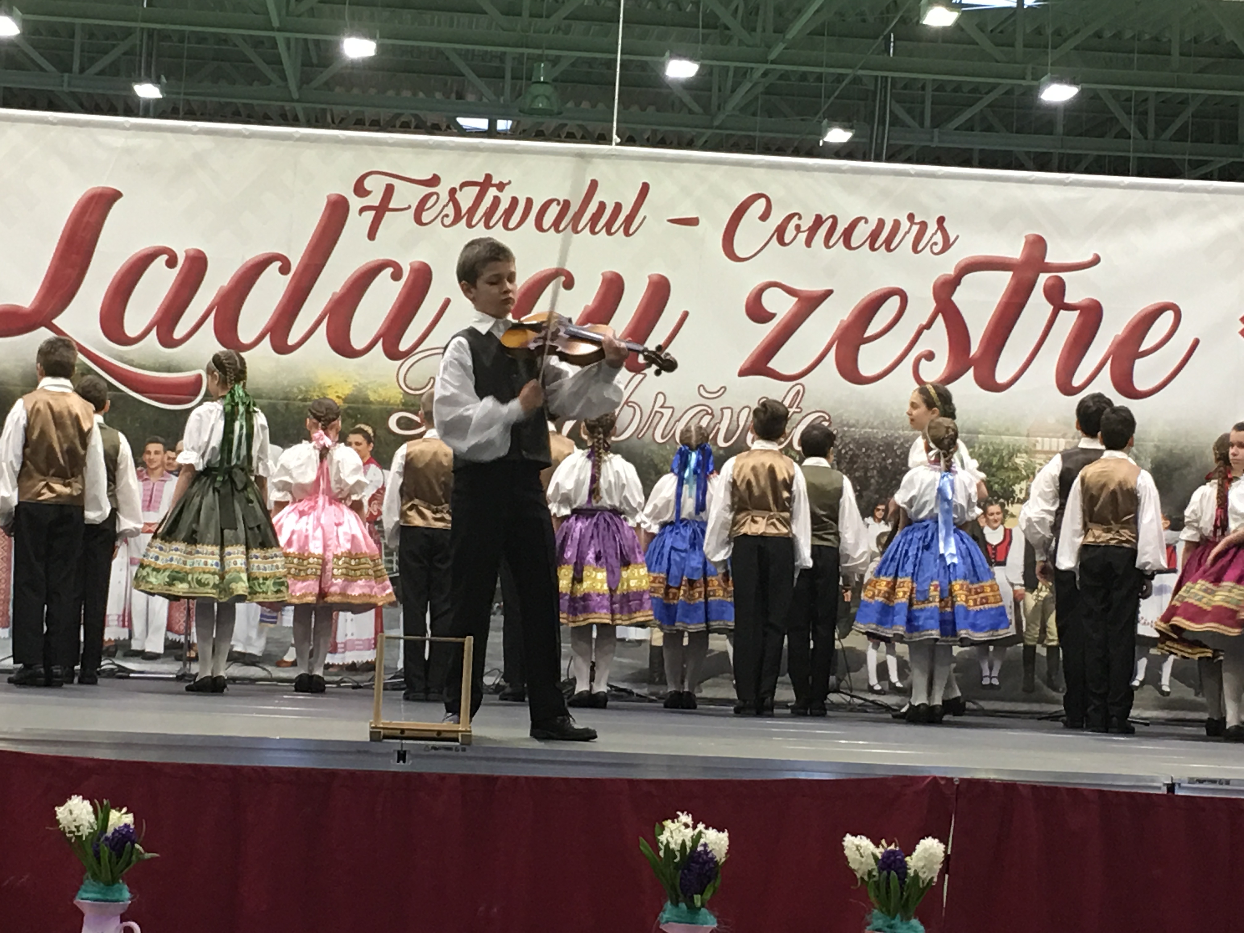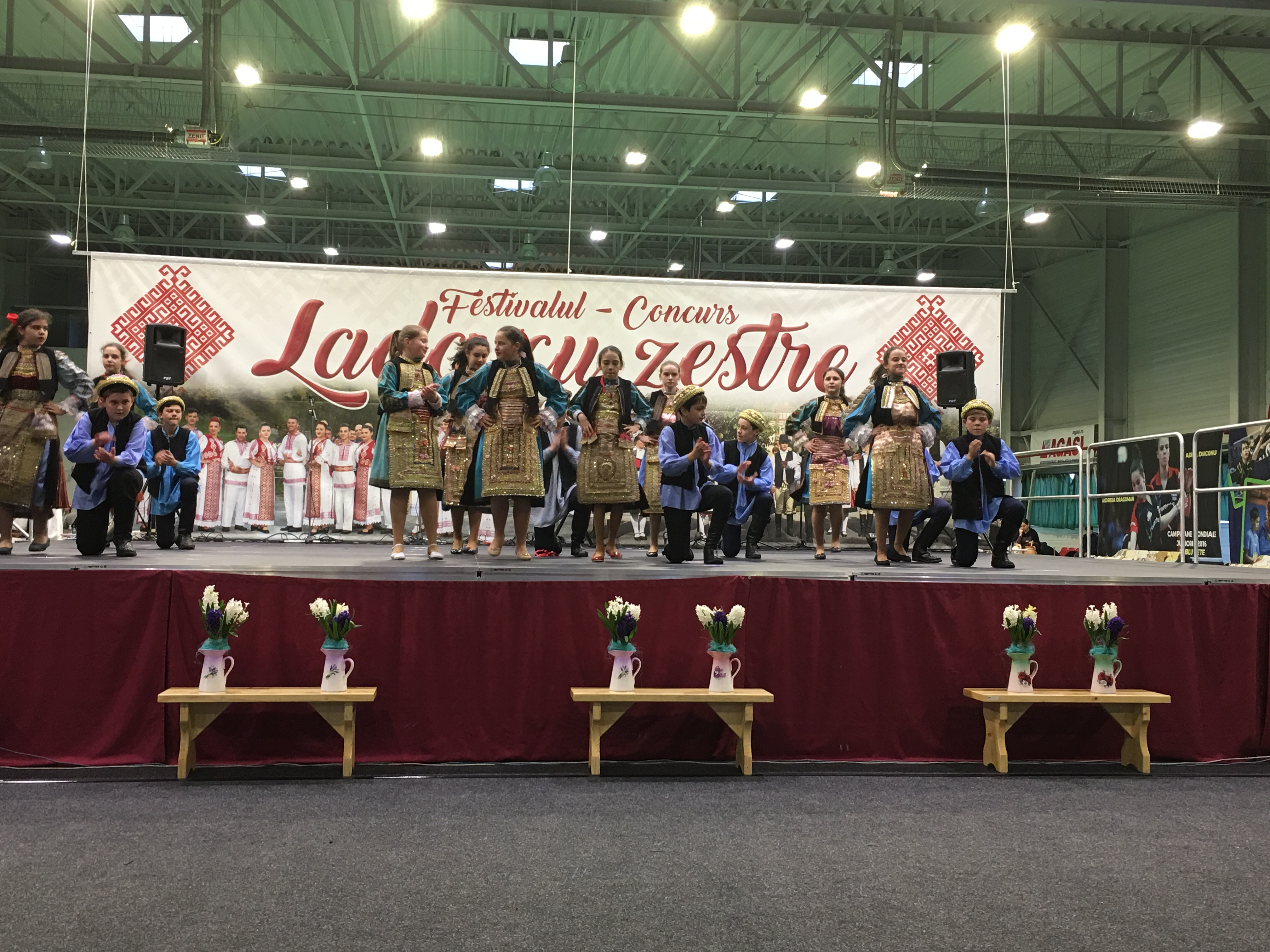 Sala Polivalentă din Dumbrăviţă s-a transformat sâmbătă într-o „arenă” a artei tradiţionale. Podeaua a fost mochetată pentru a estompa ecoul, scena amenajată şi decorată în contextul cerut de manifestarea organizată de Centrul de Cultură şi Artă Timiş. Fără implicarea autorităţilor locale greu s-ar putea desfăşura un Festival de o asemenea anvergură.