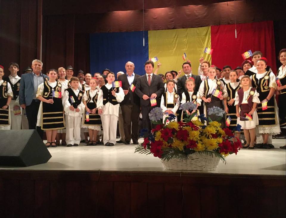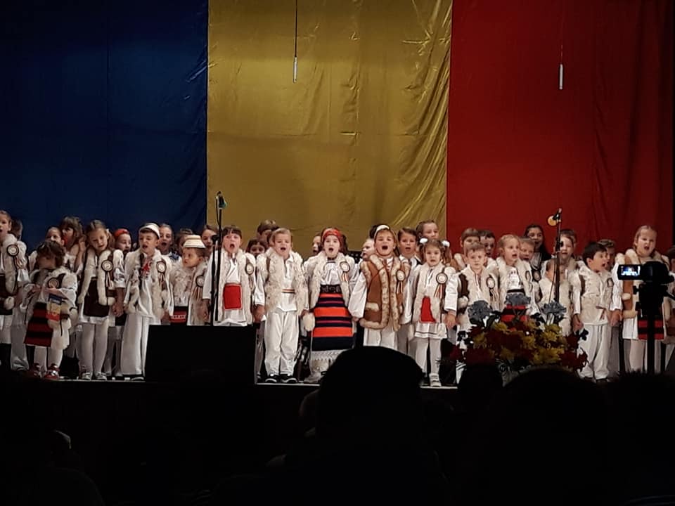 Steaguri tricolore au fluturat pe scenă şi în sala Casei de Cultură “Doru Ioan Petescu” din Pecica Arad la spectacolul de duminică, “Uniţi în cuget şi-n simţiri”, care a fost deschis de 50 de preşcolari şi elevi ai Liceului “Gheorghe Lazăr”, pregătiţi de doamnele profesor Anca Chevereşan, Ioana Bala, Norica Corodan, Otilia Rotar. Cântecele patriotice în glasurile lor, au emoţionat puternic.