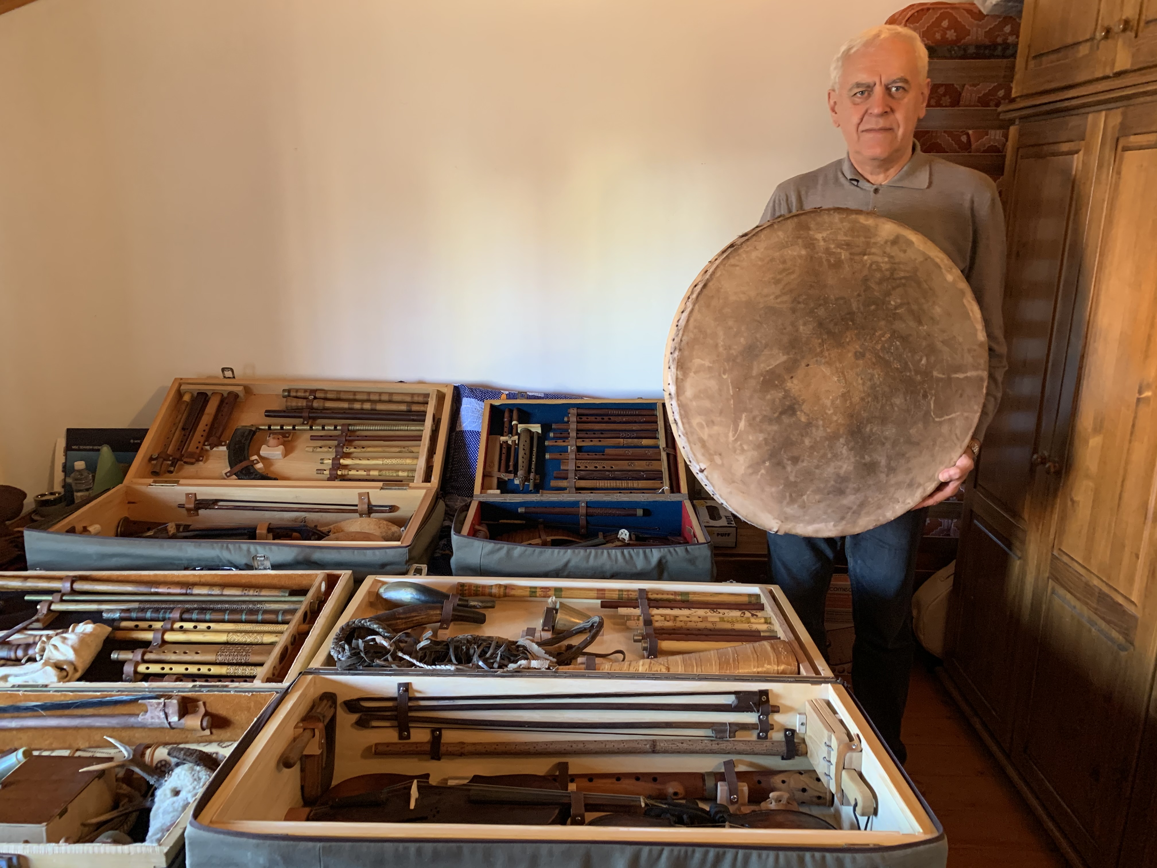 Referitor la colecţia mea, sunt trei tipuri de instrumente. Unele sunt cumpărate de la muzicanţi, instrumentişti, ţărani, meşteri populari. Nu sunt valori materiale, dacă le-aş pune pe jos pe undeva pe stradă, probabil că le-ar lua copiii. Nu sunt vandabile, în cazul lor, valorile sunt altele. În a doua categorie intră instrumetele făcute de mine. Pentru că au fost oameni care nu au vrut să se despartă de instrumentele respective, le-am fotografiat, le-am făcut câteva scheme şi am realizat o replică ce putea să ajungă identică până la 98 la sută  cu instrumentul respectiv.
