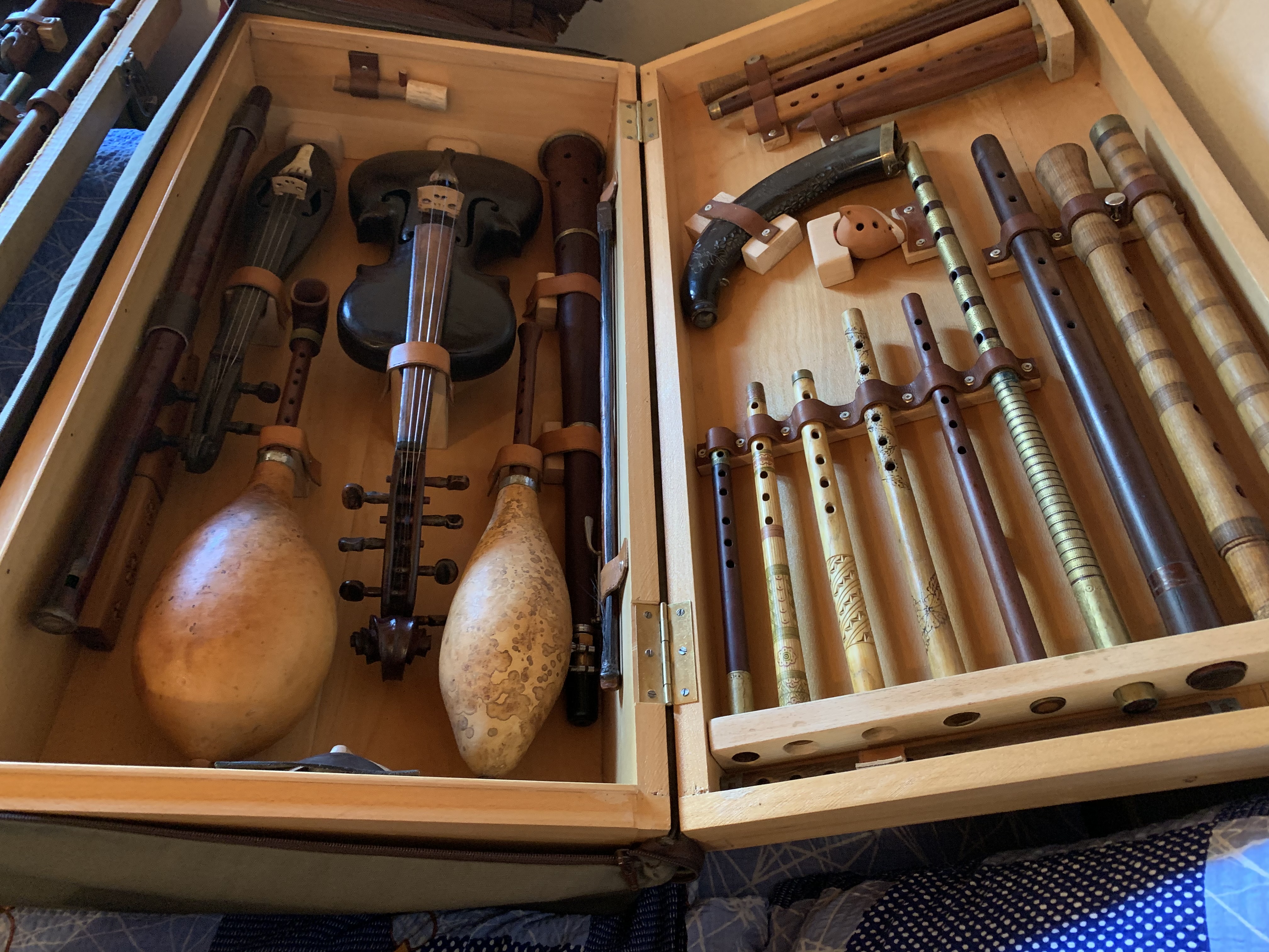 O.P.: Am făcut deocamdată patru valize pentru transportul instrumentelor, nu cred că fac mai multe pentru că celelalte instrumente sunt mai mari şi nu sunt transportabile, le-am făcut să pot să merg cu ele într-o parte şi-n alta, un fel de expoziţii itinerante, dar nu expoziţii convenţionale de tip muzeistic. Eu îmi înşir cele patru valize şi încep să prezint instrumentele, să le explic oamenilor cum se cântă, cum sună, iar în final să îi las să pună mâna pe ele, este un fel de atelier de lucru.