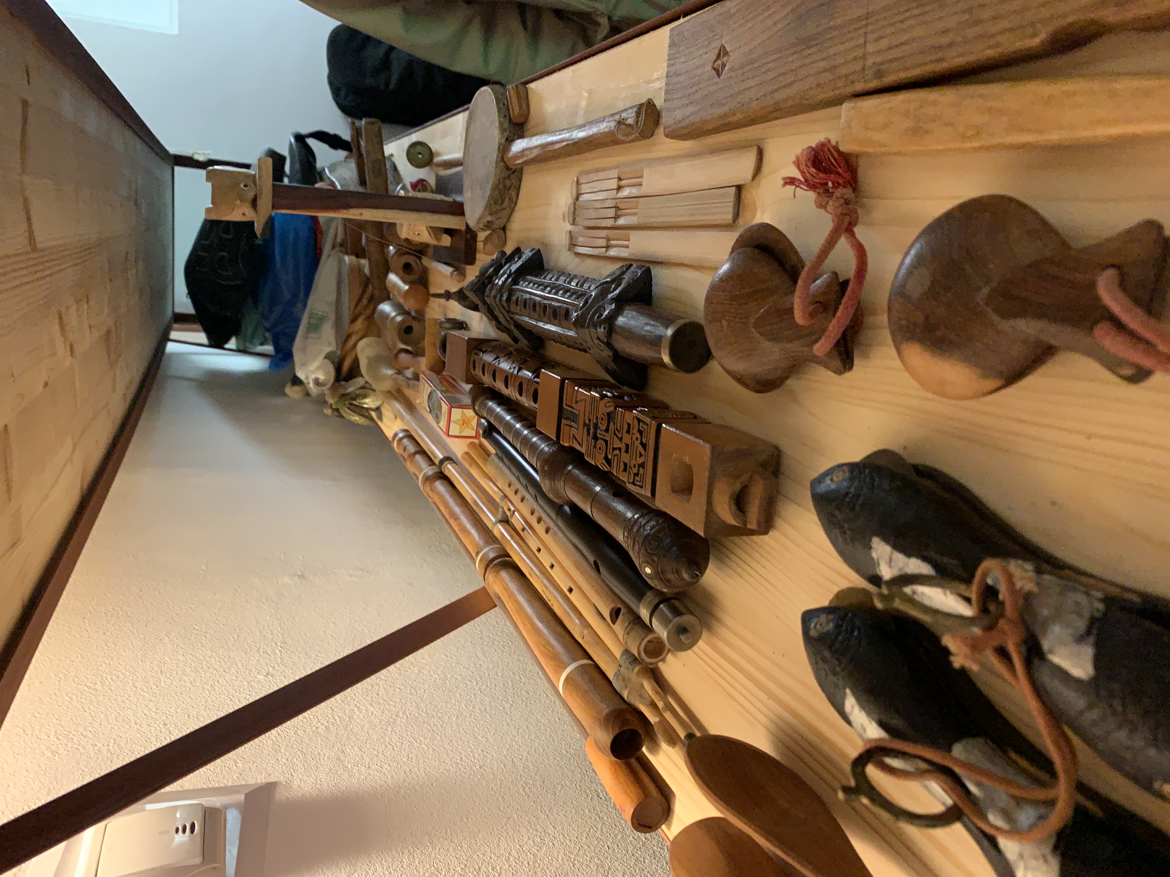 Mai am în colecţie instrumentele – jucării muzicale, vreo 40-50 făcute de mine, apoi instrumentele utilitare, folosite de vânători, de exemplu, cele care imită păsările.
