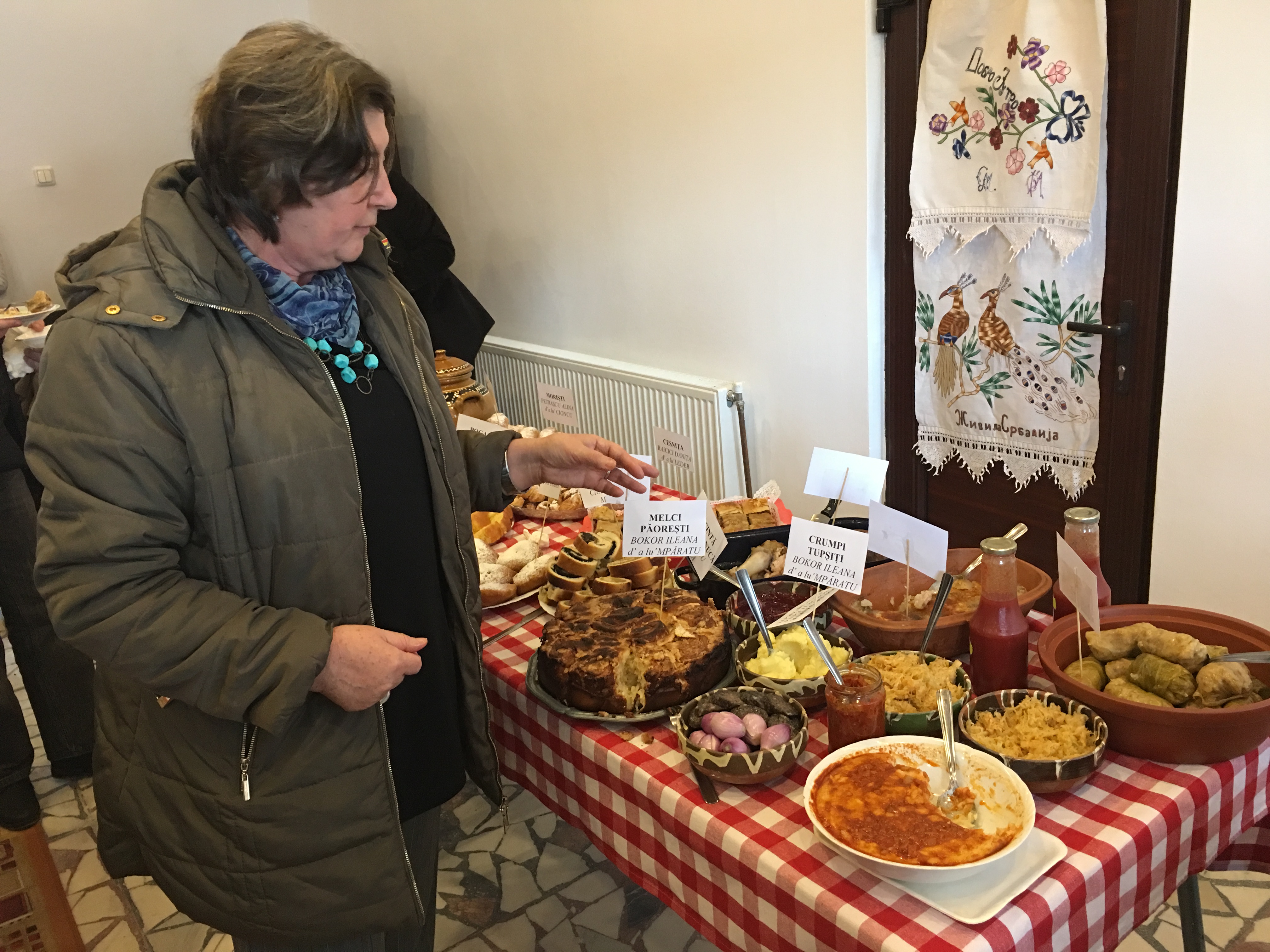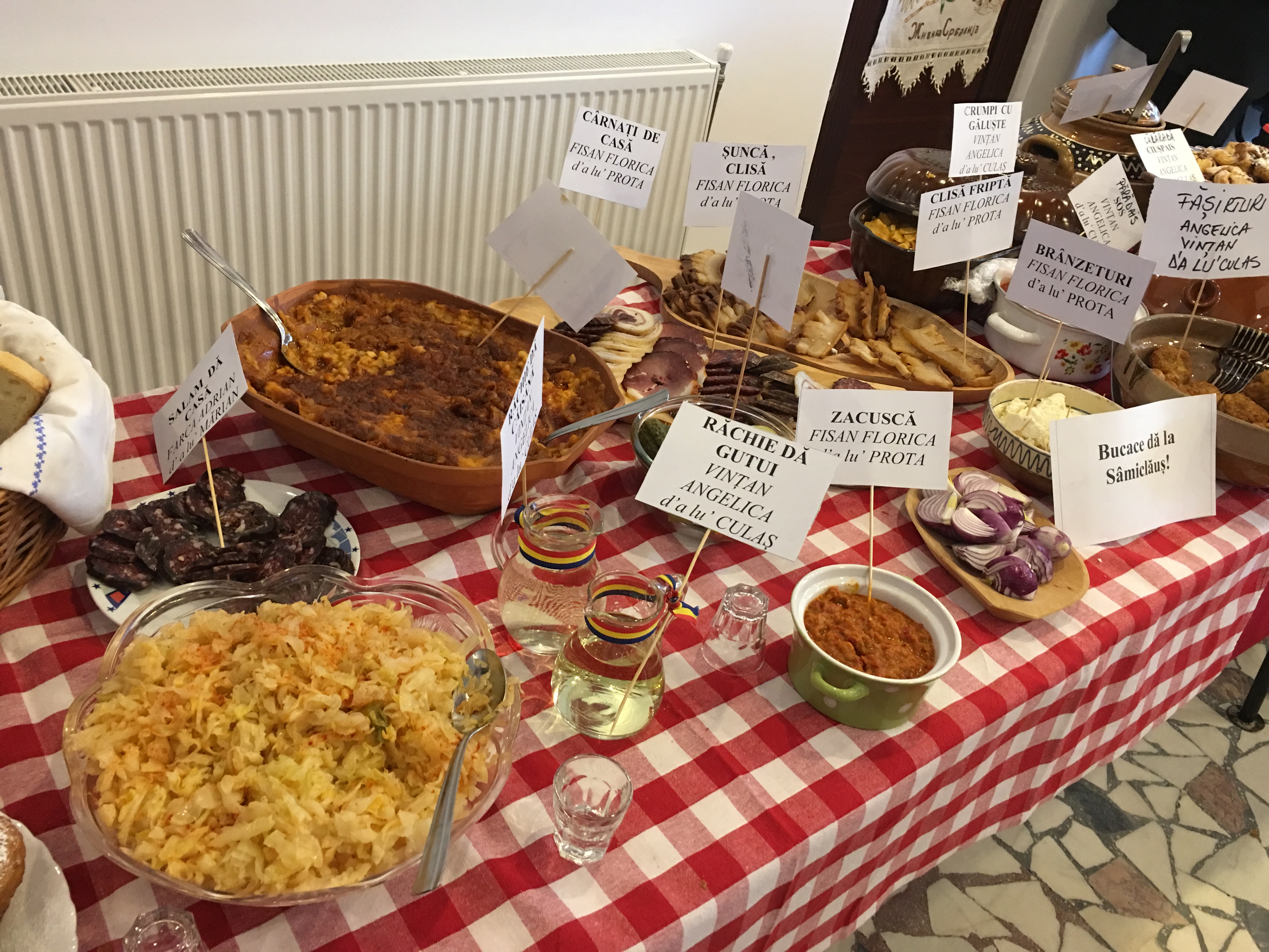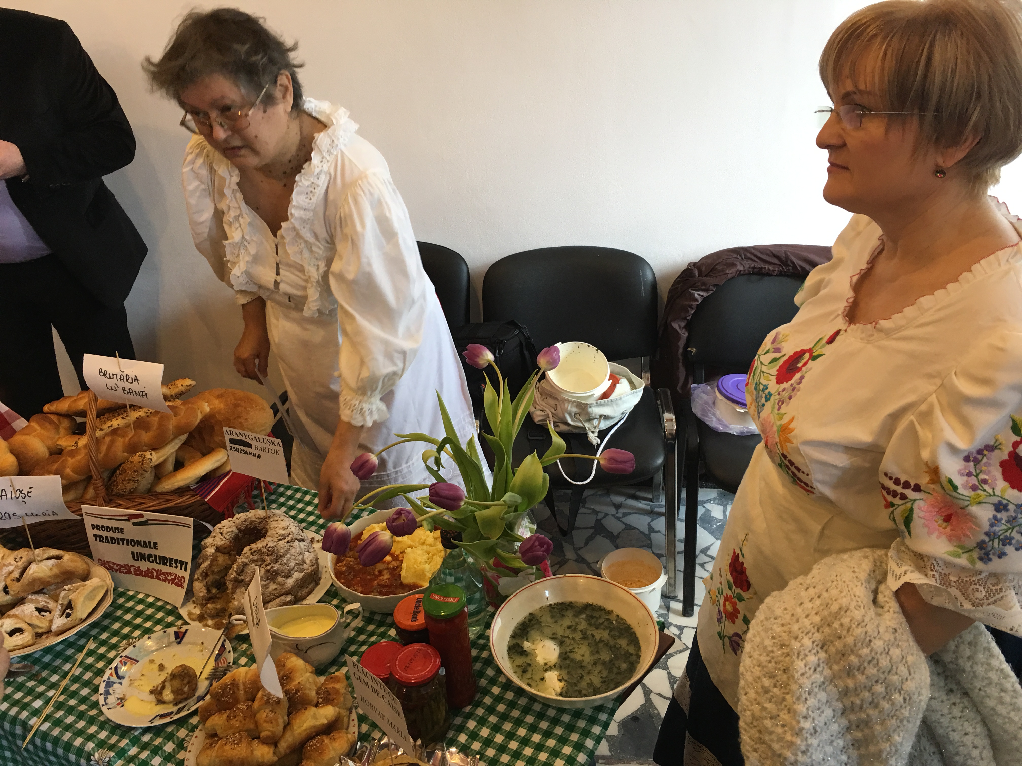 Spaţiul expoziţional a lăsat o impresie puternică de la primul contact vizual. Pe de-o parte obiectele de gospădărie tradiţională, cilimuri, ştergare, măsaie, vărtelniţă, ştrinfi, fotografii şi tablou, costumele vechi, toate aranjate în aşa fel încât să zăboveşti cât mai mult în faţa lor, iar pe de altă parte bunătăţile gastronomice prezentate artistic te îmbiau: plăcintă acră cu mac, pogăcele cu jumere, morişti, crumpi cu găluşte şi sos, faşirturi, păsulă slăită pă blid, crofne, cesniţa, haioşe, ciolane coapte în dubă, crumpi tupşiţi cu sos de vişine, melci paoreşti şi altele.