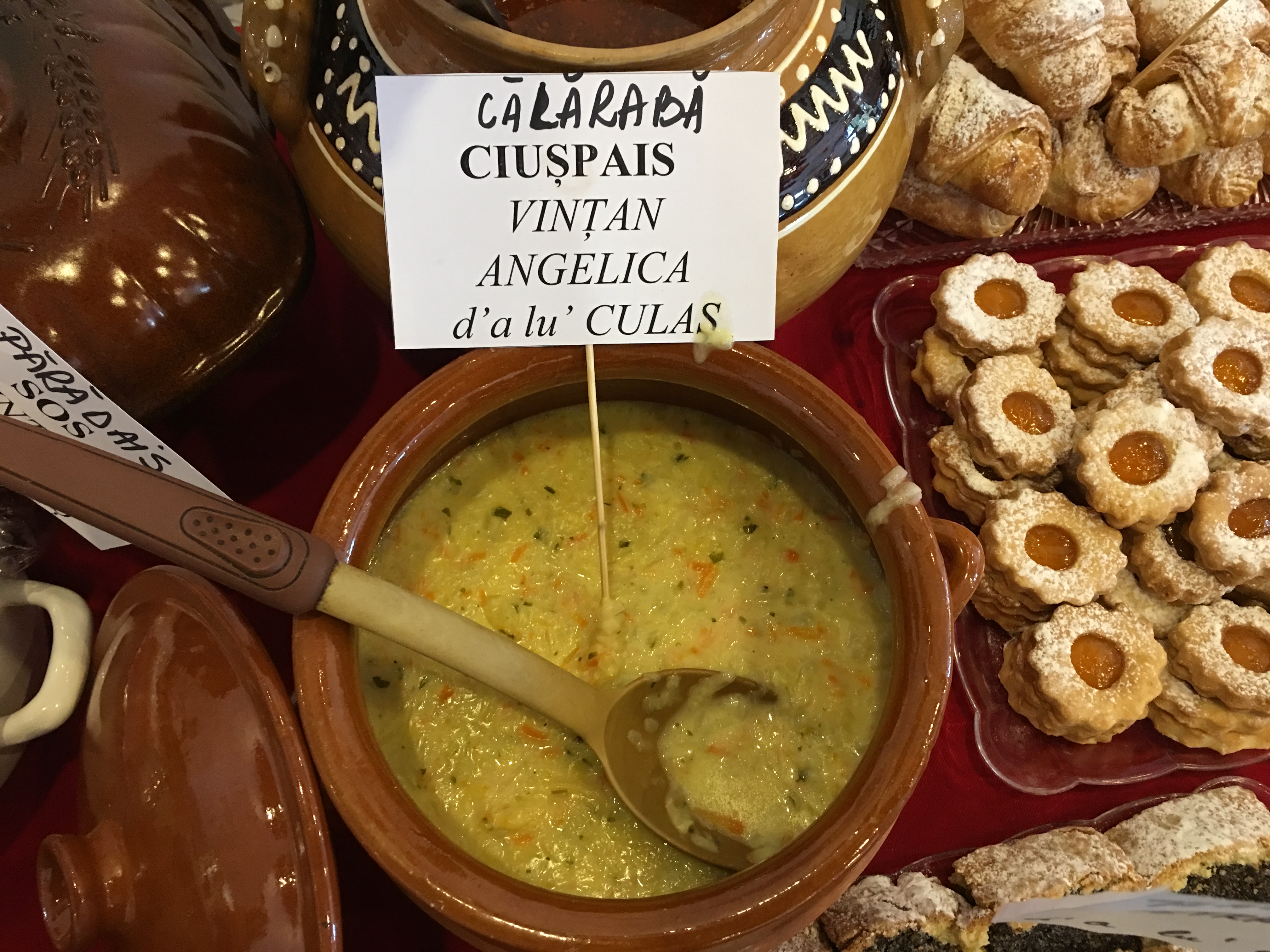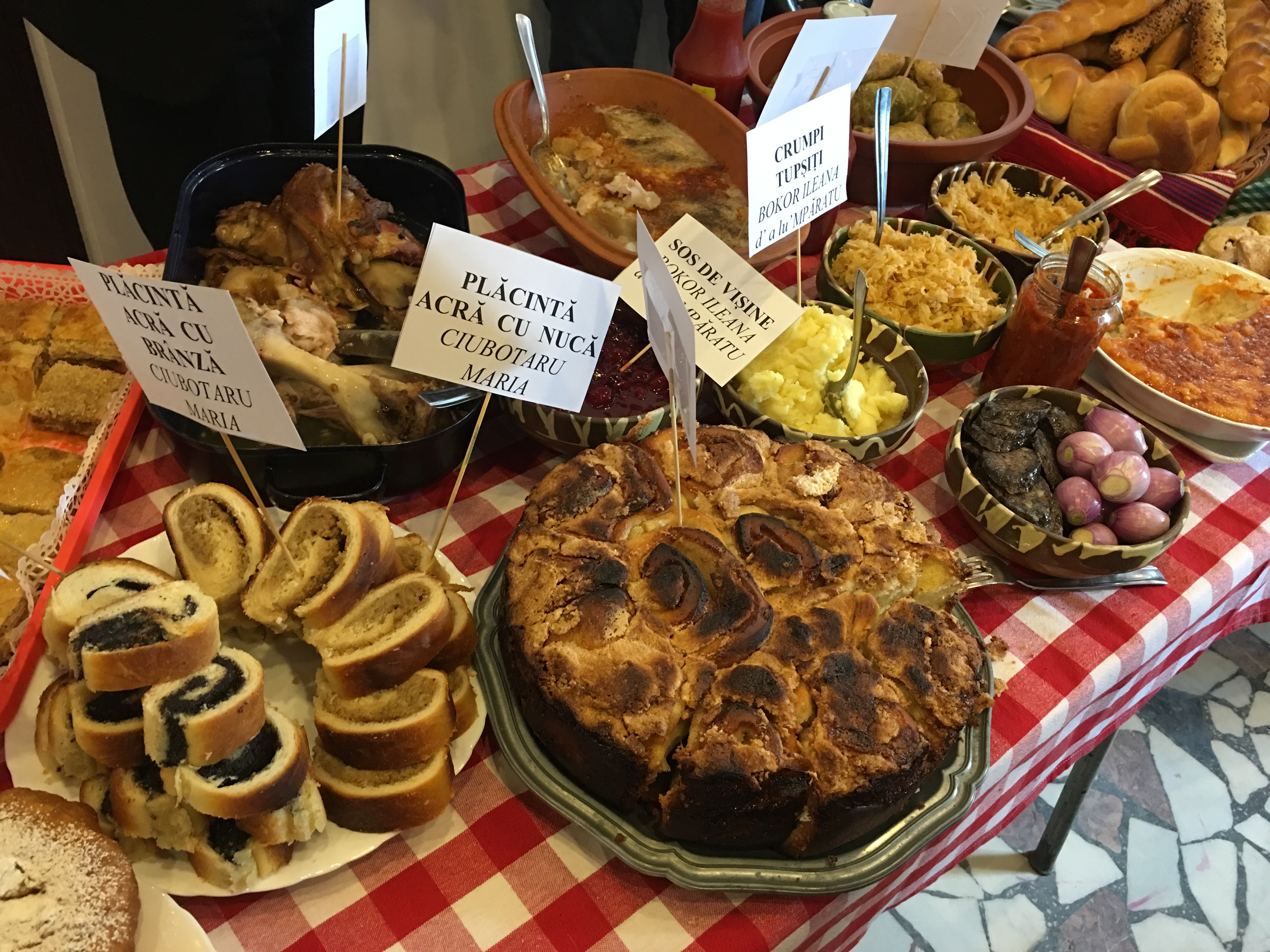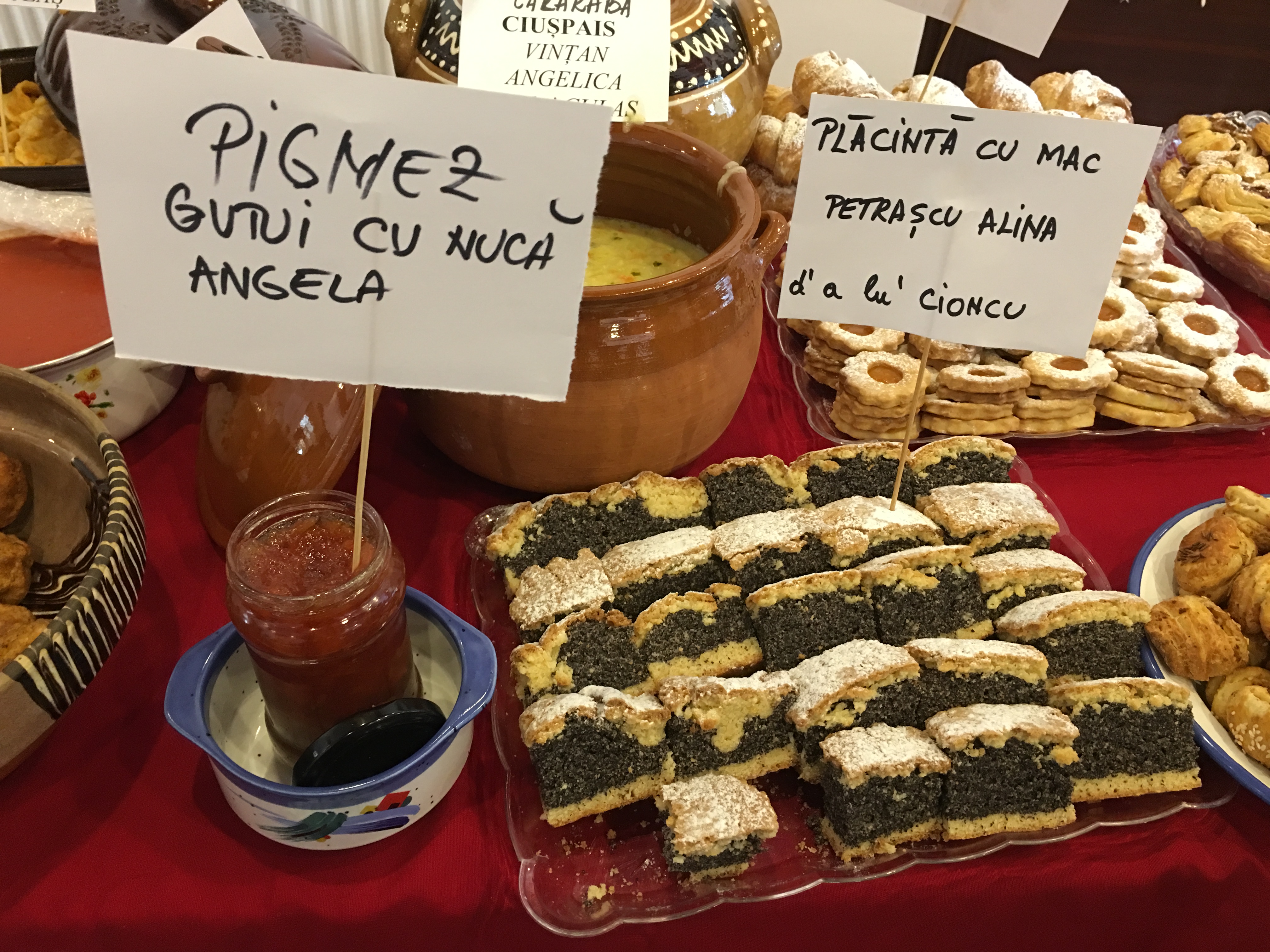 Spaţiul expoziţional a lăsat o impresie puternică de la primul contact vizual. Pe de-o parte obiectele de gospădărie tradiţională, cilimuri, ştergare, măsaie, vărtelniţă, ştrinfi, fotografii şi tablou, costumele vechi, toate aranjate în aşa fel încât să zăboveşti cât mai mult în faţa lor, iar pe de altă parte bunătăţile gastronomice prezentate artistic te îmbiau: plăcintă acră cu mac, pogăcele cu jumere, morişti, crumpi cu găluşte şi sos, faşirturi, păsulă slăită pă blid, crofne, cesniţa, haioşe, ciolane coapte în dubă, crumpi tupşiţi cu sos de vişine, melci paoreşti şi altele.