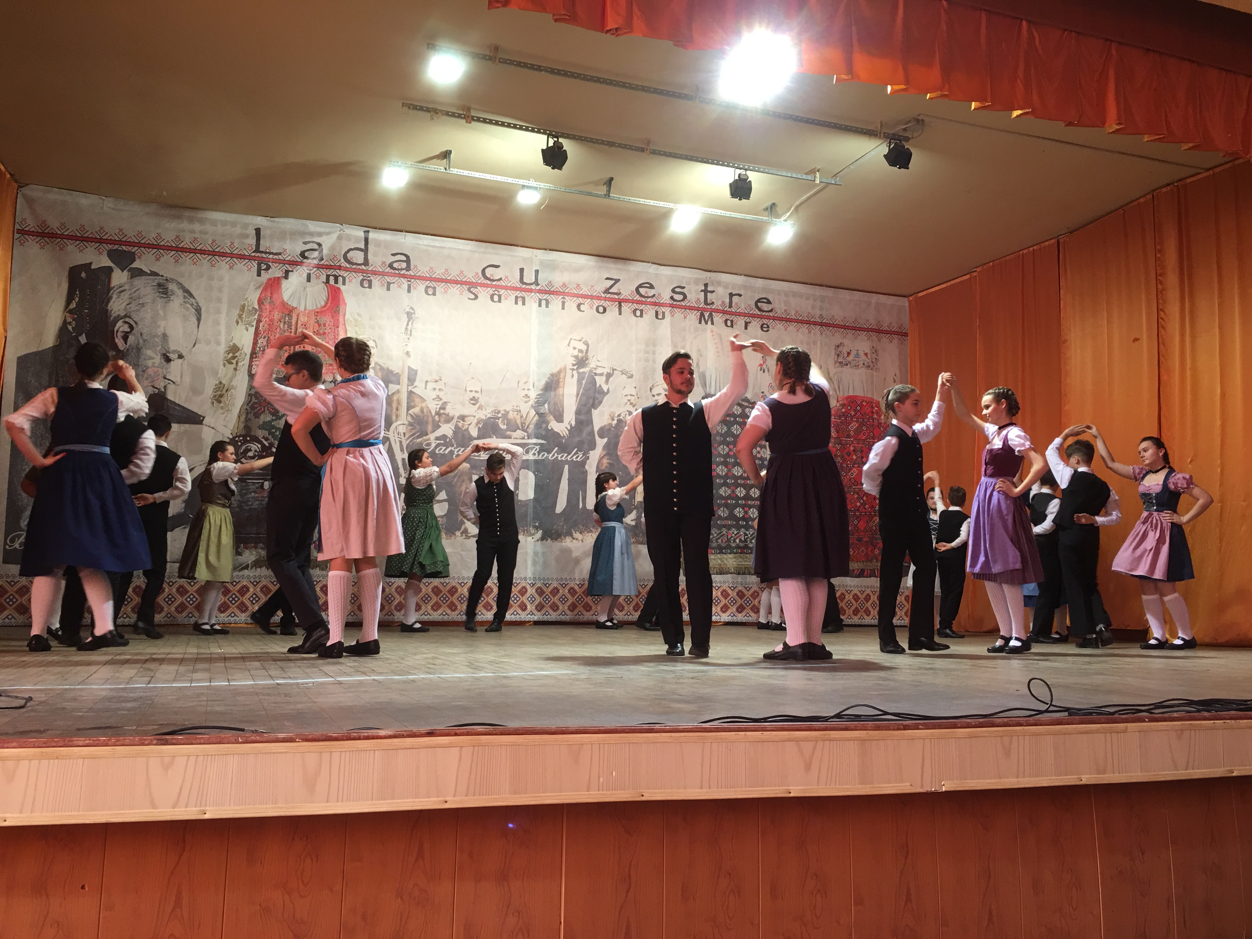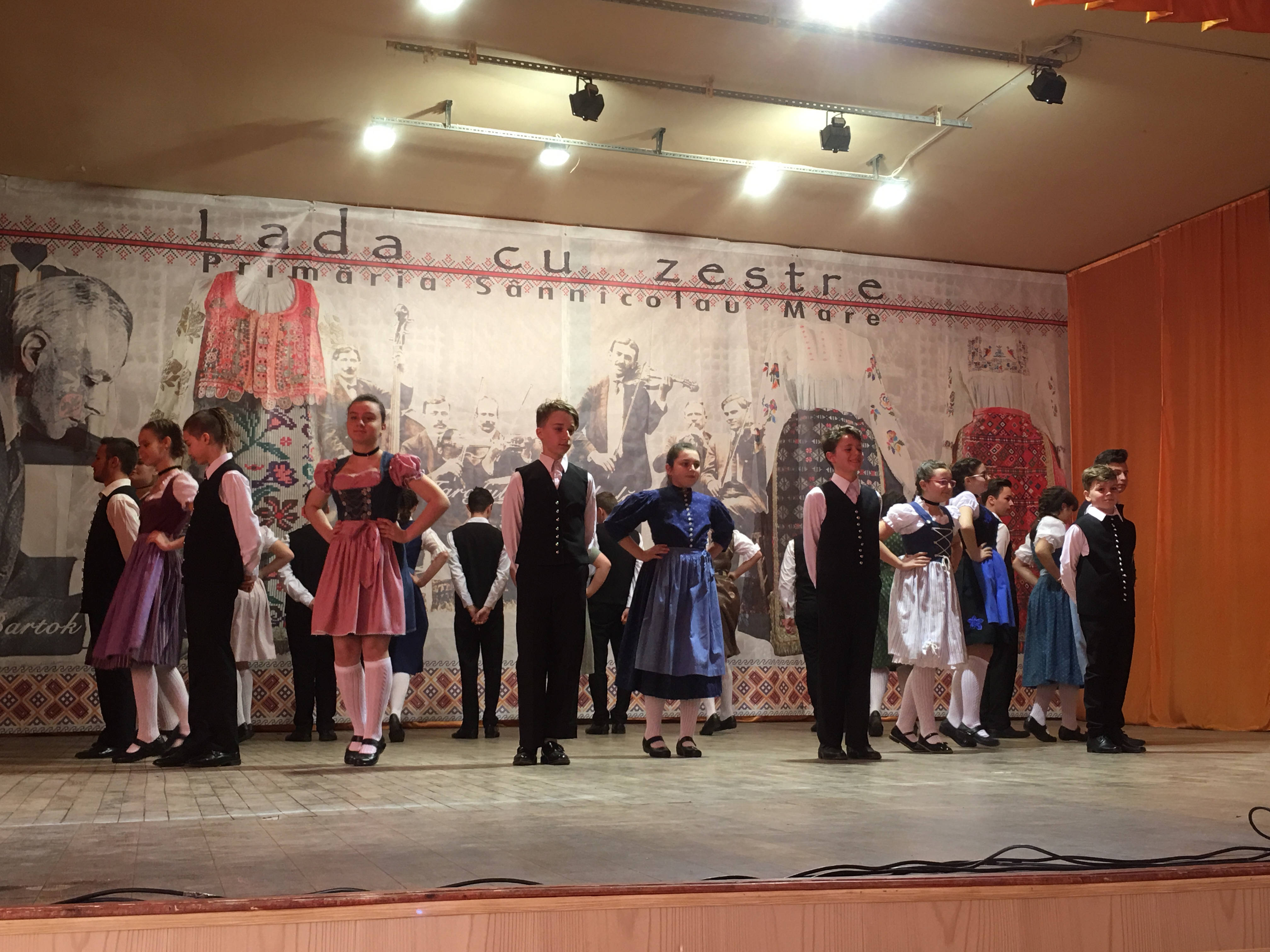 Am urmărit apoi dansuri populare germane cu grupul pregătit de Hansi Muller şi Dietlinde Huhn, dansuri maghiare cu grupul de copii “Kekibolia”, instructor Eniko Lepuş, pe acordeonistul Răzvan Nuţaş şi solistul vocal Aurelian Goia cu o purtată din Ardeal.