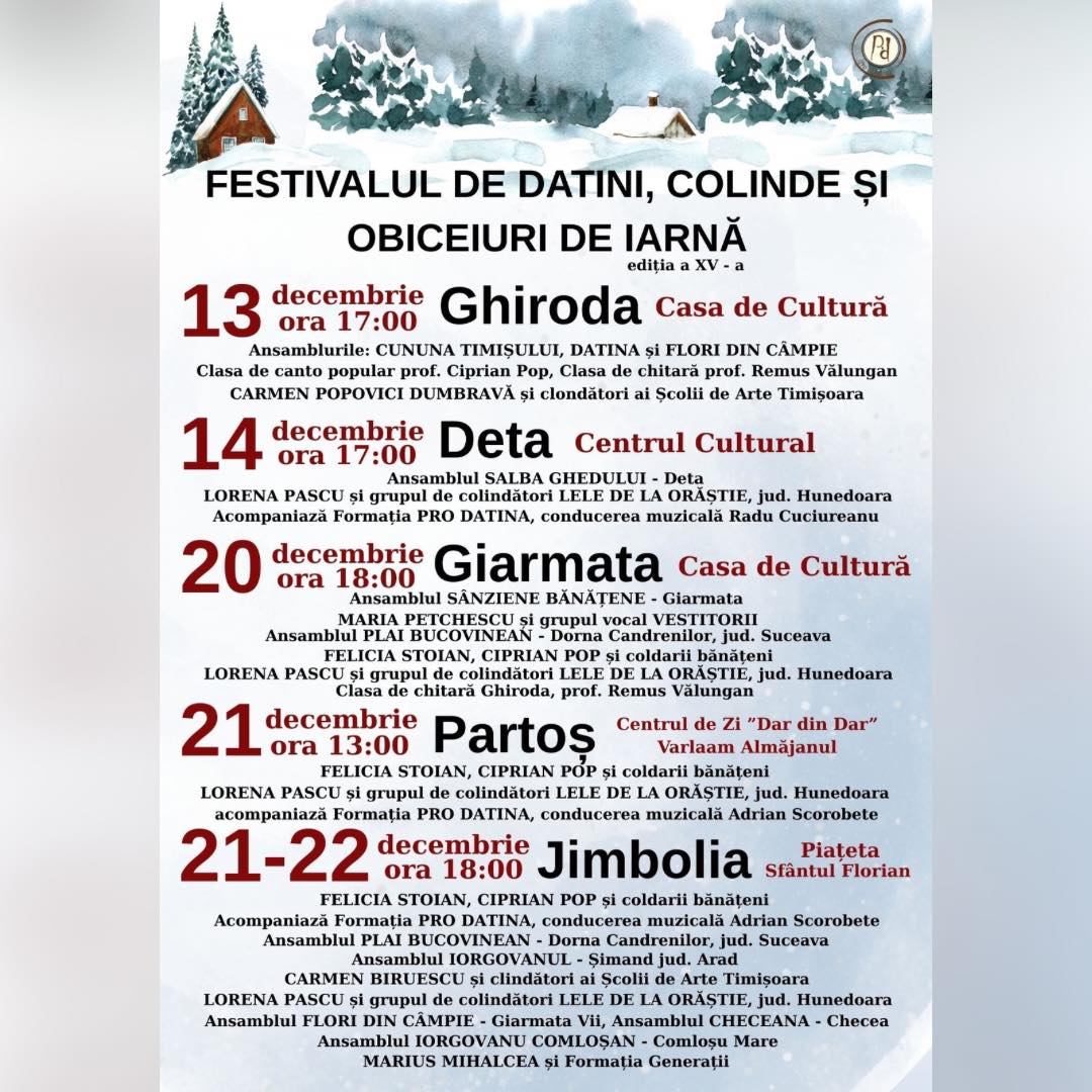 Ediția cu numărul 15 a Festivalului de datini, colinde și obiceiuri de iarnă organizat de Asociația Culturală Pro Datina cuprinde cinci localități din Timiș.