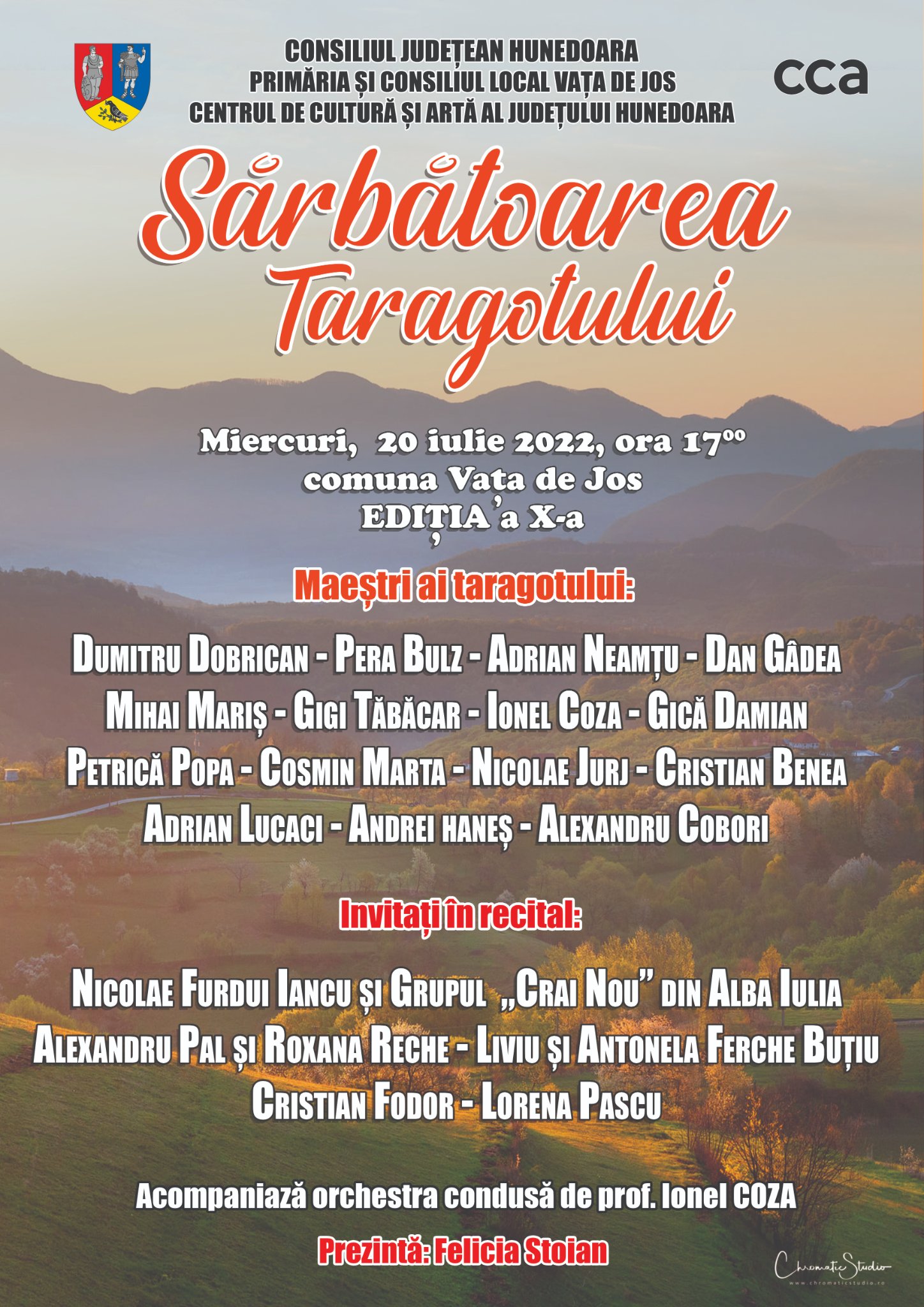 În ziua Sfântului Ilie, miercuri, 20 iulie, în judeţul Hunedoara, în localitatea care a dăruit un Tezaur Uman Viu (Pera Bulz) şi un Taraf vestit, la Vaţa de Jos, se vor întâlni renumiţi taragotişti din toată ţara împreună cu interpreţi de marcă din mai multe generaţii.