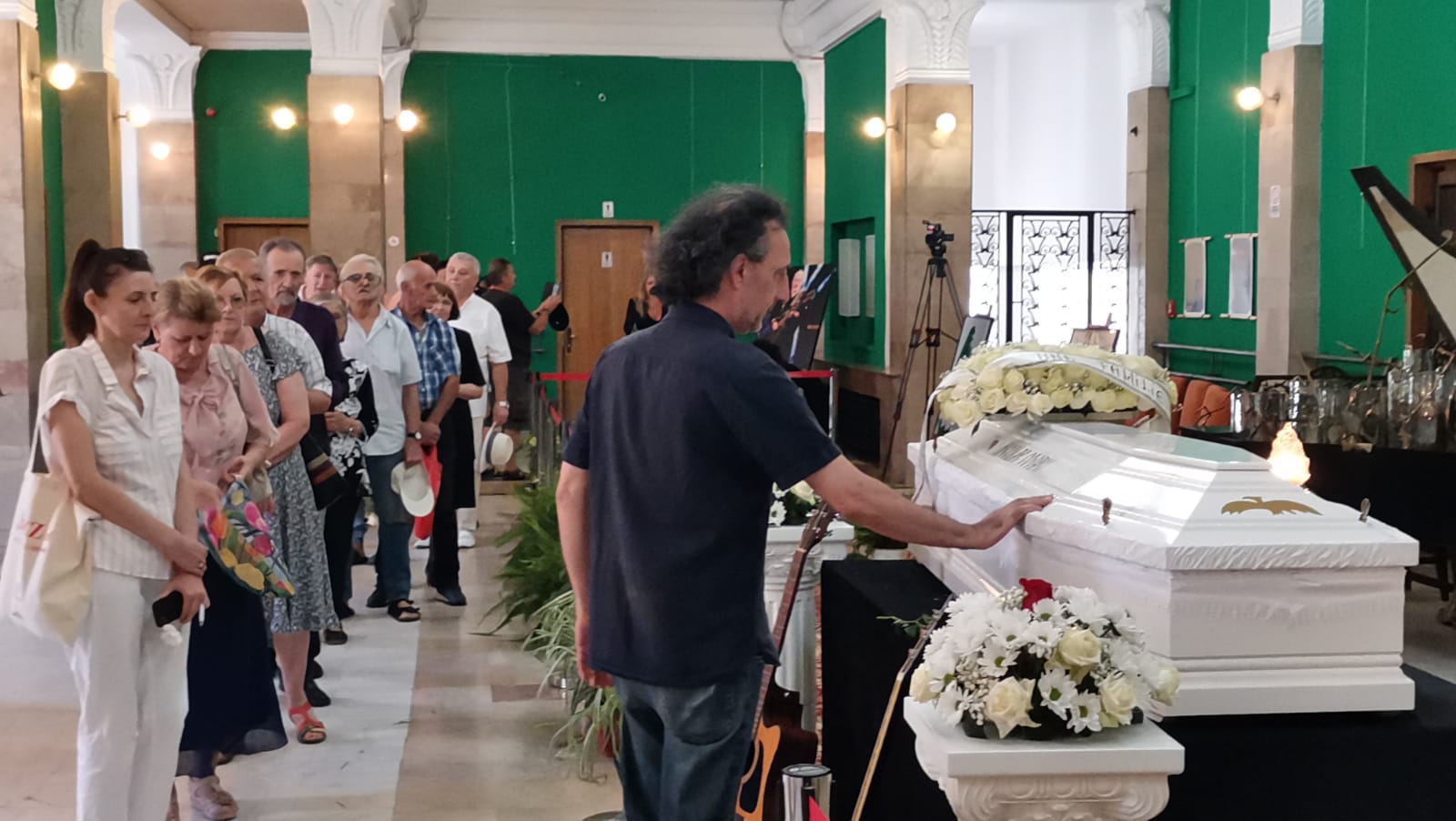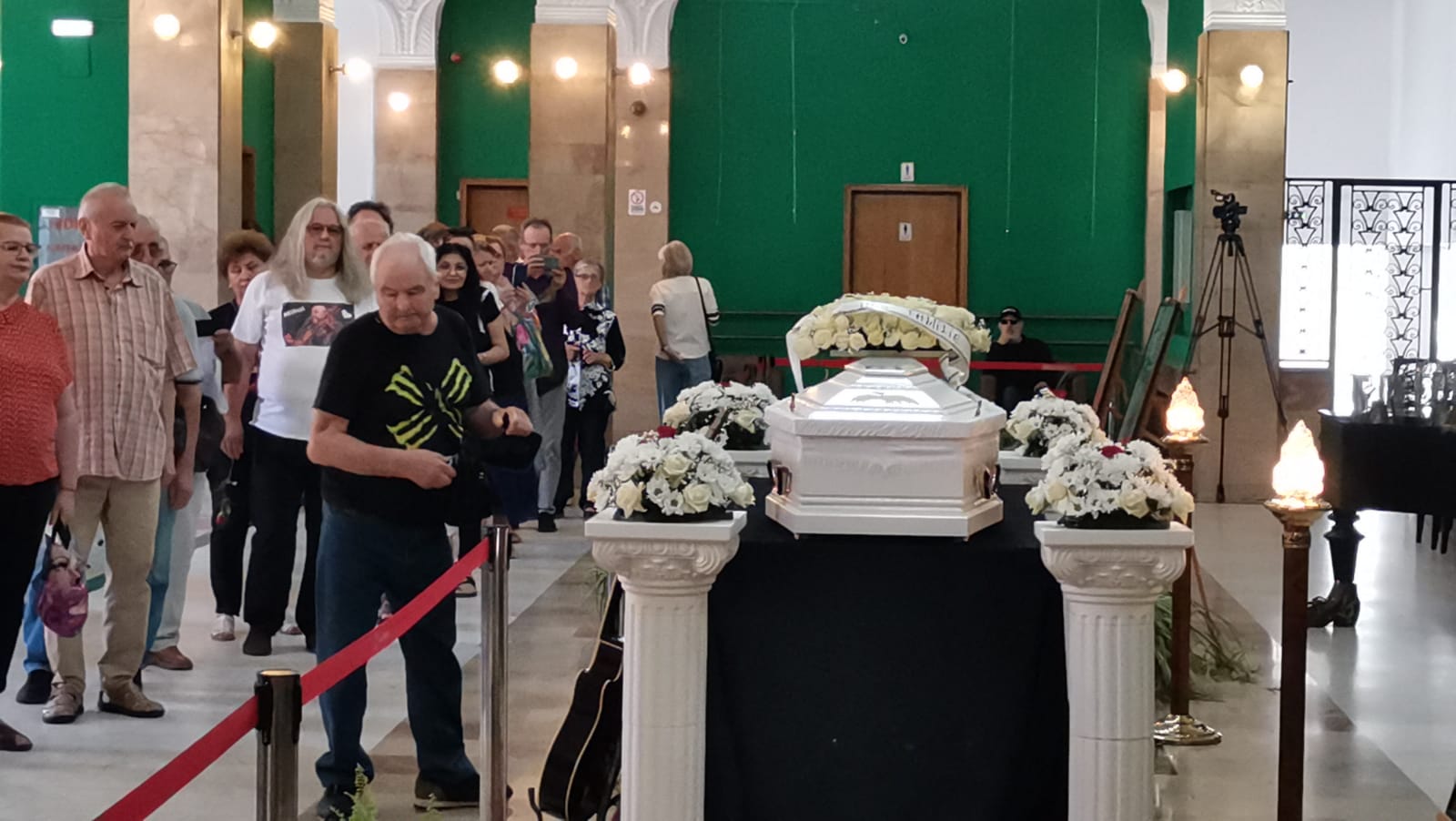 Sicriul cu trupul celui care a fost Nicu Covaci a fost așezat marți dimineață în foaierul de la etajul Filarmonicii Banatul.