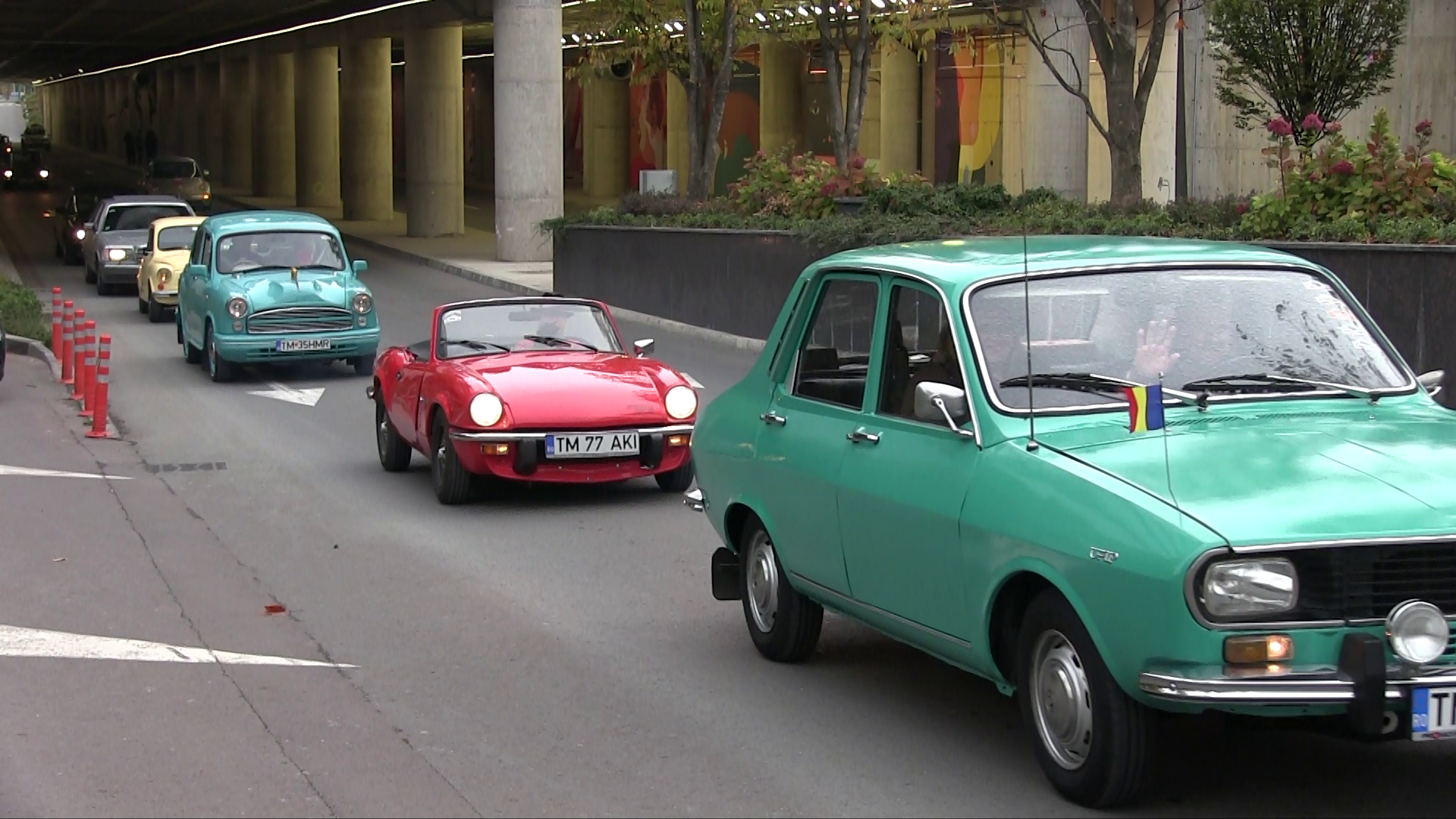 Șoferii au mers pe traseul Giarmata – Timișoara, cu mașinile de epocă, inclusiv prin zona pasajului Iulius Town, pe care l-au traversat de mai multe ori.
