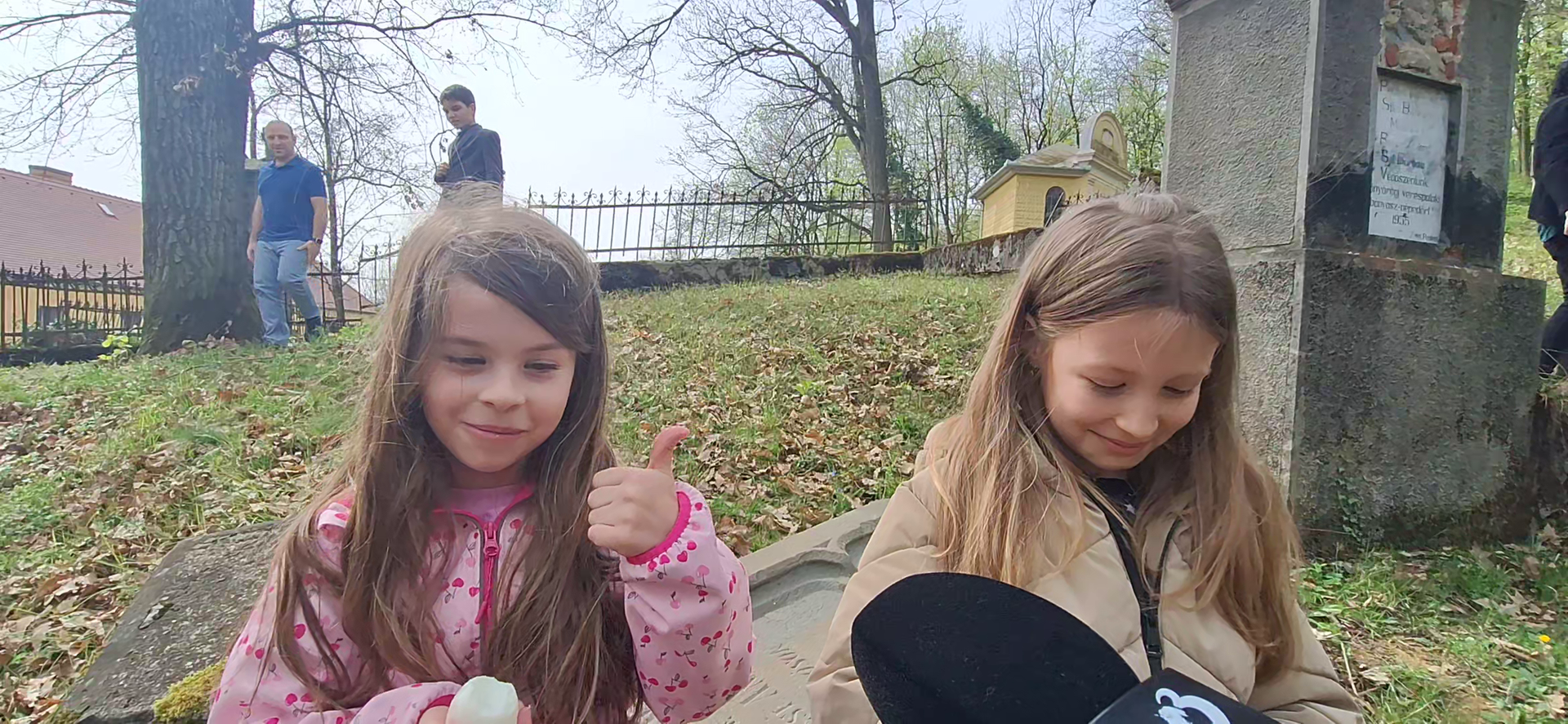 Cei aproximativ o sută de copii au pornit la vânătoarea ouălor de Paști. O sută de ouă roșii și alte o sută de ouă de ciocolată au fost ascunse pe dealul din spatele bisericii.