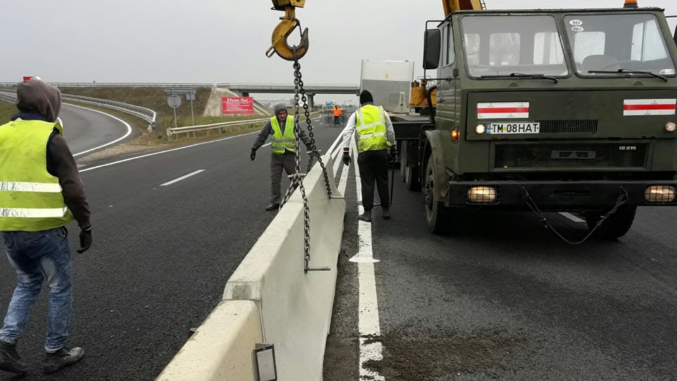 Drumarii au finalizat montarea parapetului median de beton pe DN 59, între Timișoara și Șag, pe o distanță de 3 kilometri. Acum continuă aceleași proceduri pe alte drumuri naționale din Timiș și Arad.