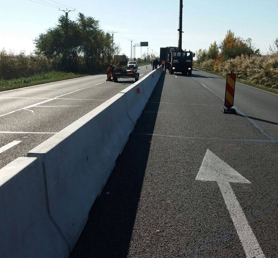 FOTO/ Atenție, șoferi! Trafic îngreunat spre Șag din cauza montării unui parapet de beton